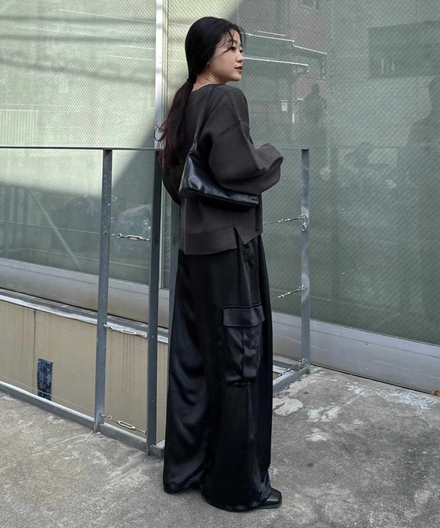 ニット素材なので、デニムやスウェットパンツで合わせてもストリートすぎず、