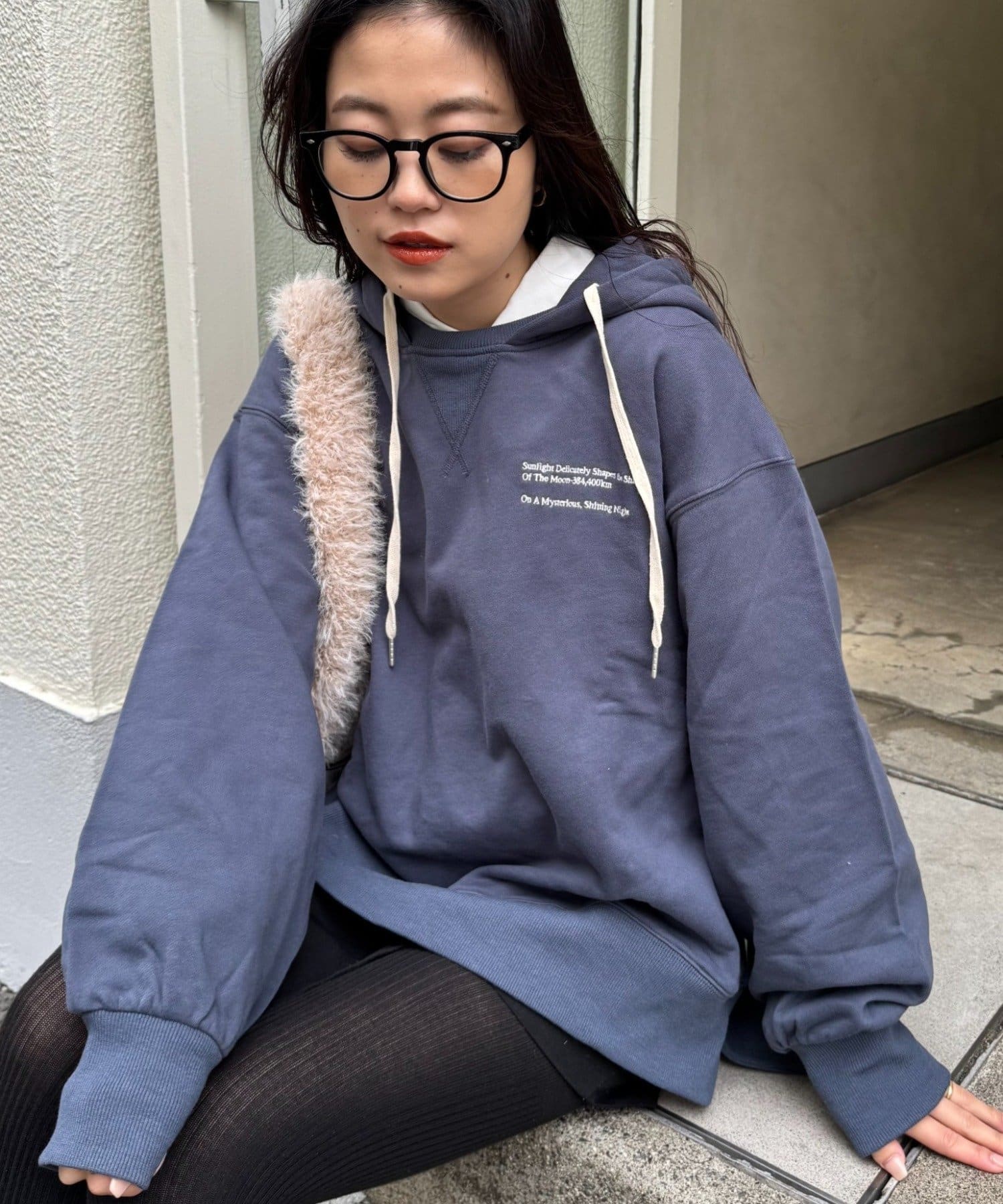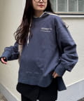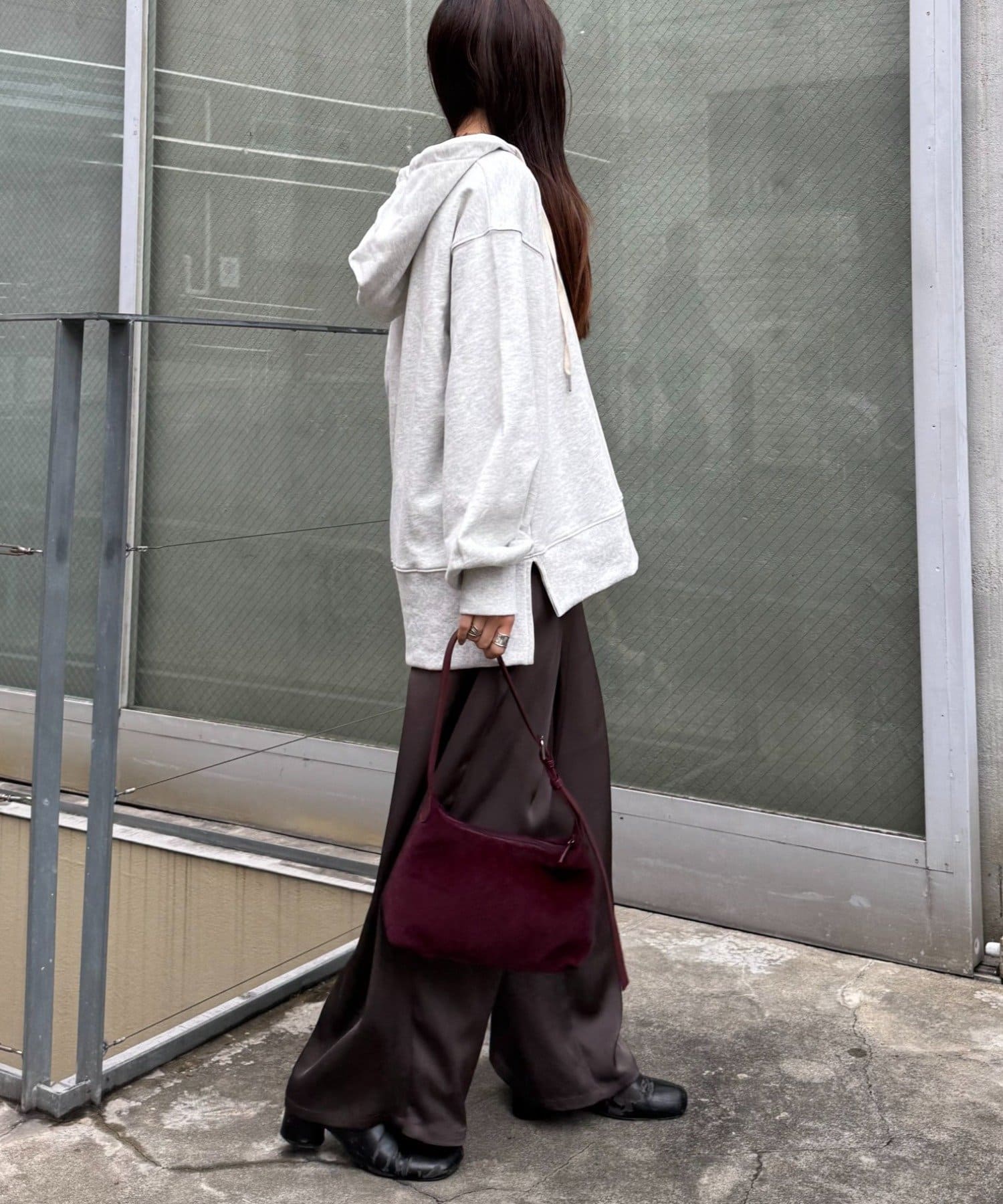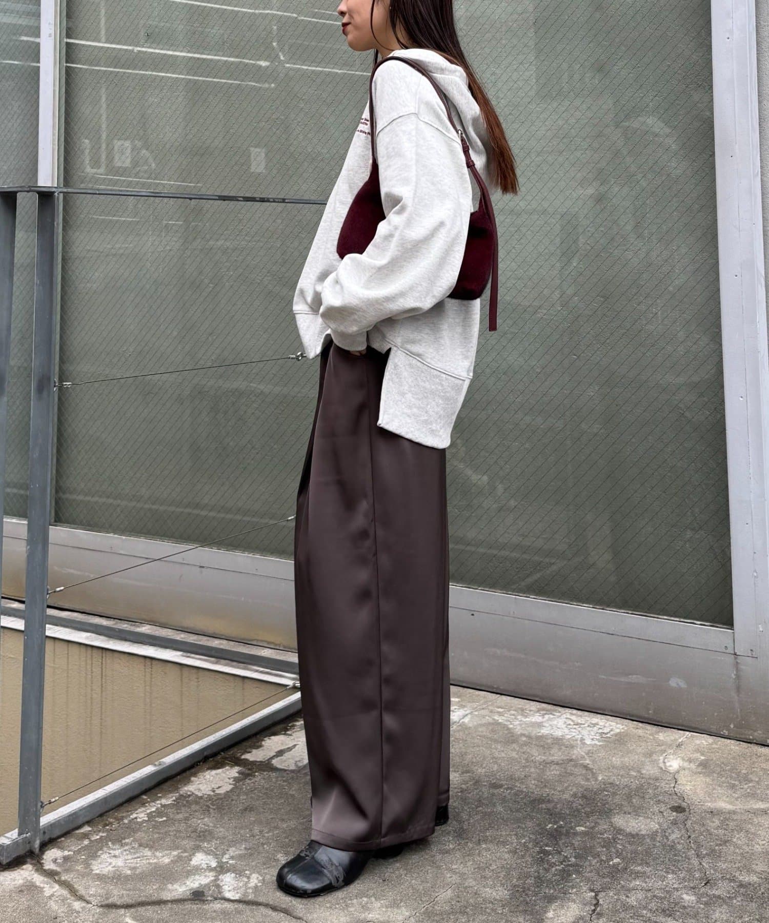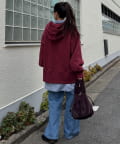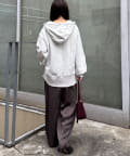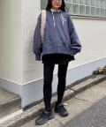 ボリュームのあるスウェットは、ストレートなパンツやスカートを合わせてバランスよく。