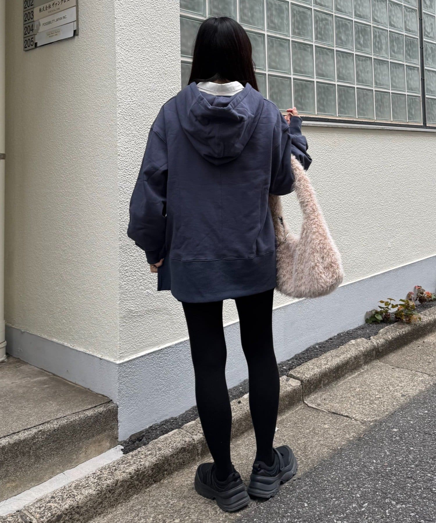 ラフだけど女っぽい、バランス上手なゆるパーカー