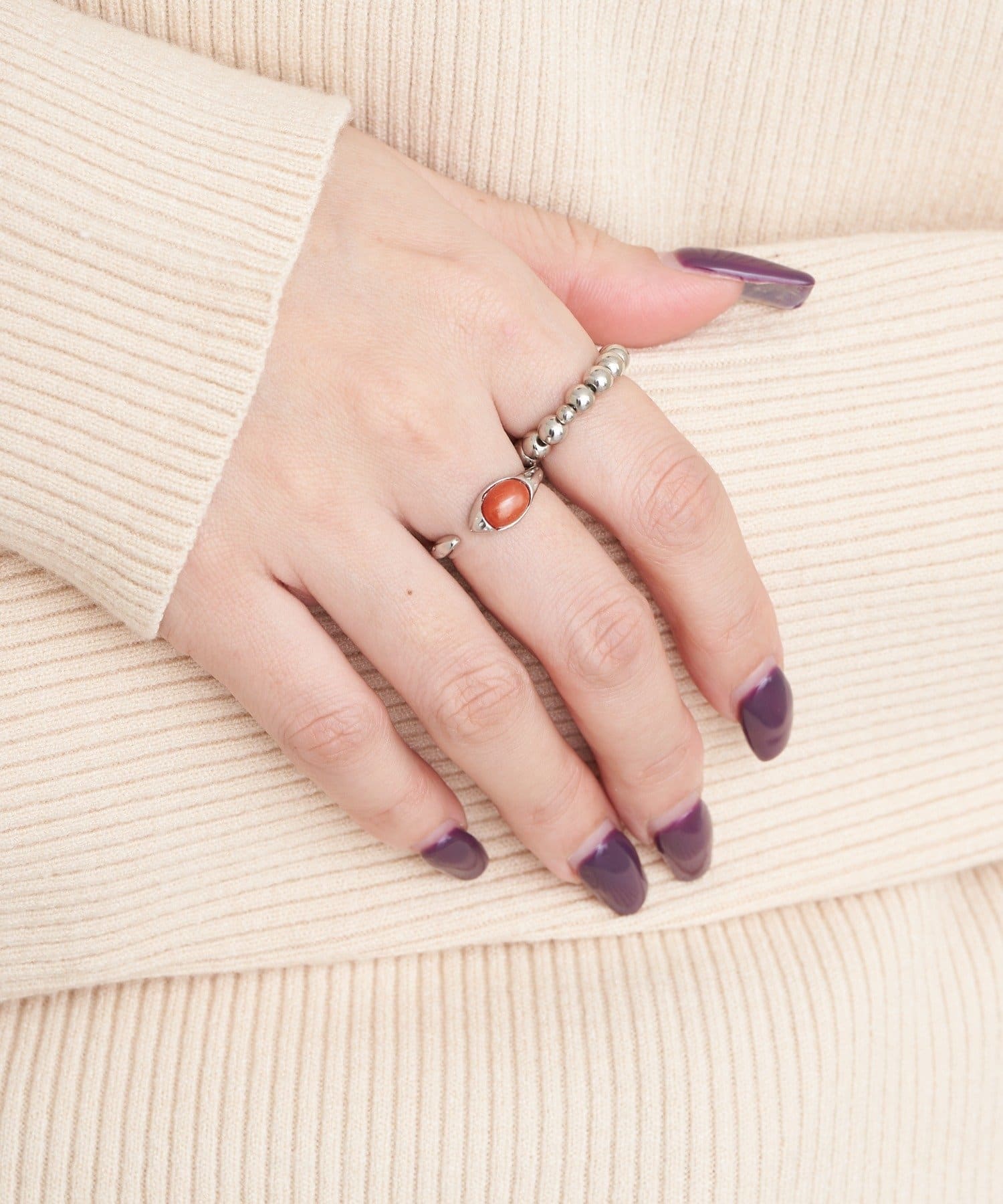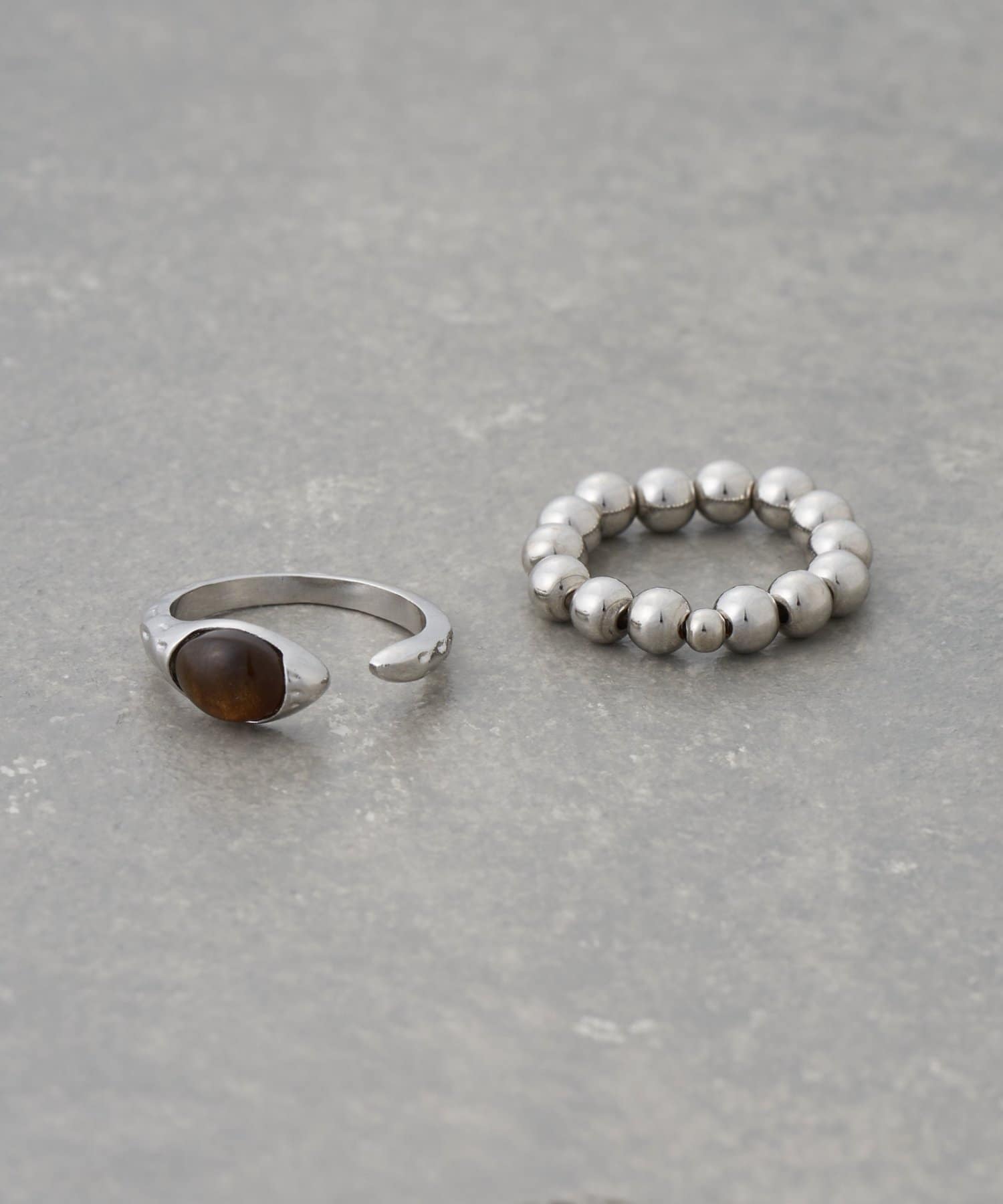 印象が異なるボールチェーンリングと小ぶりなストーンリングがセットなので