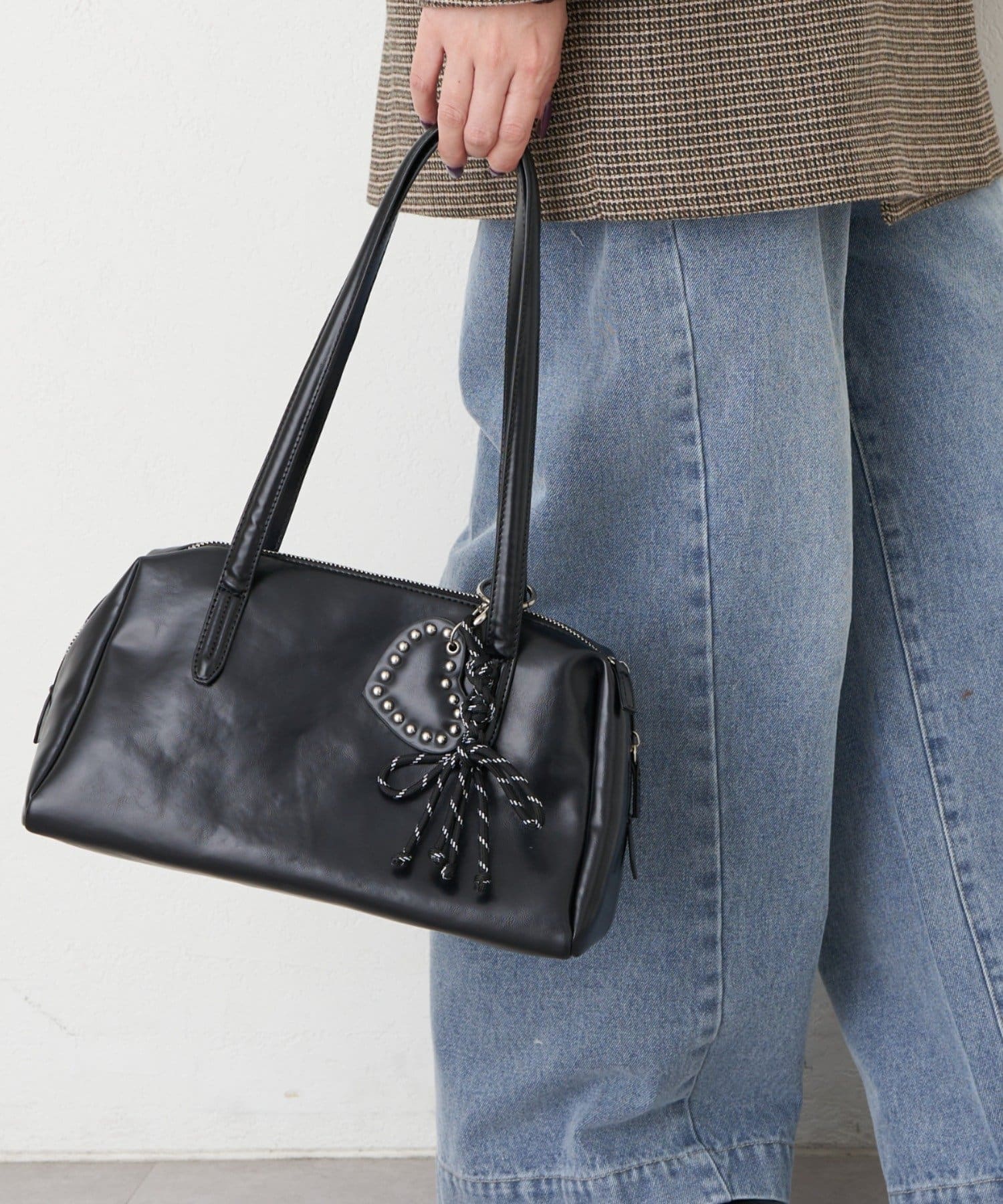【ペットボトル収納可能】ハートスタッズチャーム付きボストンBAG