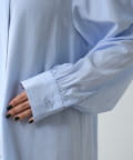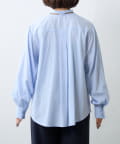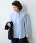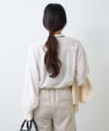 すっきりとした顔周り、肩にほどよく寄せたギャザーの柔らかな丸みが女性らしい印象を演出。
