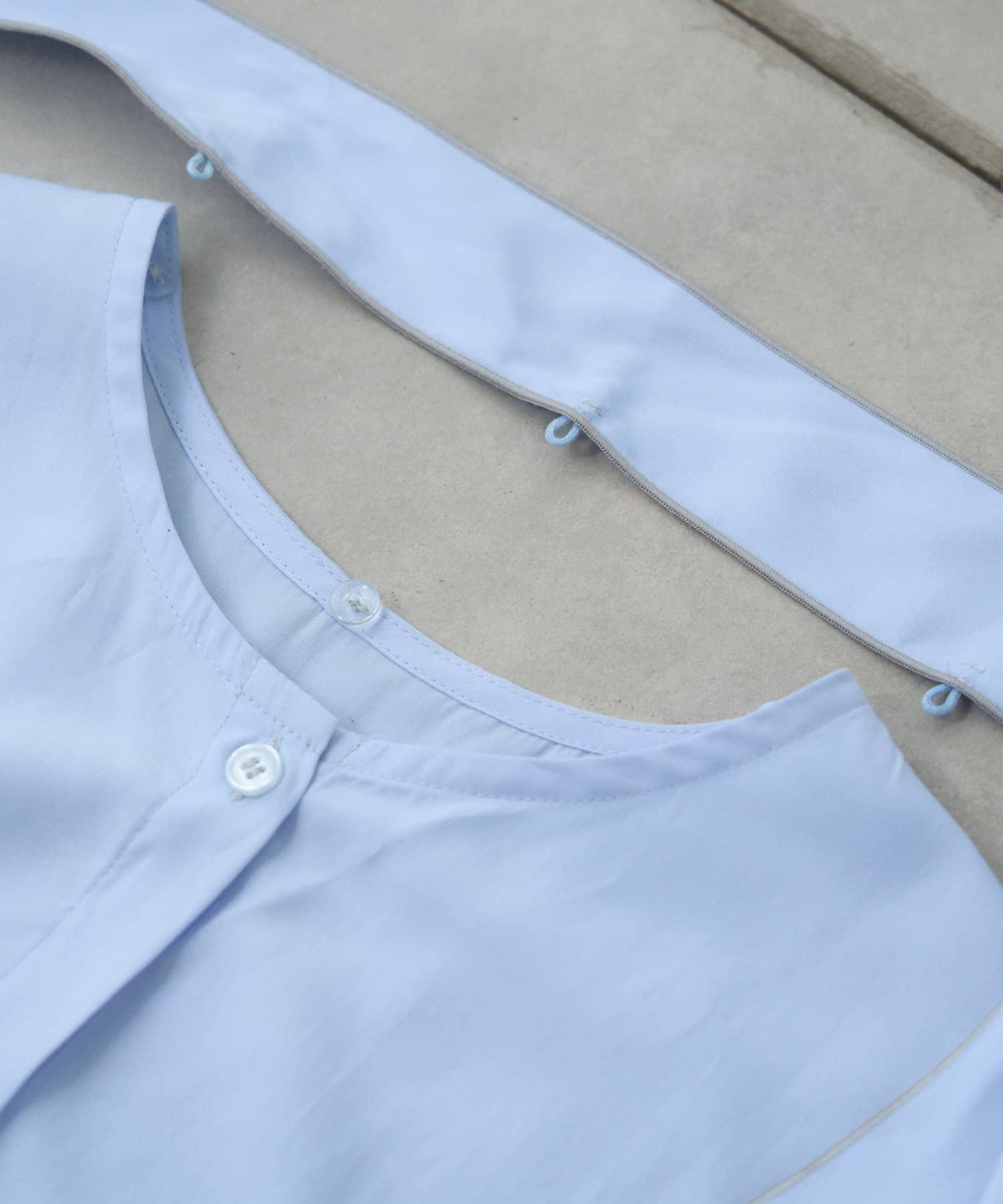 付属のボウタイは結び方を変えて、また取ることで雰囲気を変えられるのも魅力!
