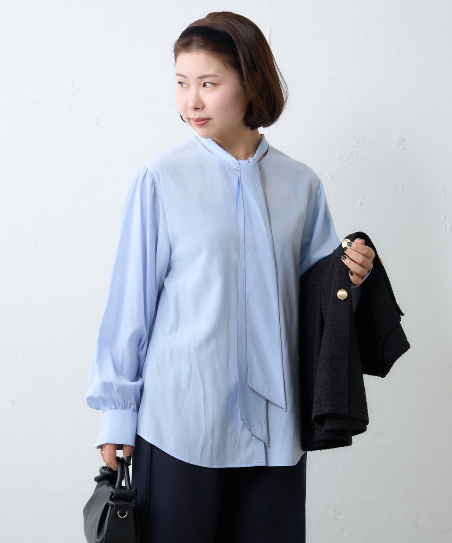 ジャケットにもスカートにも合う上品ボウタイブラウス