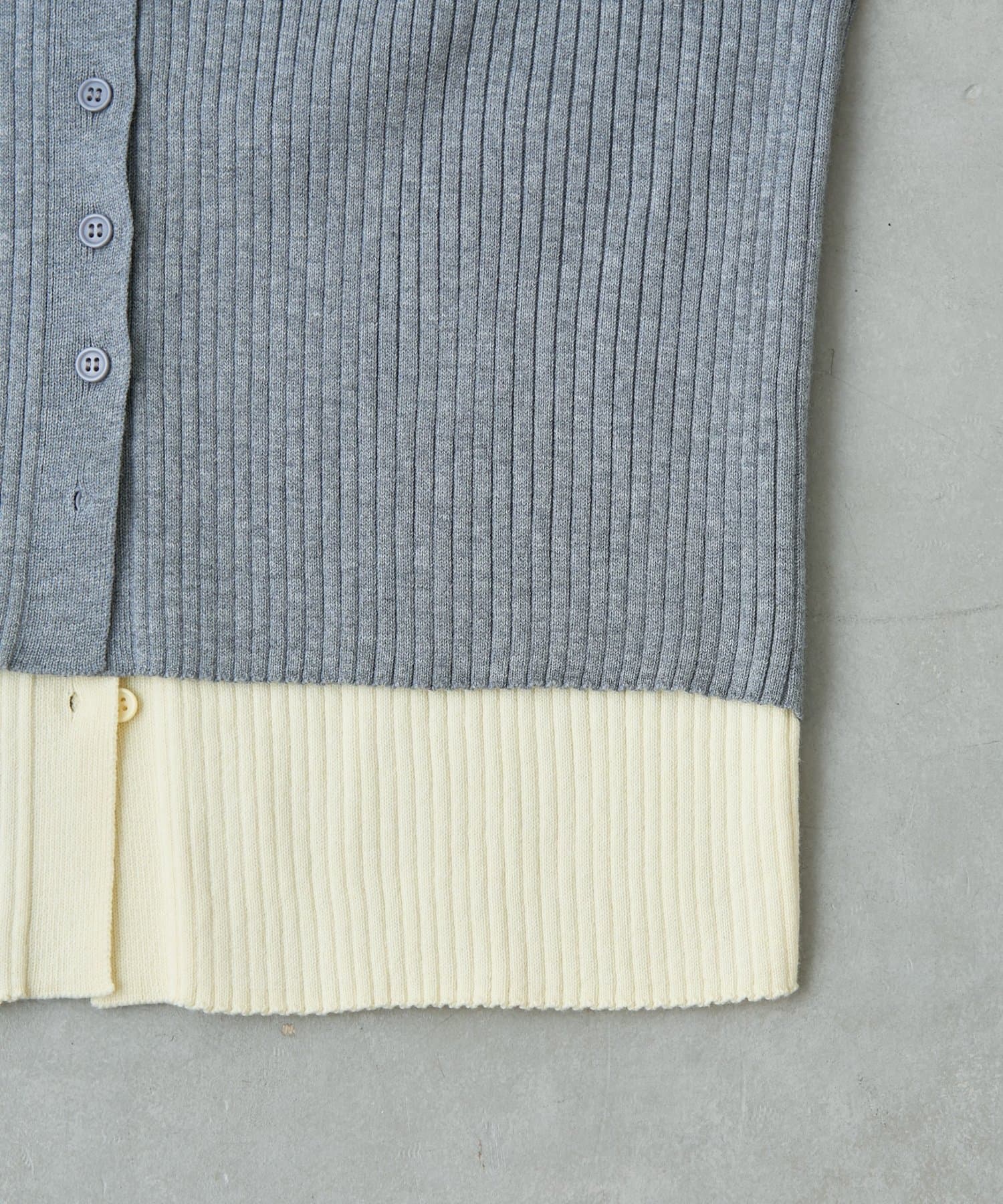 【マイナス3kg見え】レイヤードライクマルチウェイ配色リブニットカーデ