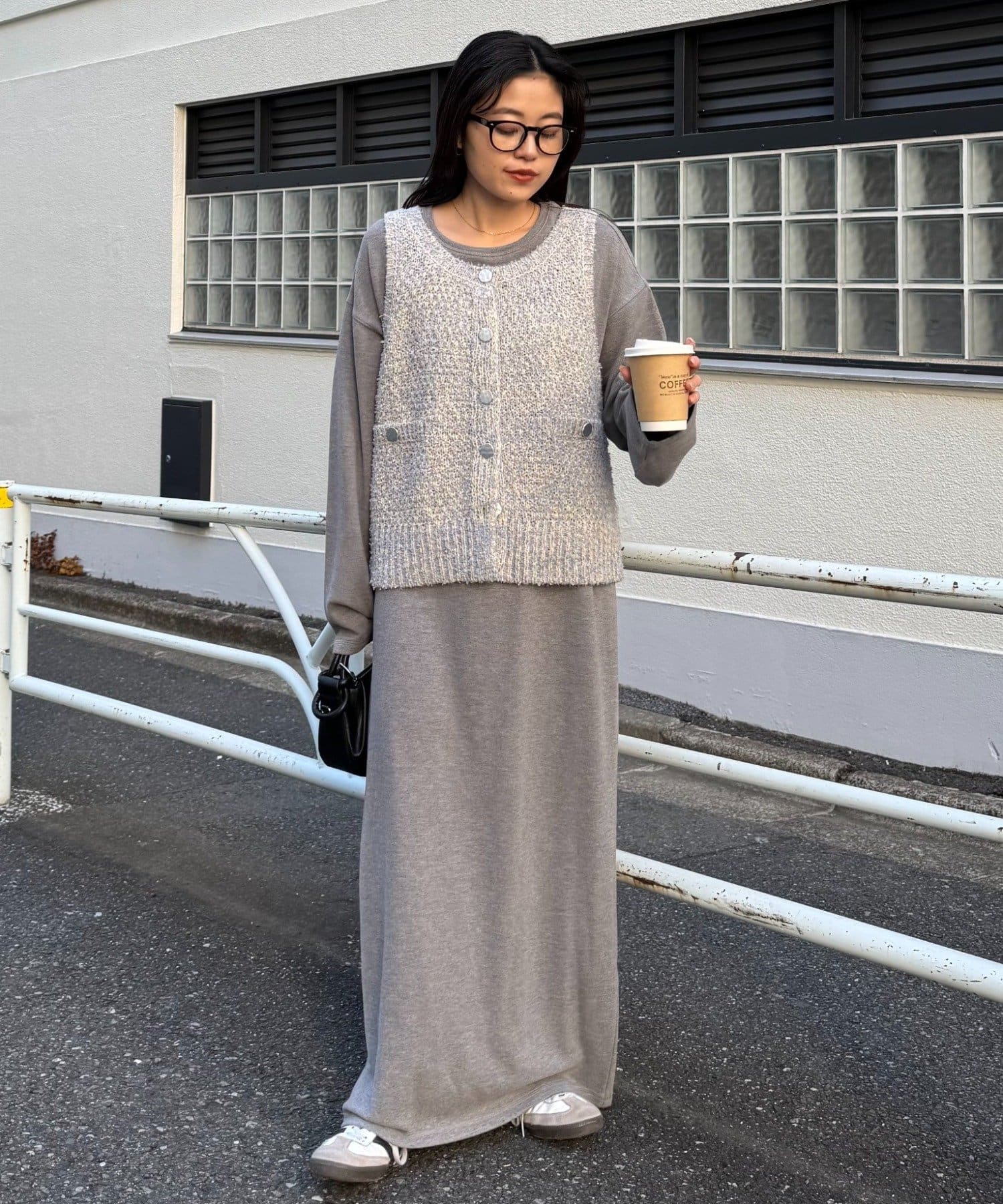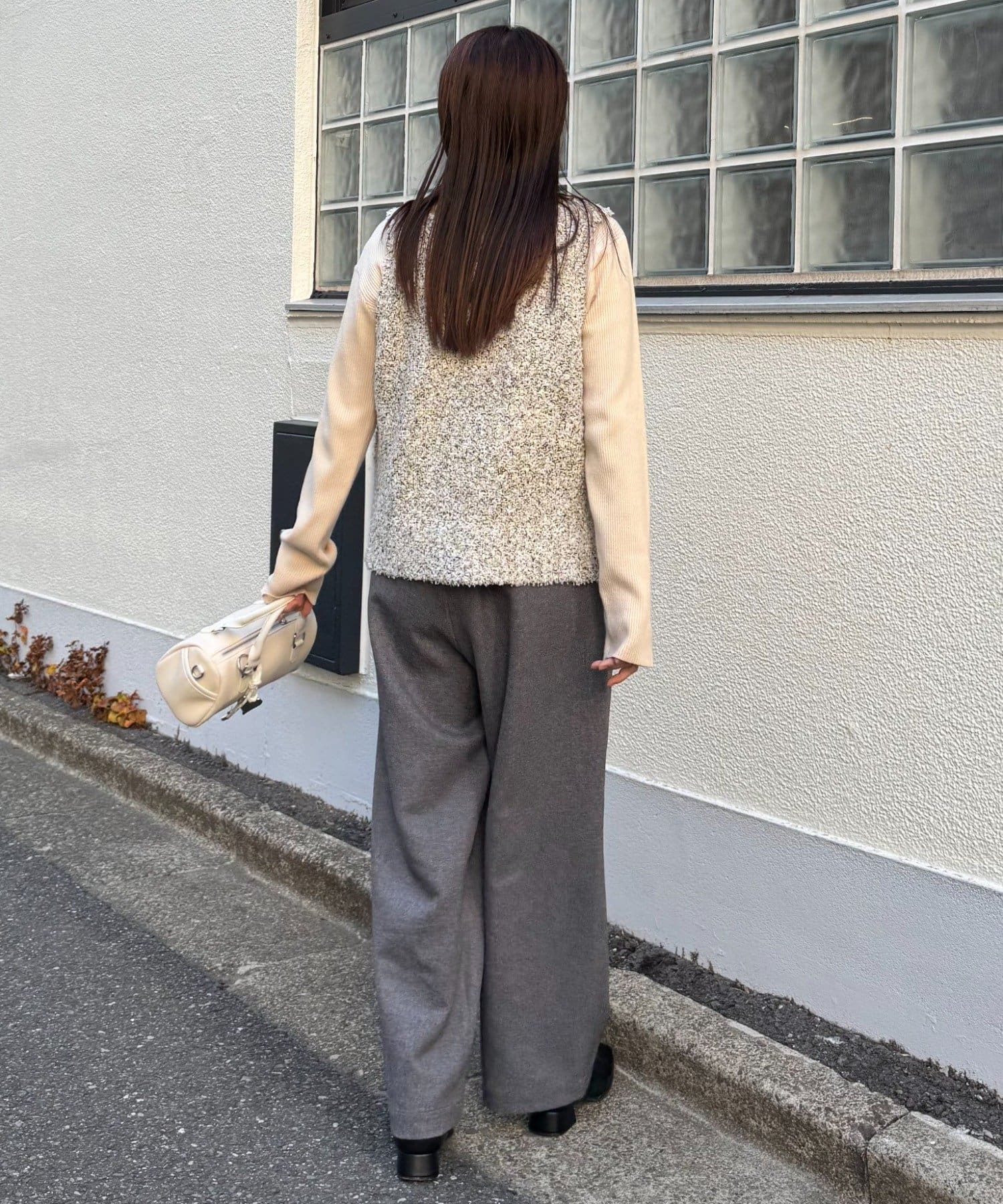 柔らかいツイード生地なので、Tシャツやデニムなどカジュアルコーデにも馴染みます。