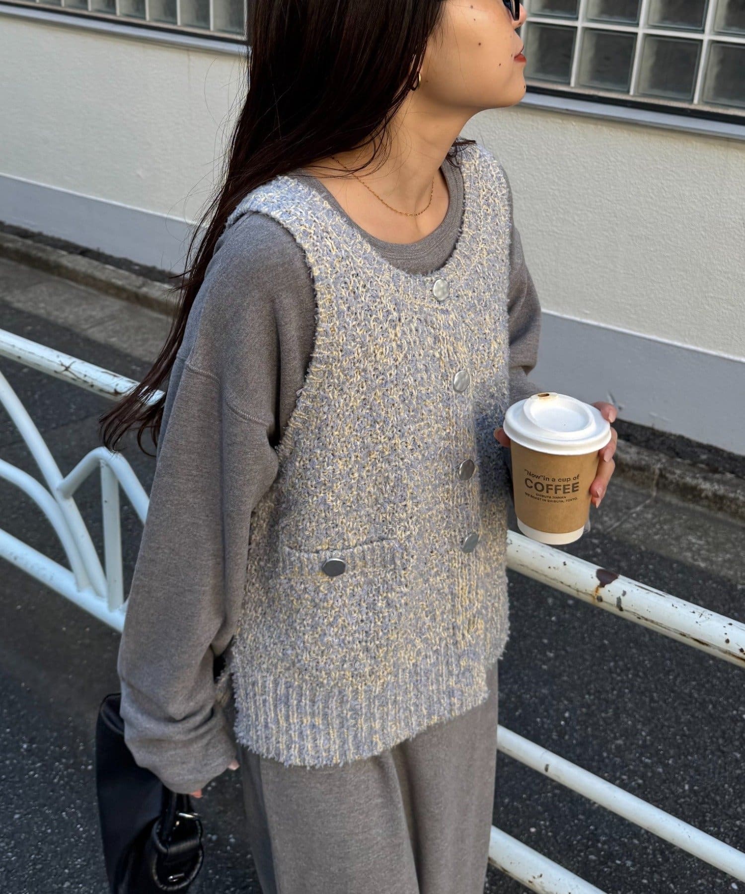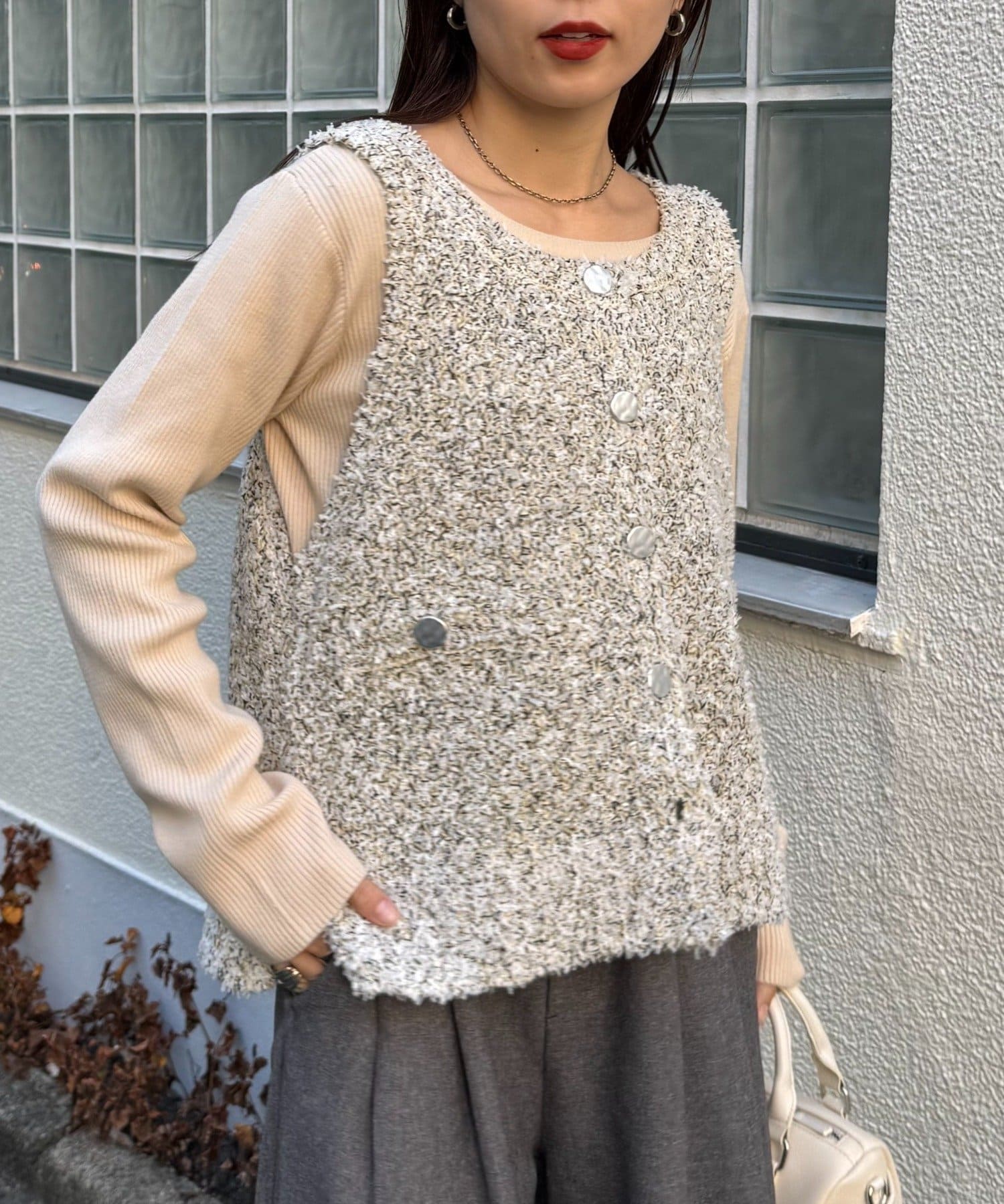 銀ボタンツイードニットベスト