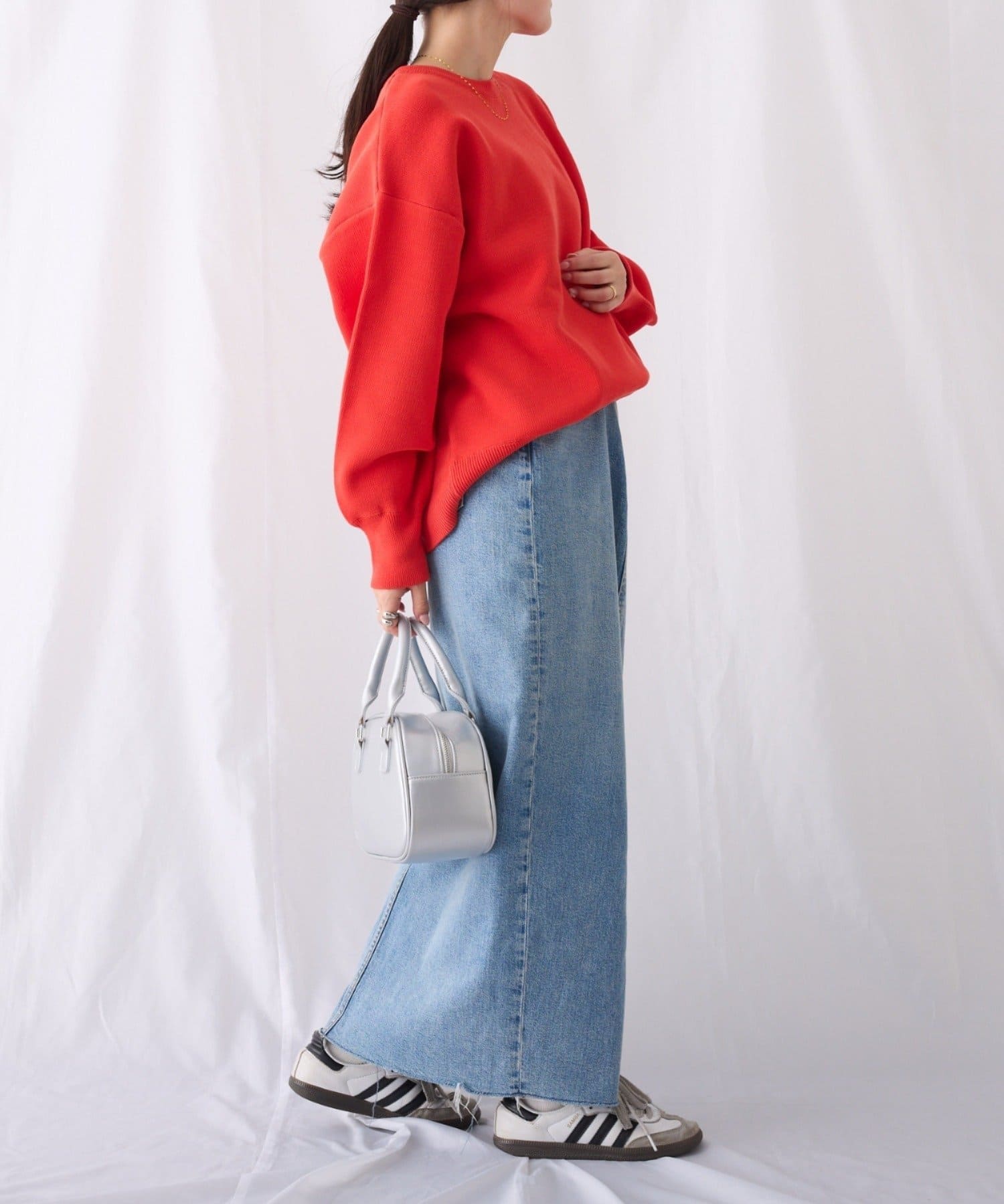 軽量で程よい厚みのニットなのでロングシーズン大活躍!