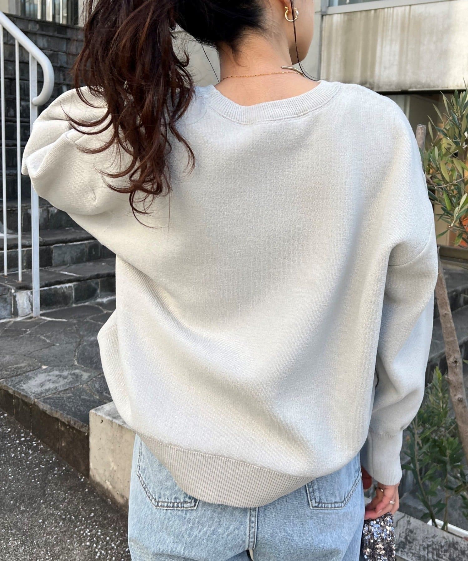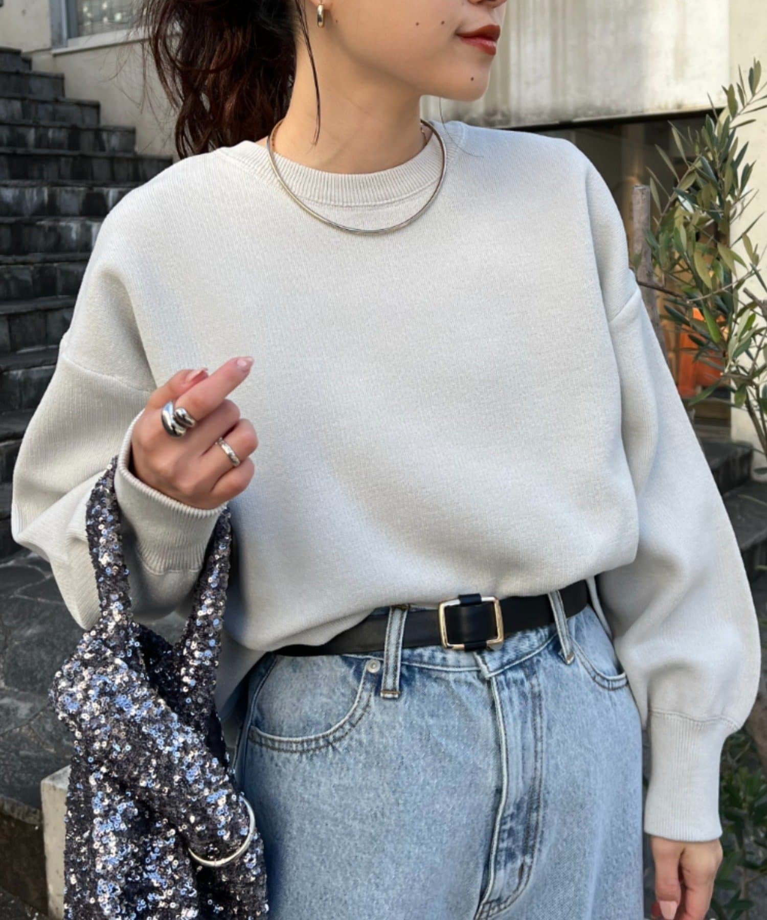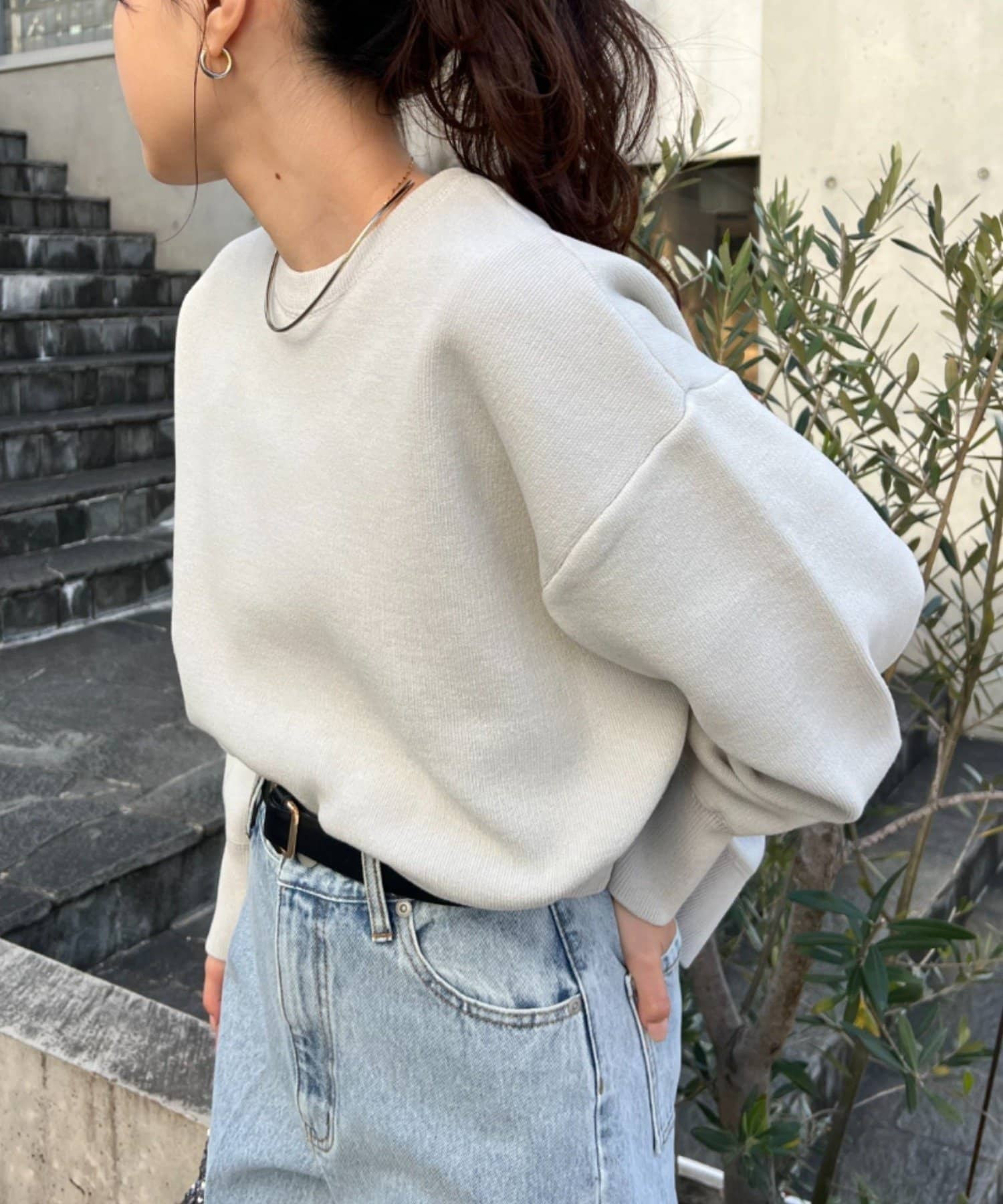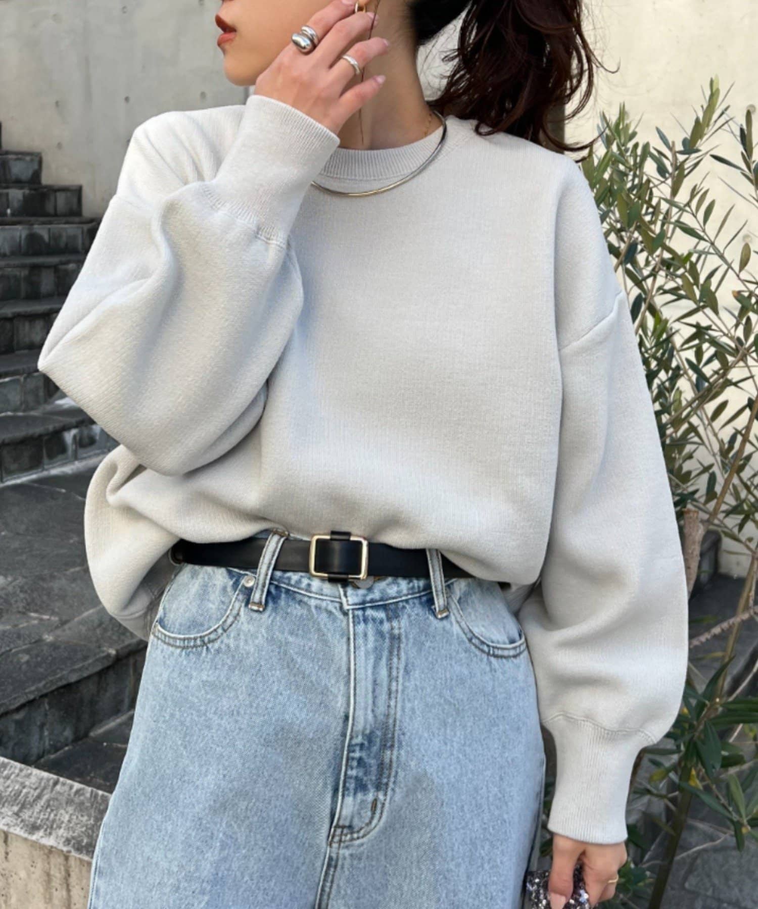 程よくルーズなサイズ感なのでアウトスタイリングでもバランスよく着こなせます。