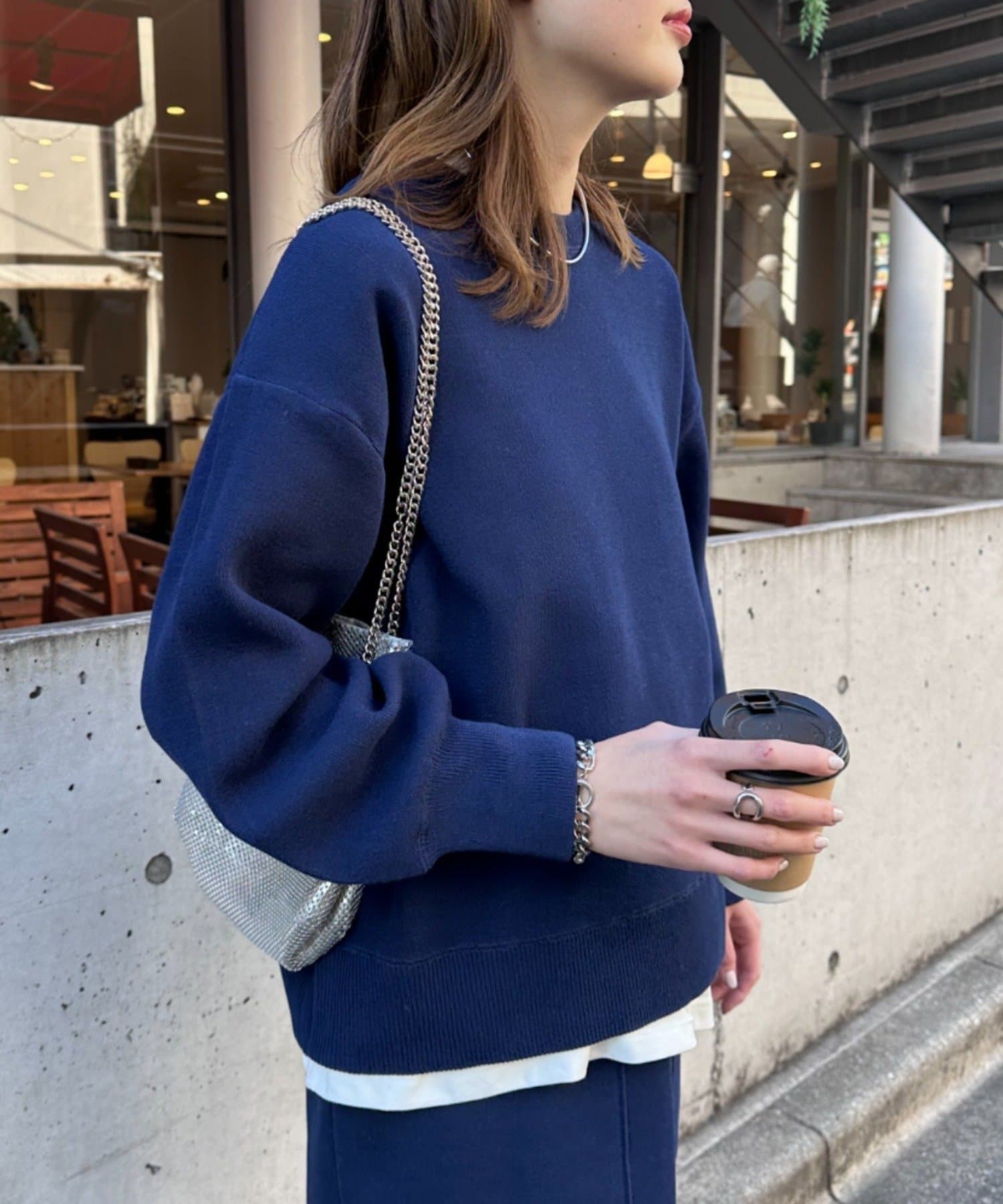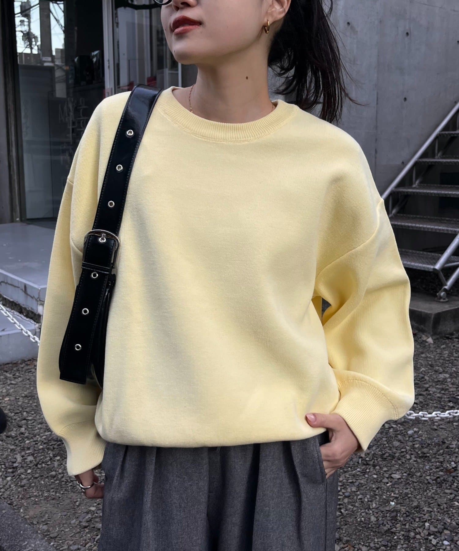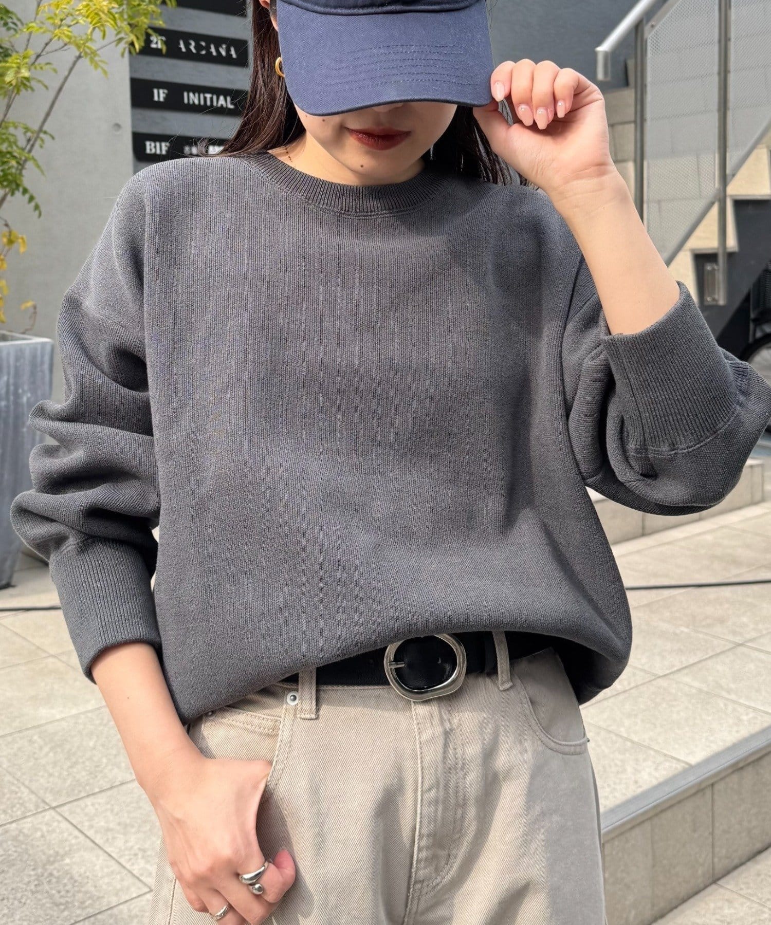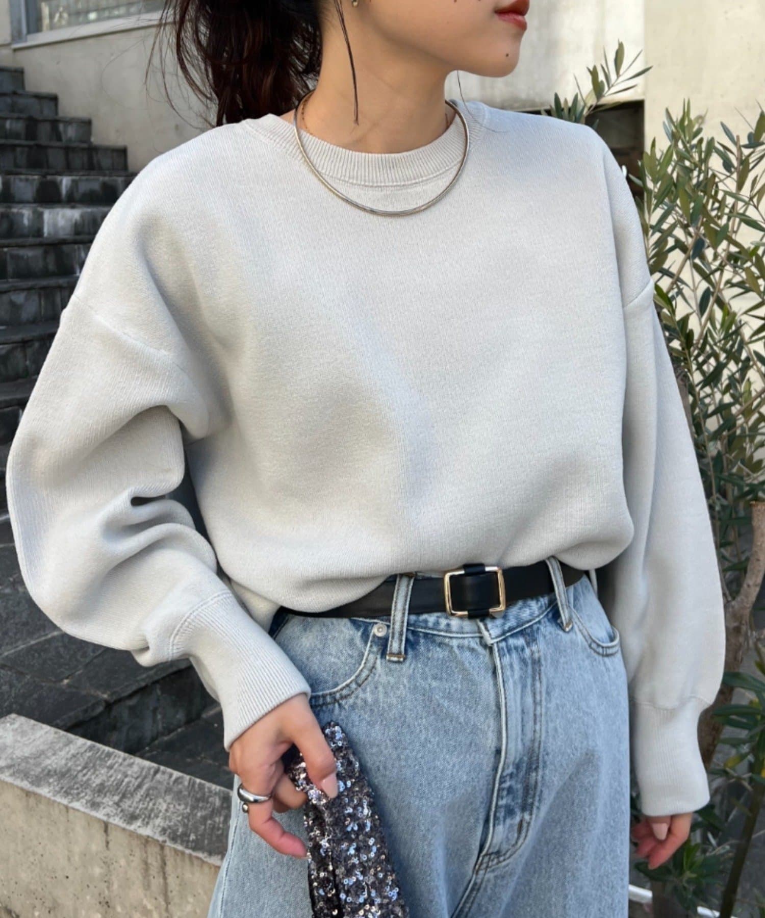 程よくルーズなサイズ感なのでアウトスタイリングでもバランスよく着こなせます。