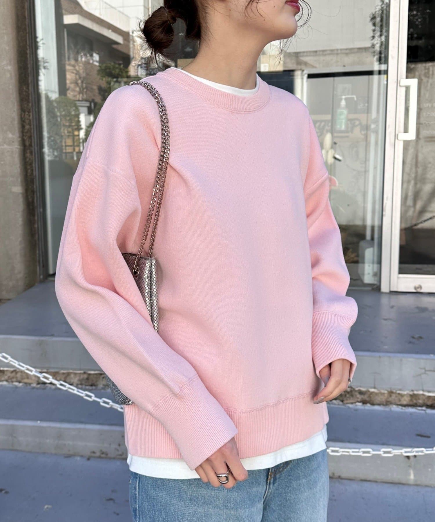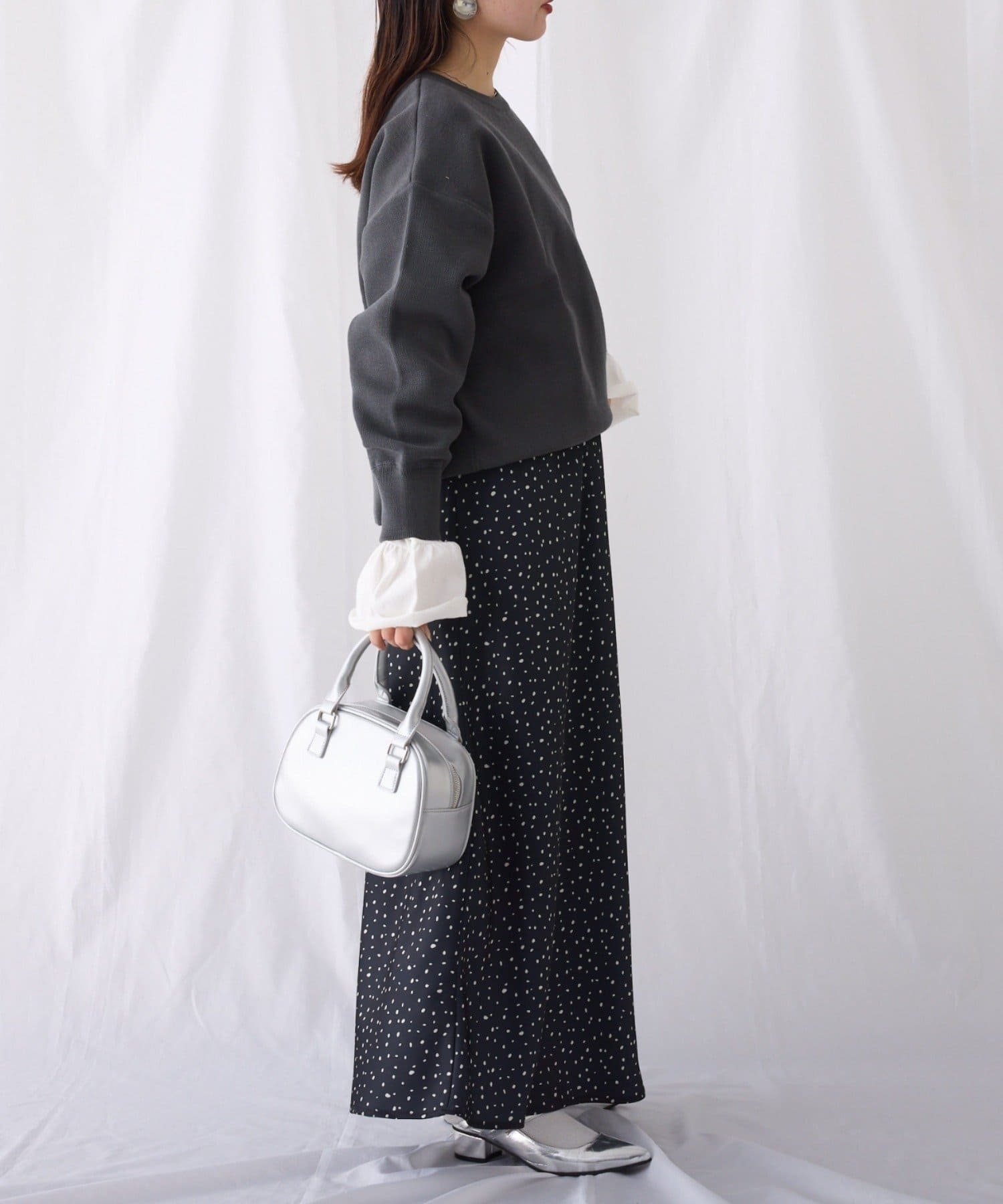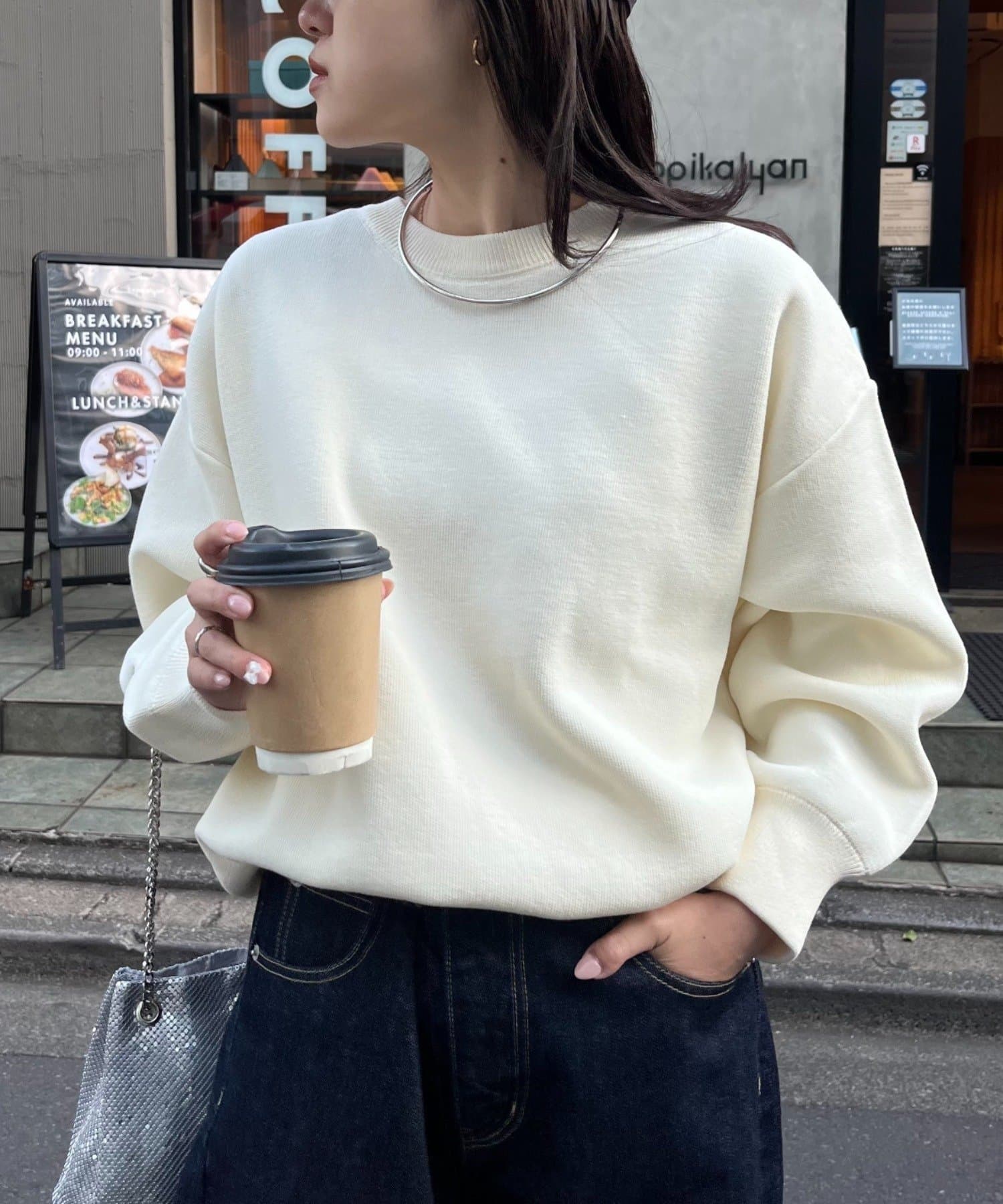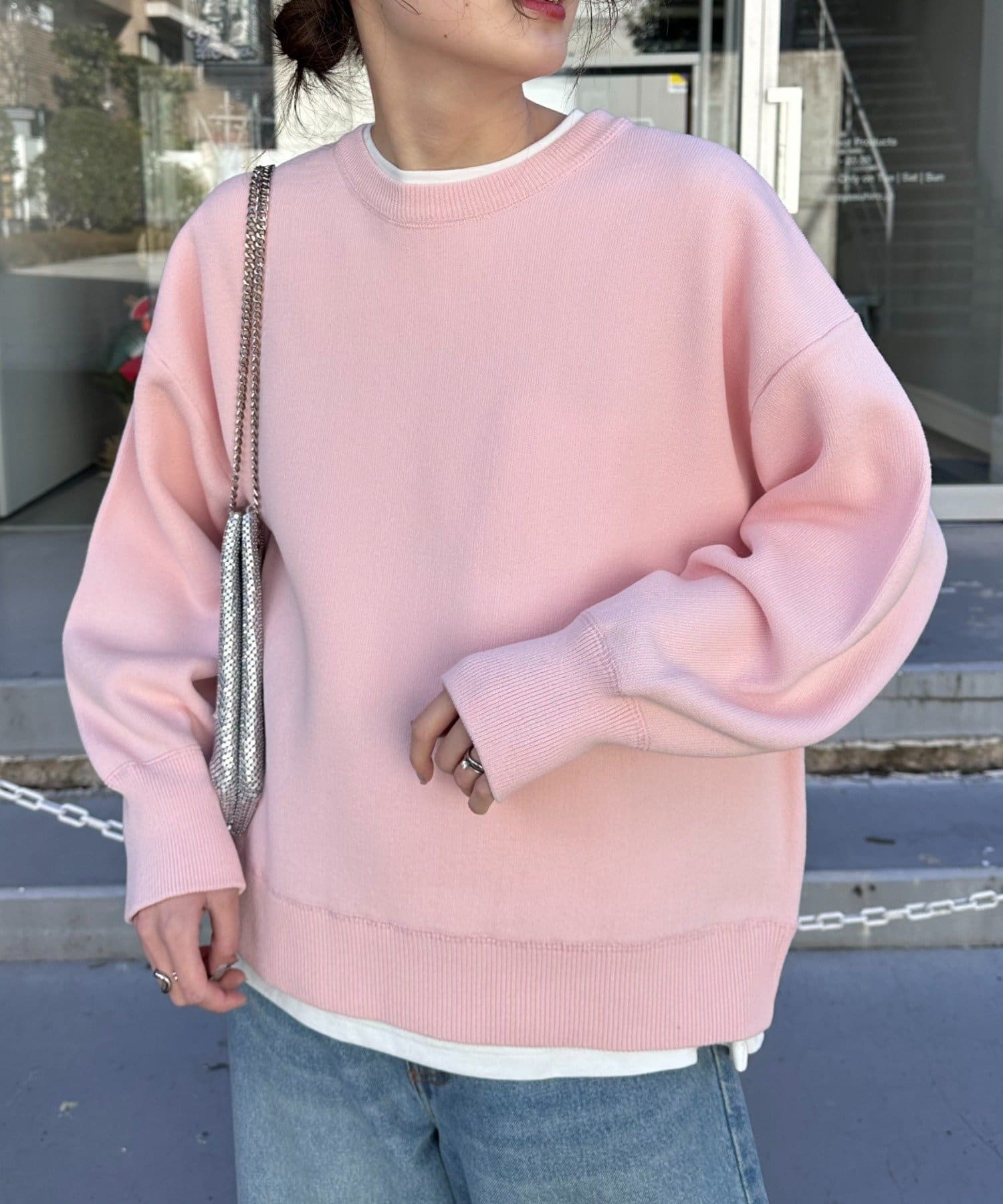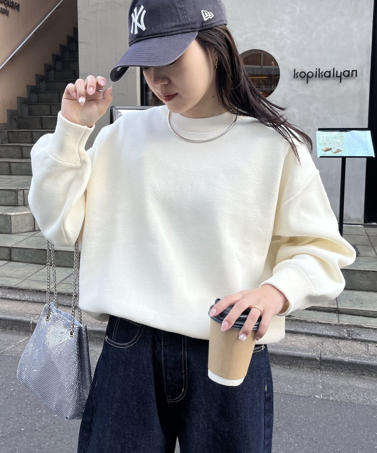 程よくルーズなサイズ感なのでアウトスタイリングでもバランスよく着こなせます。