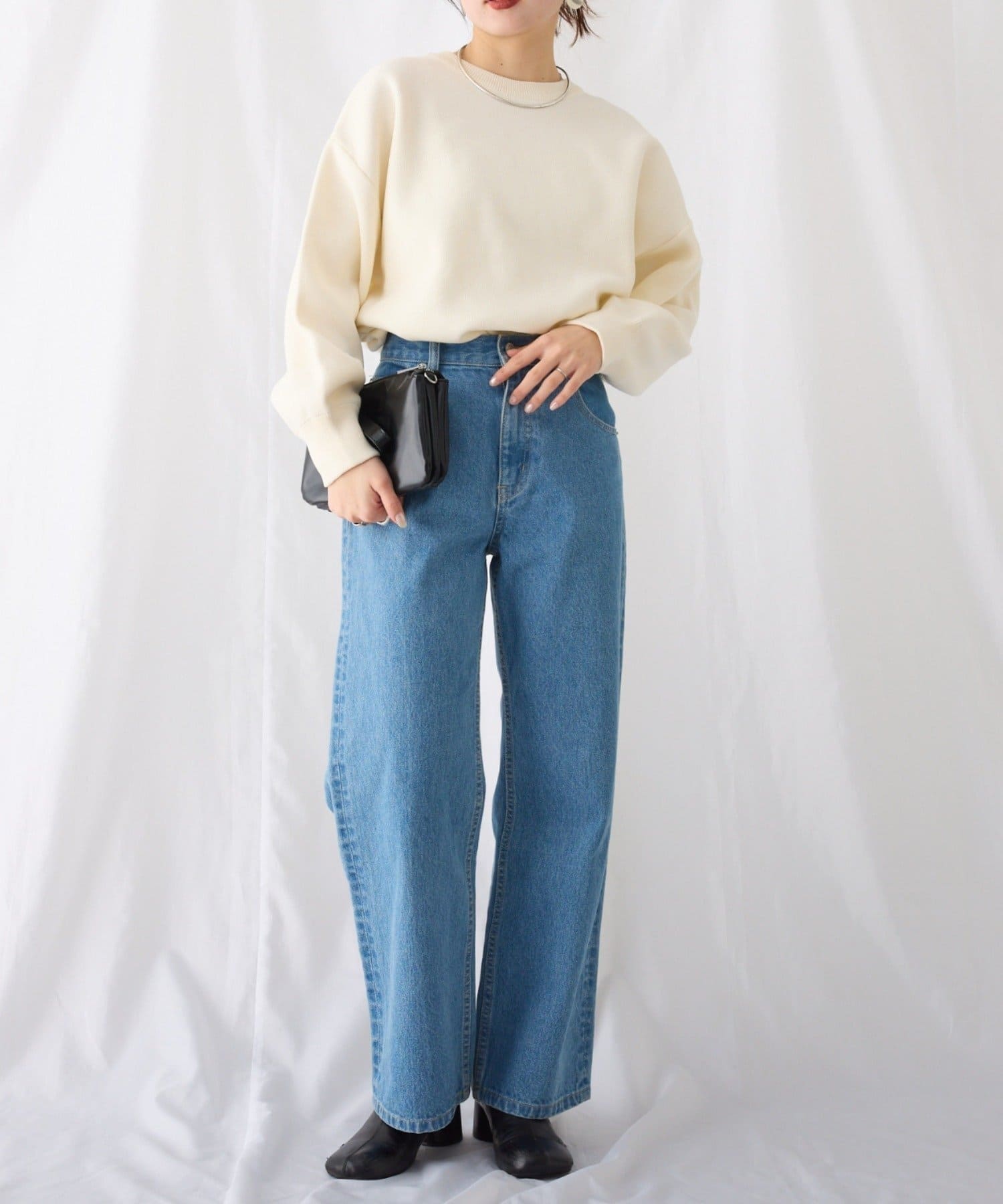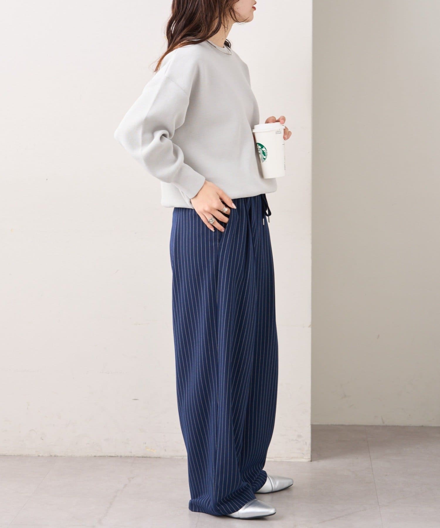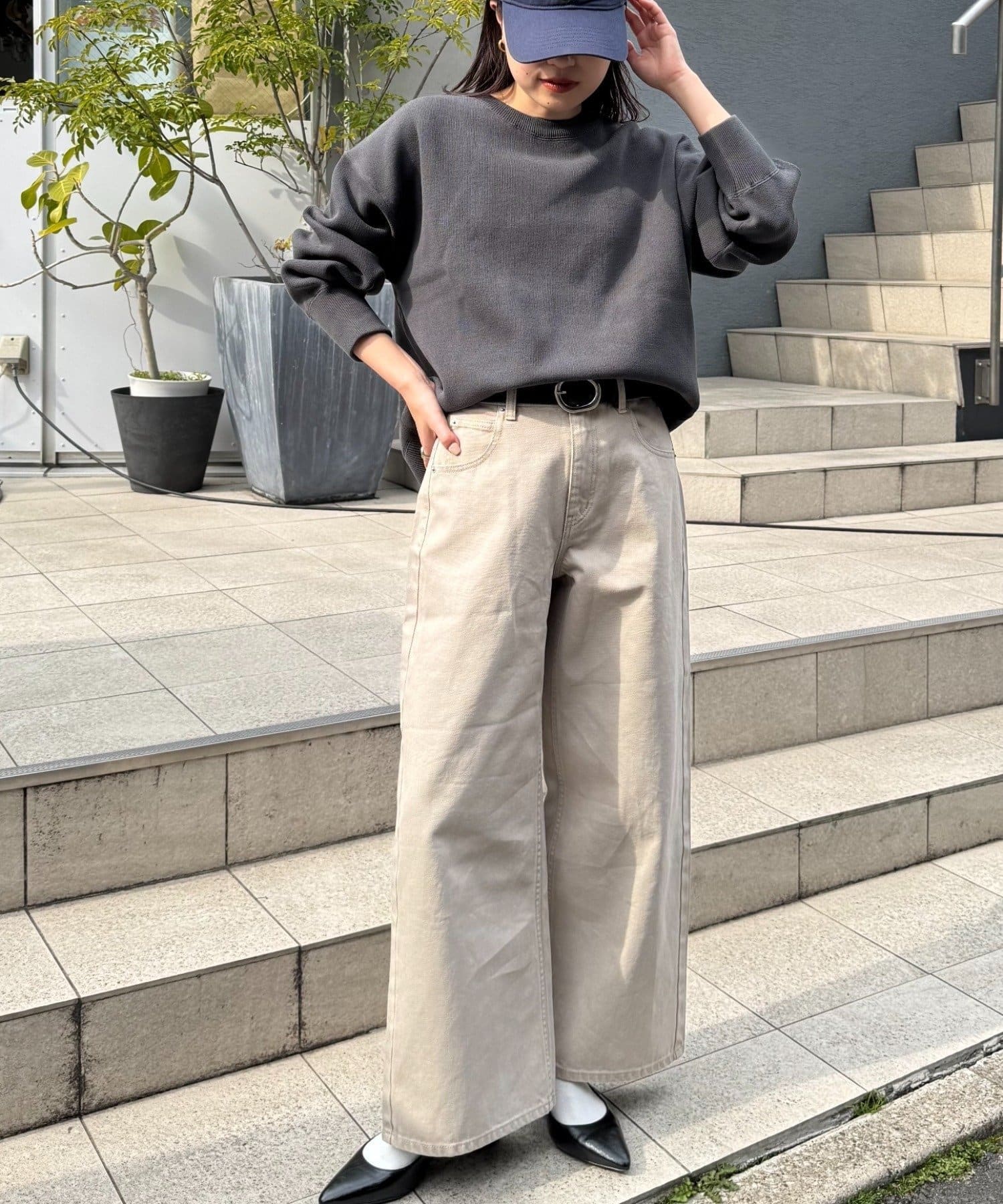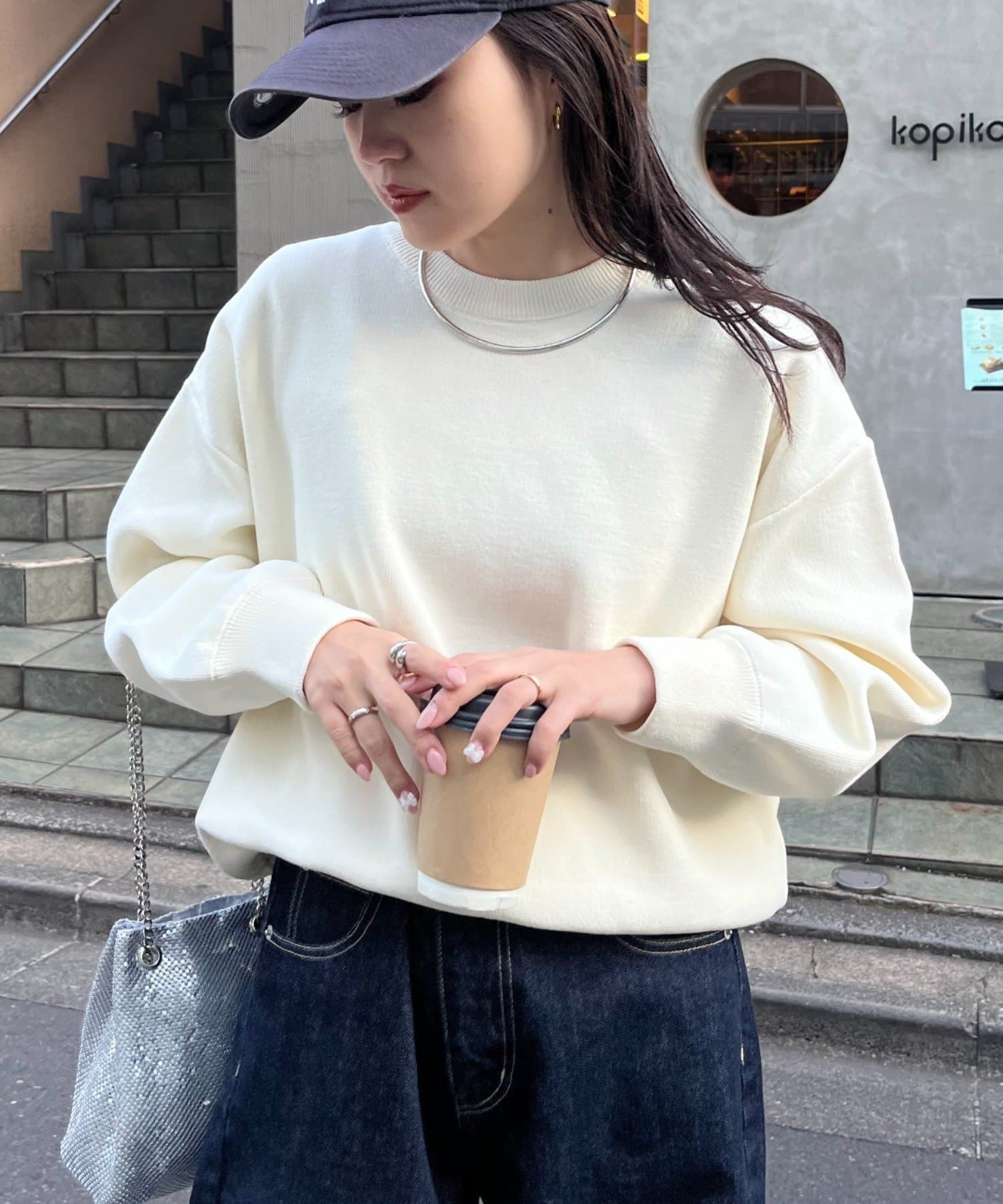 程よくルーズなサイズ感なのでアウトスタイリングでもバランスよく着こなせます。