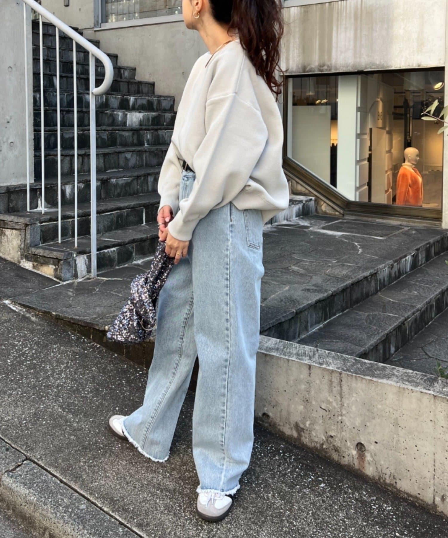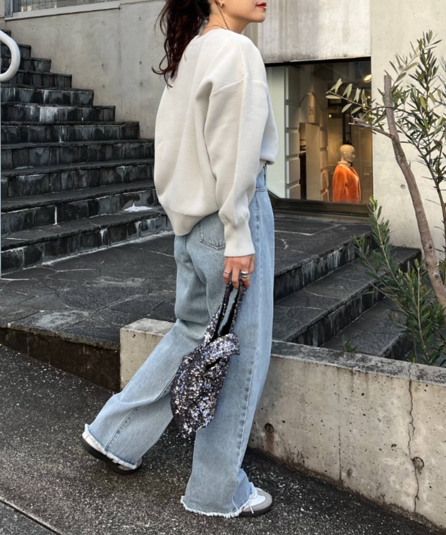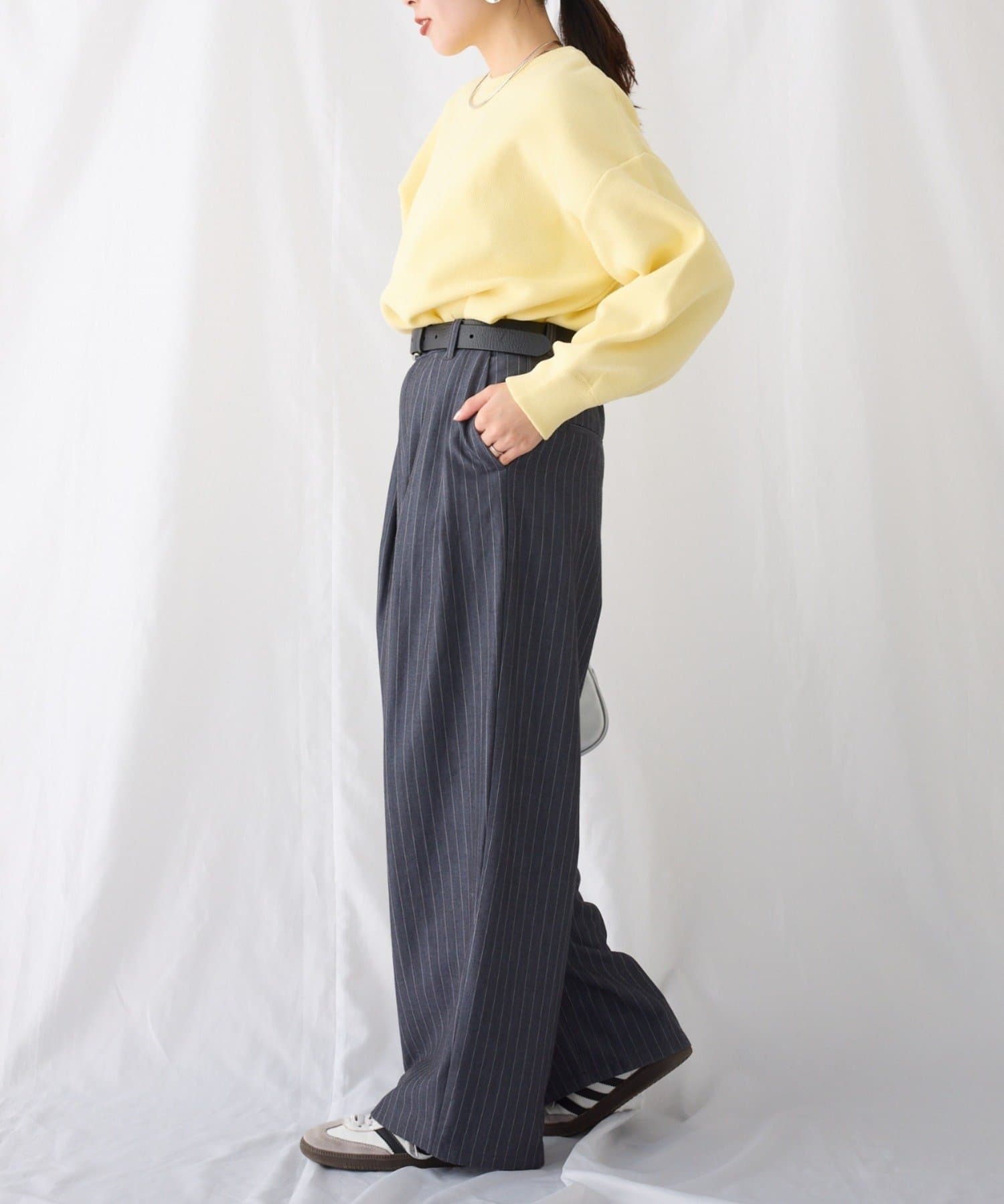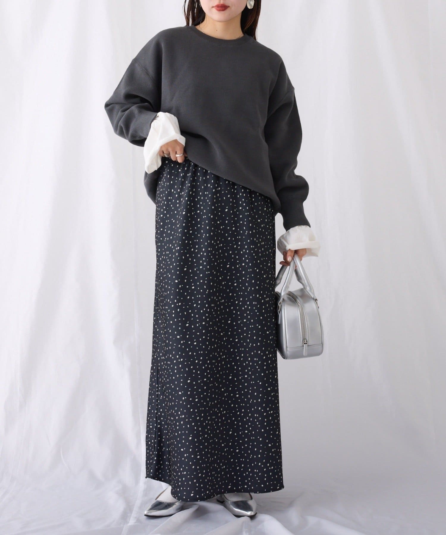 程よくルーズなサイズ感なのでアウトスタイリングでもバランスよく着こなせます。