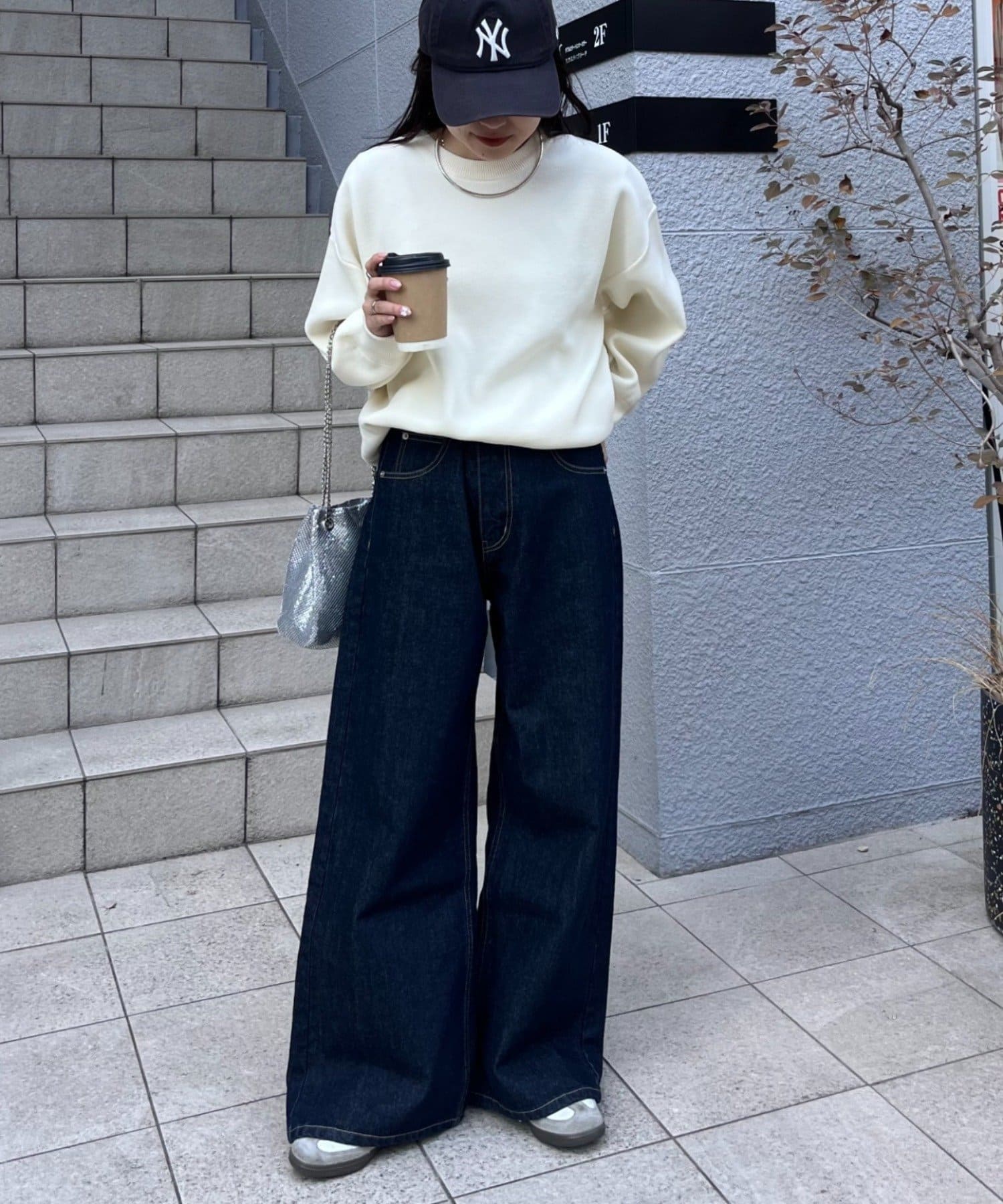 シンプルにデニムと合わせれば、定番カジュアルスタイルの完成!