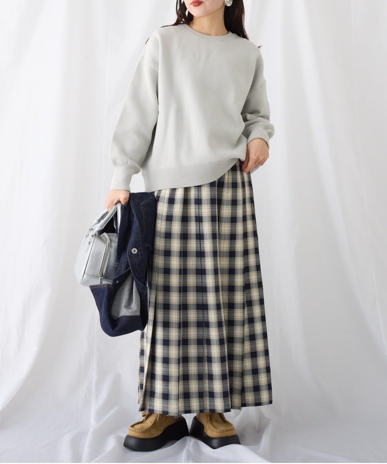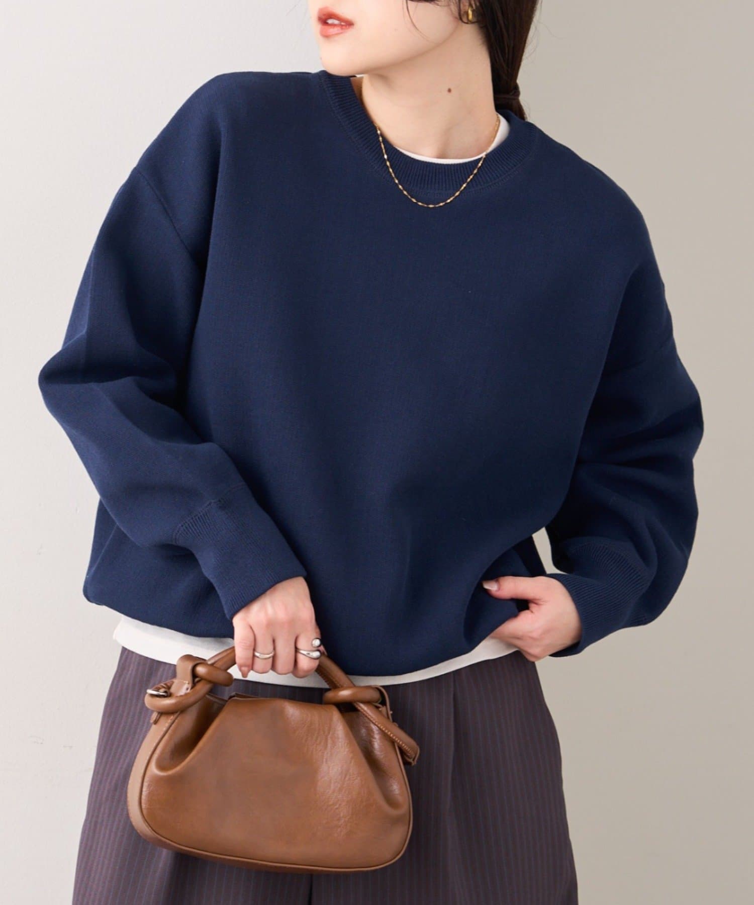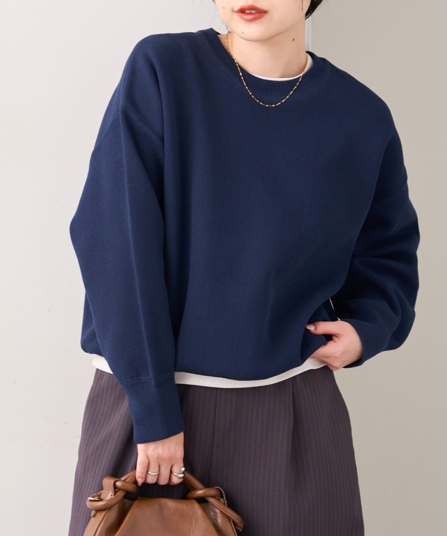 軽量で程よい厚みのニットなのでロングシーズン大活躍!