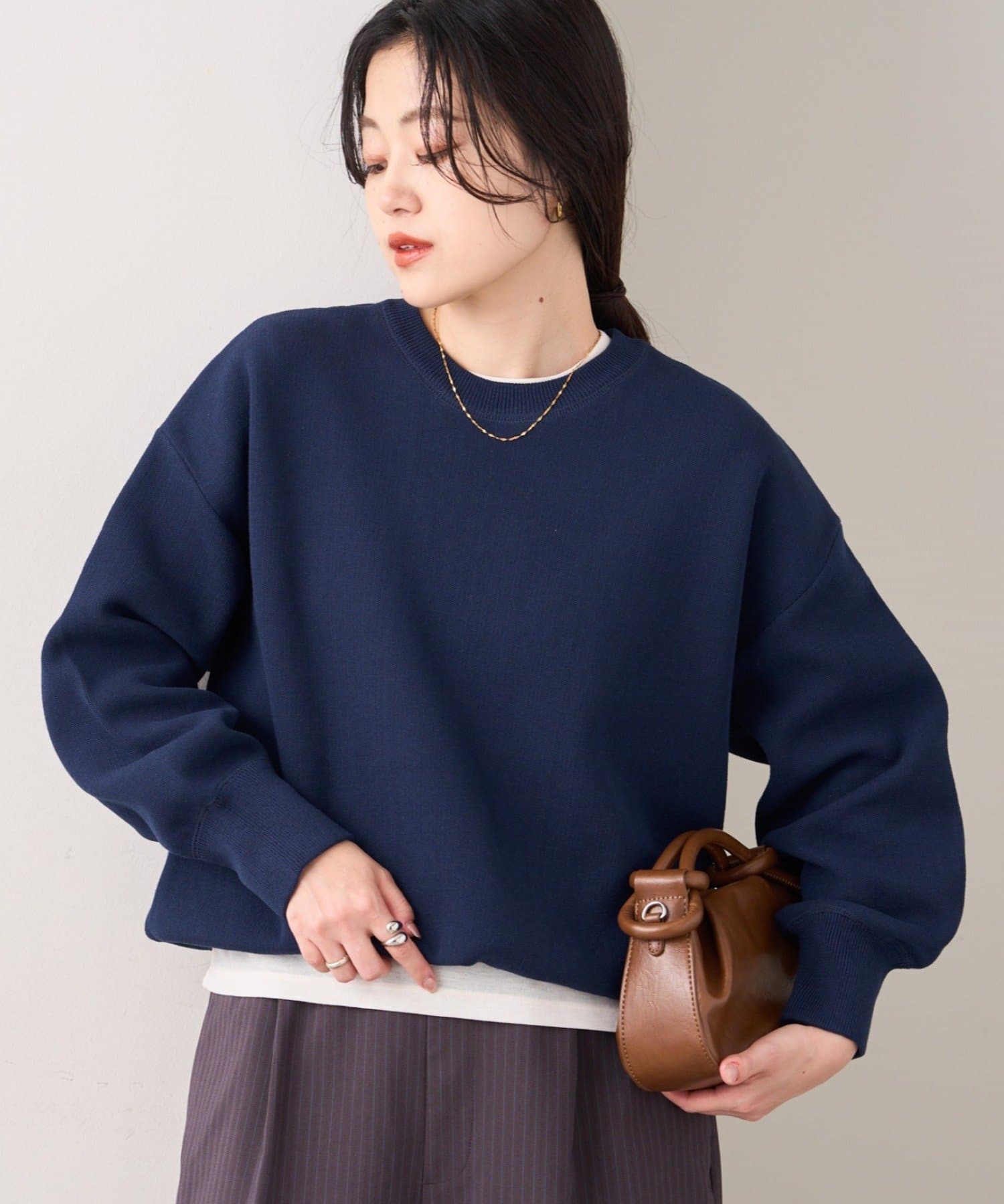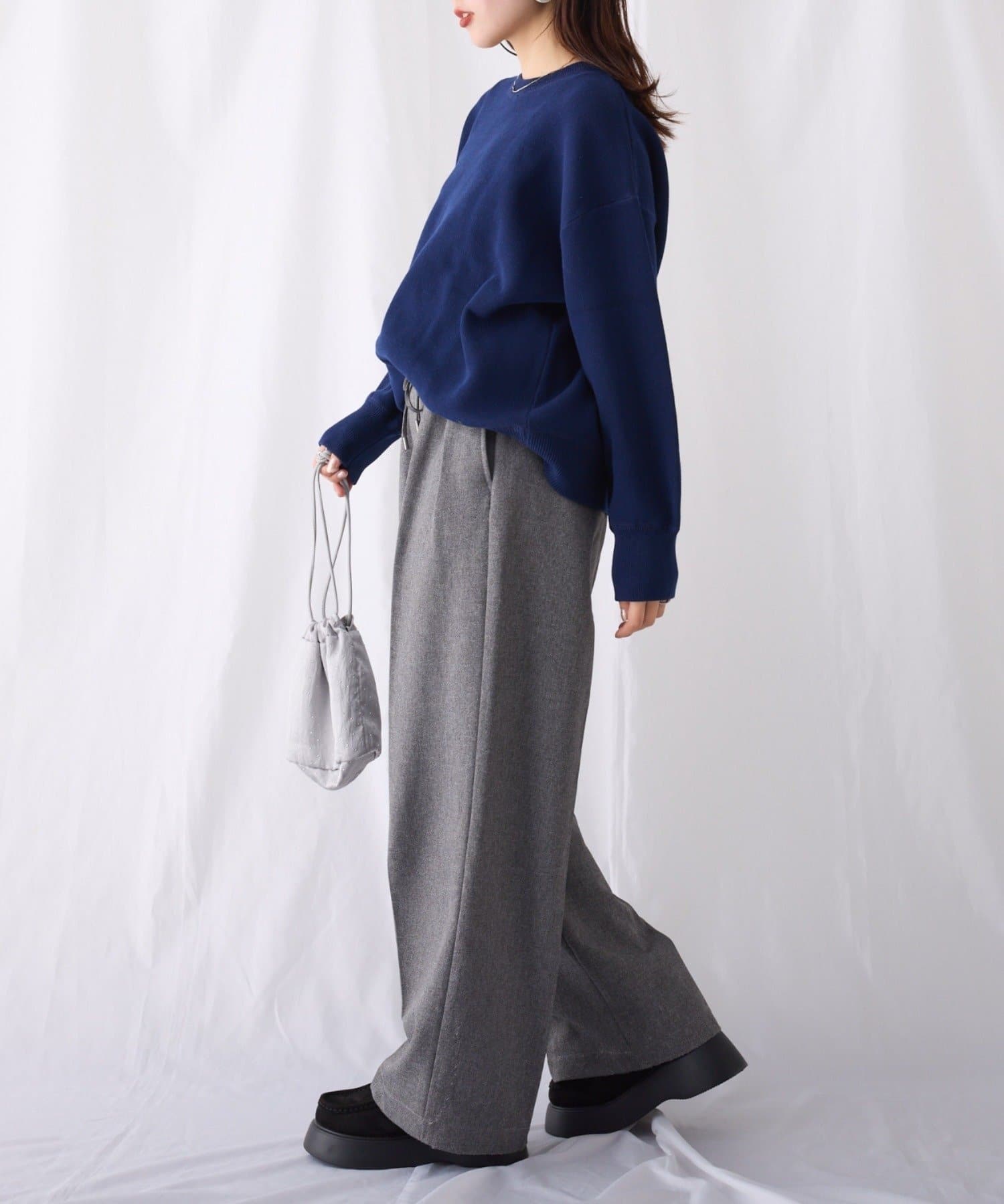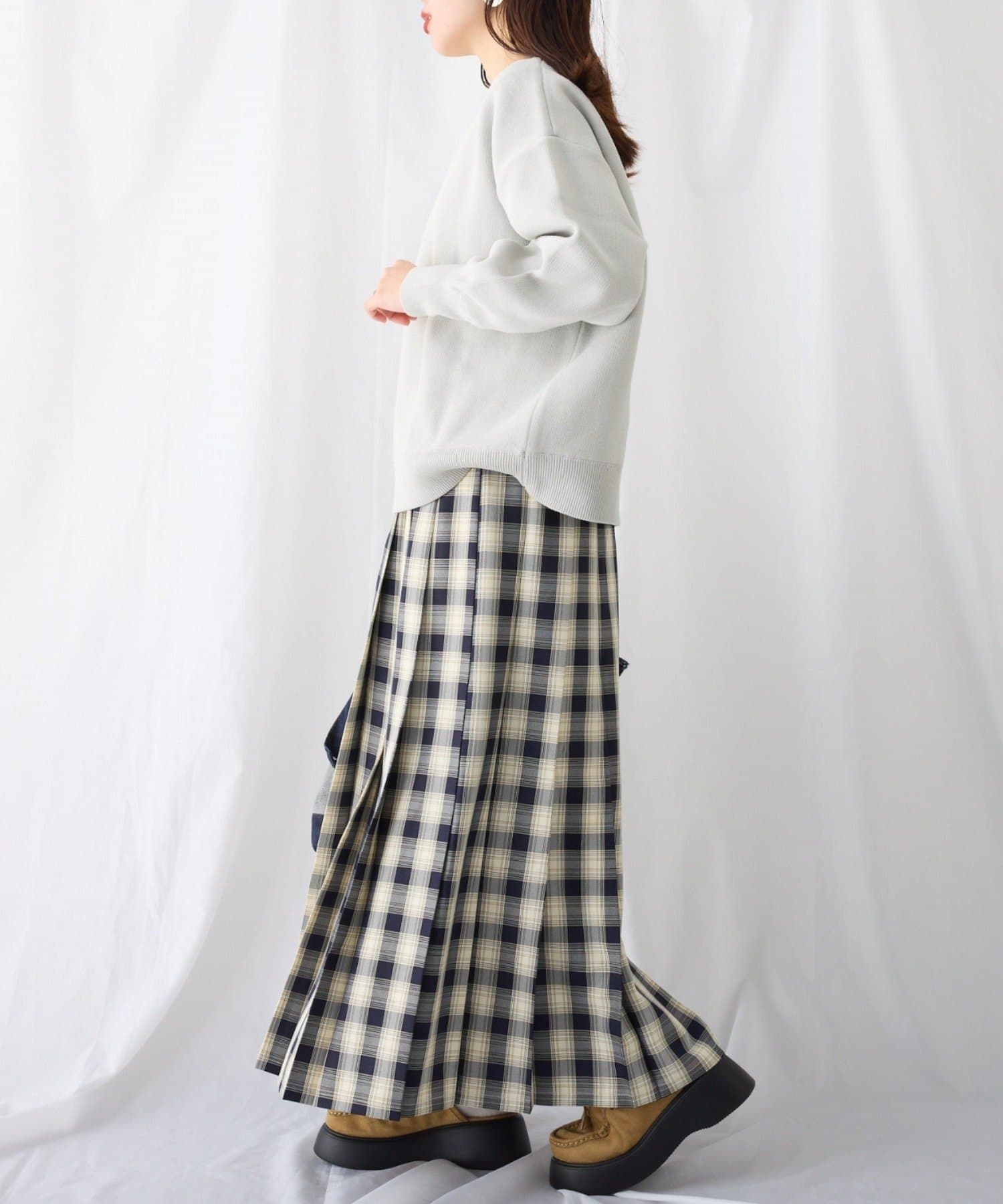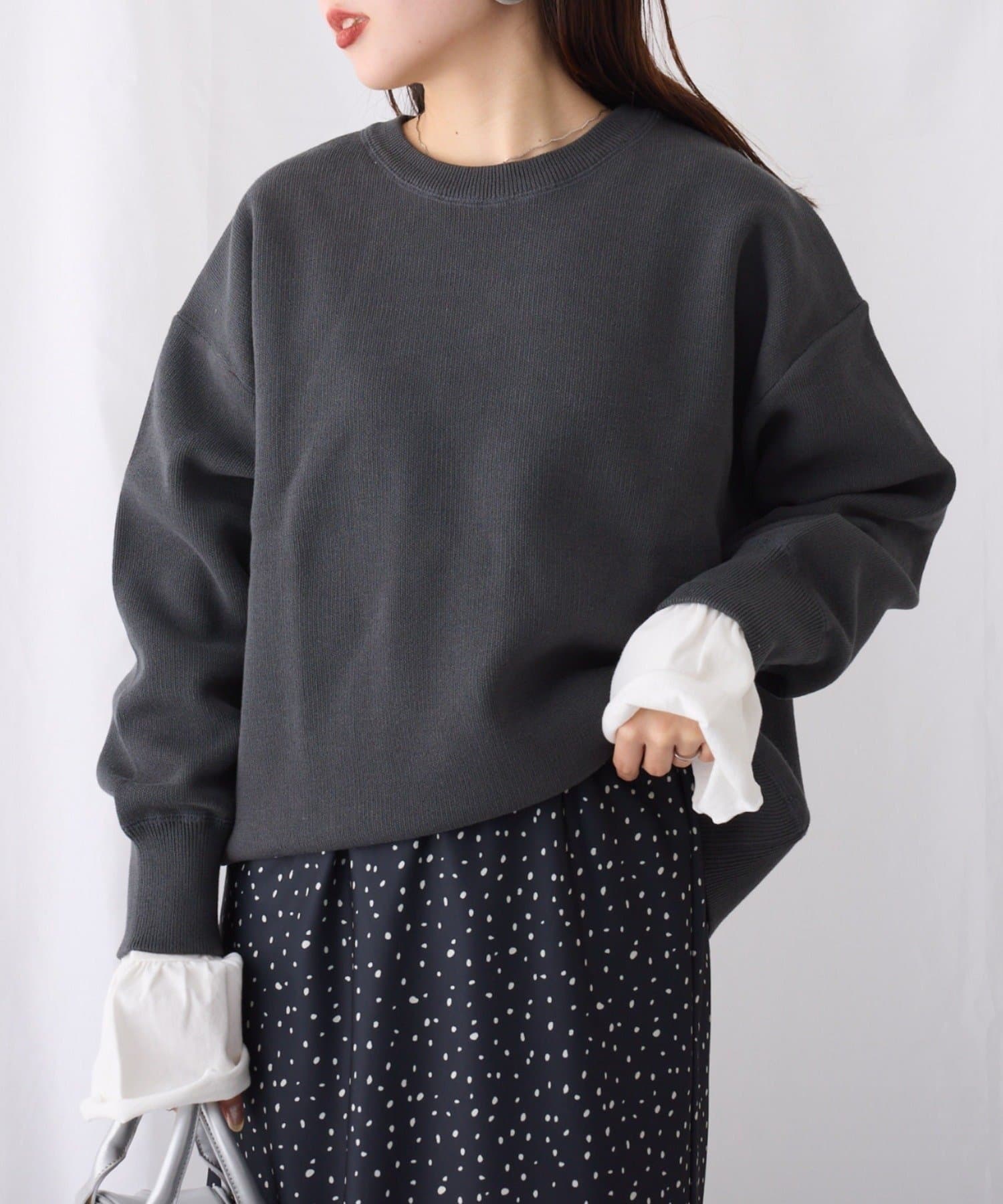 軽量で程よい厚みのニットなのでロングシーズン大活躍!