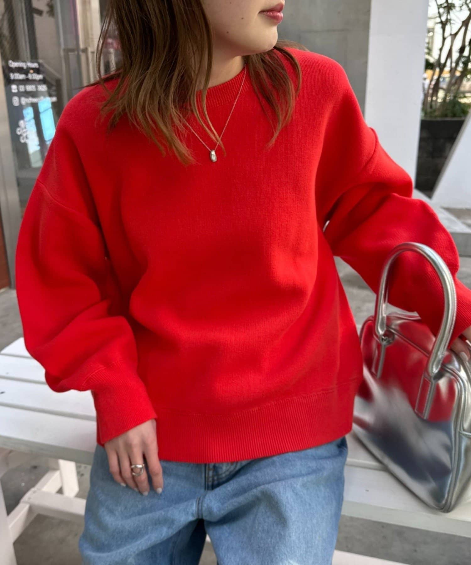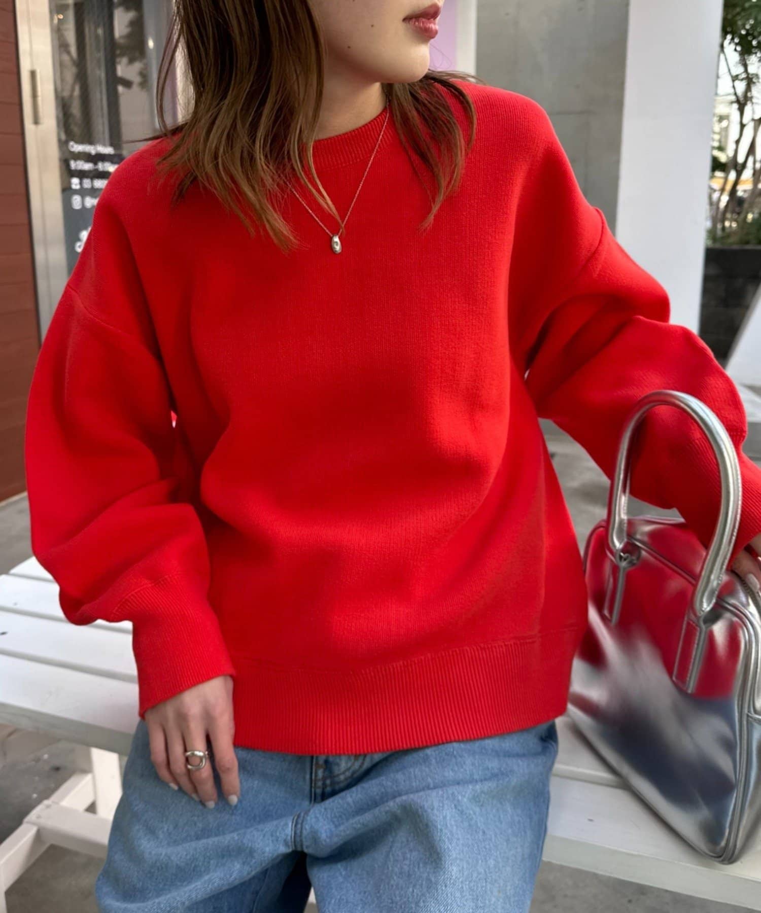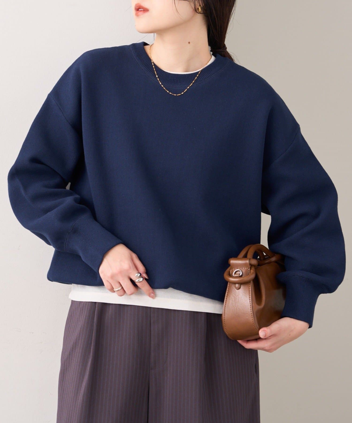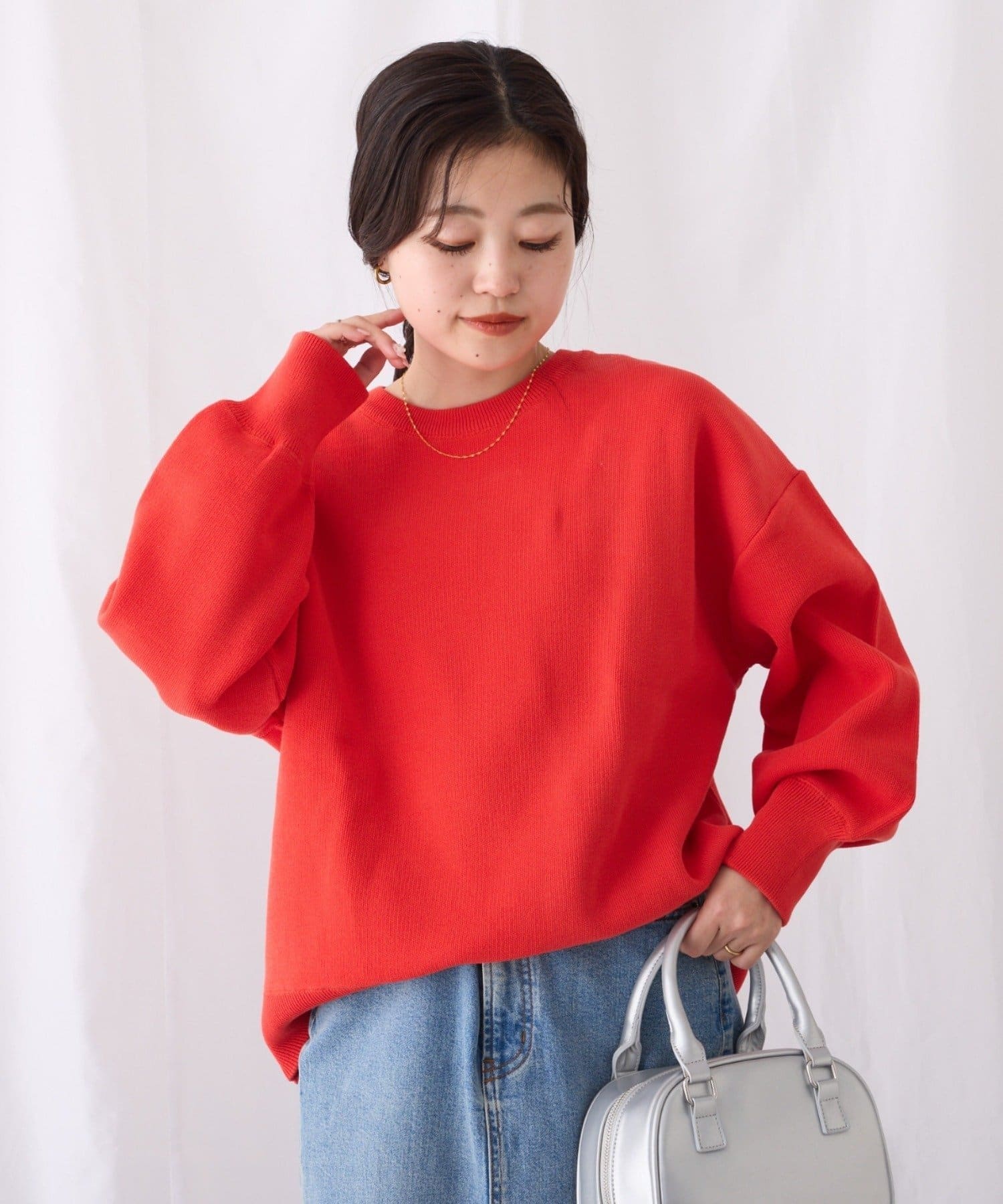立体感のあるふっくらシルエットが魅力のニット。