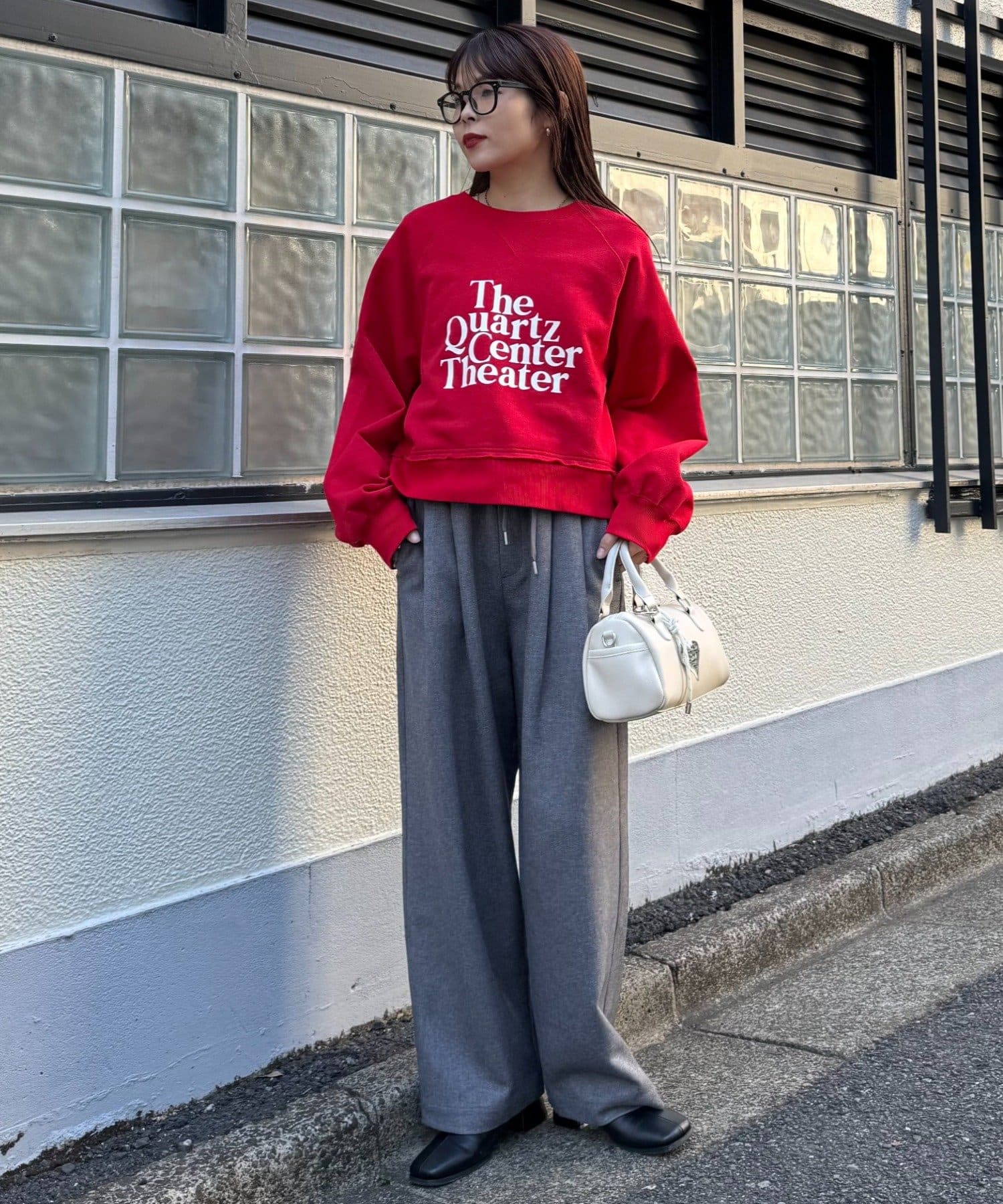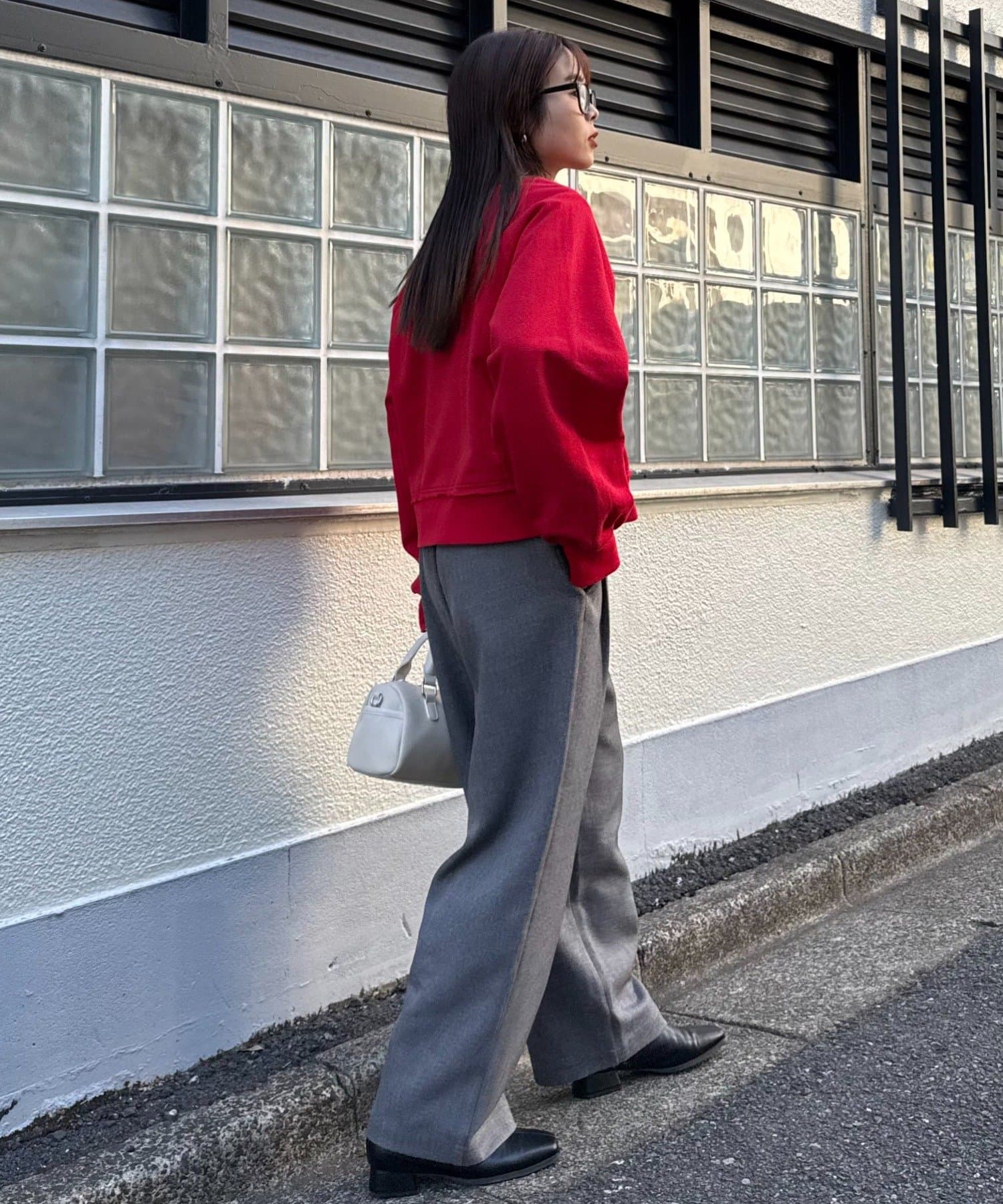 長すぎない着丈なので、トレンドのワイドパンツとバランス◎
