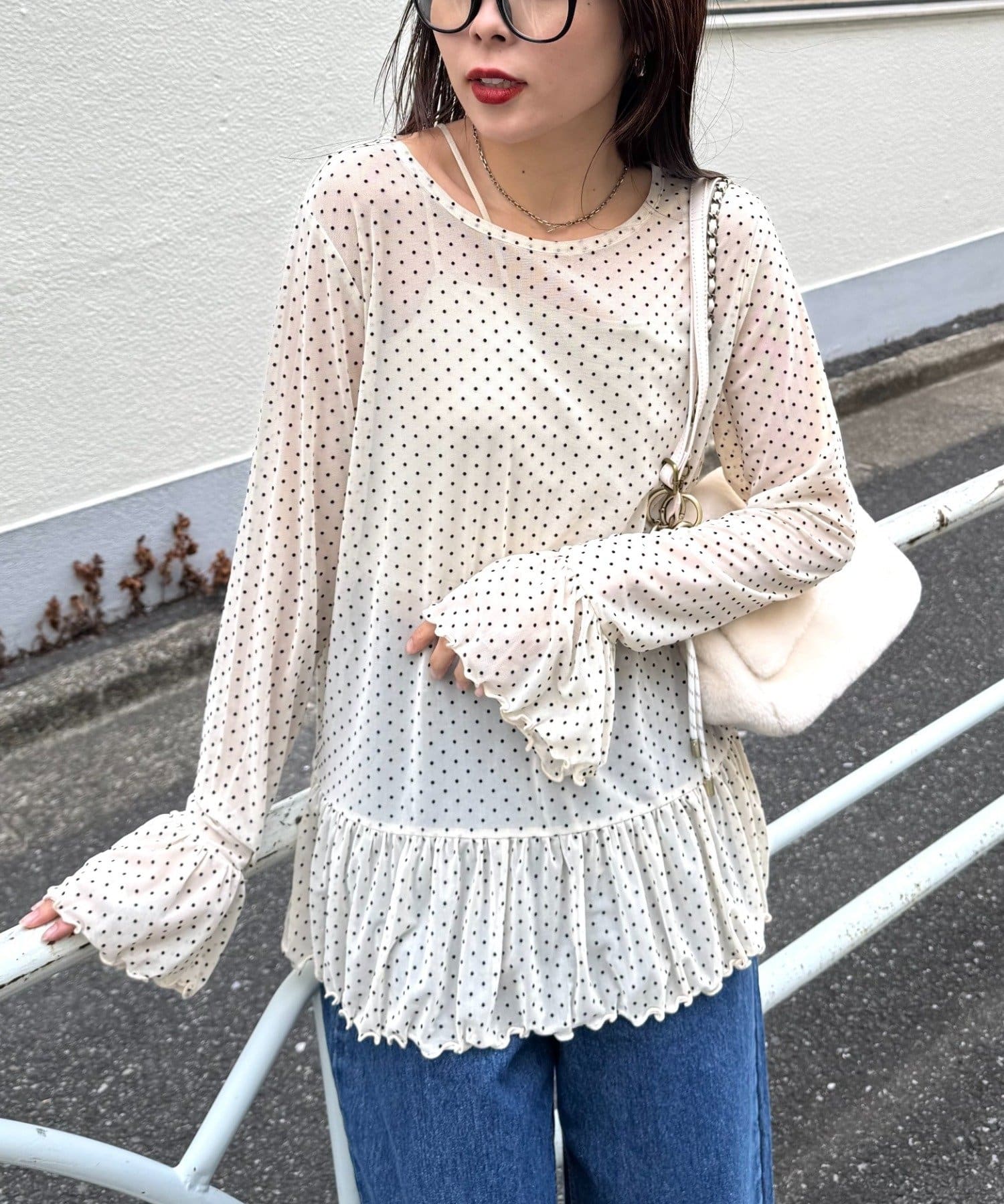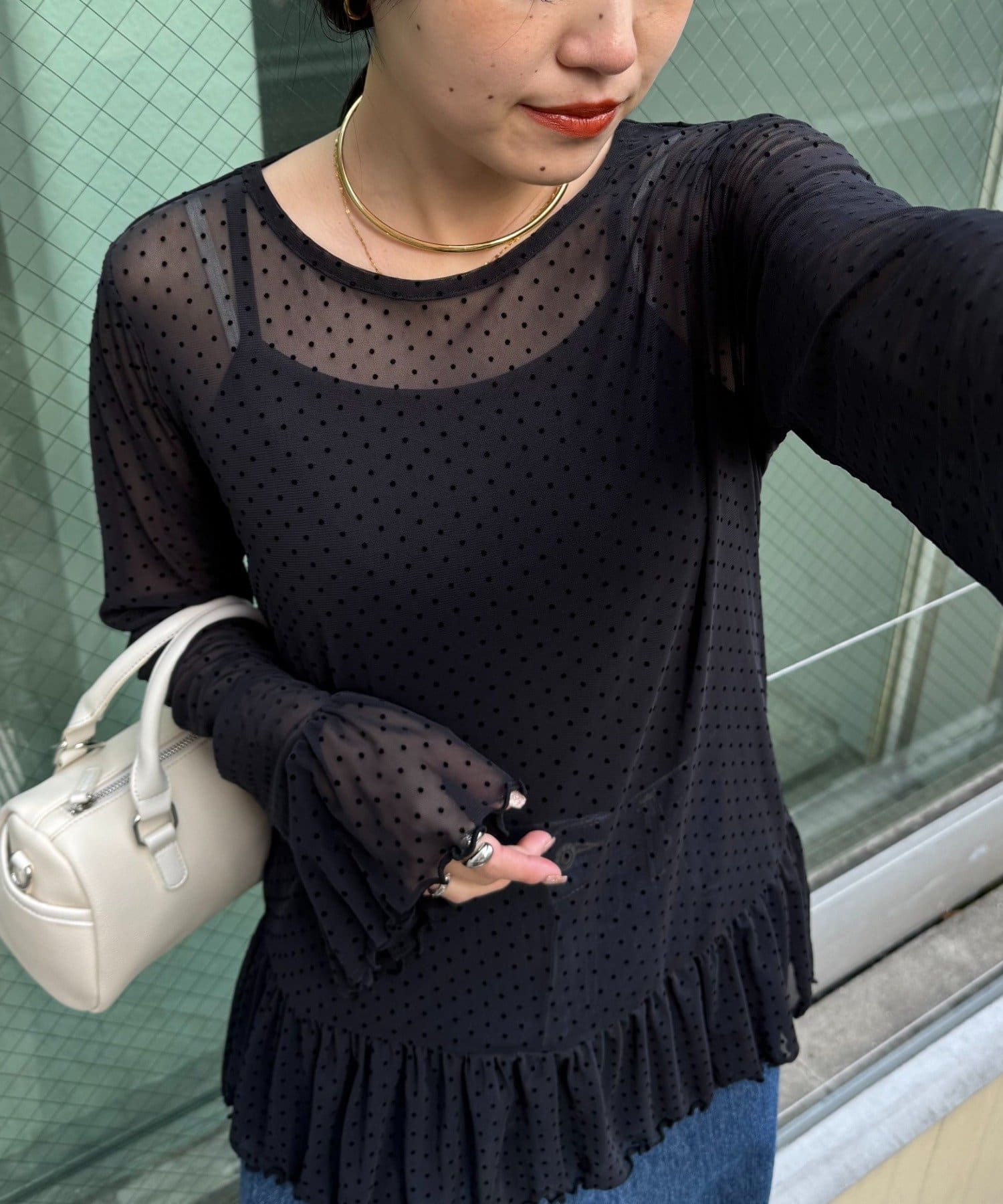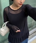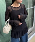 【レイヤードにおすすめ】フロッキードットチュールフリルトップス