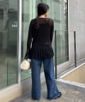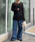 デニムと合わせるだけで、甘さとカジュアル感が程よくミックスされた大人のデイリースタイルが完成します。スラックスやタイトスカートと合わせると、チュールの透け感が引き立ち、きれいめな印象に。キャミワンピースのインナーとして重ねれば、裾のフリルがアクセントになり、レイヤードスタイルも楽しめます。ジャケットやカーディガンを羽織っても軽さが残り、季節の変わり目にも取り入れやすい一枚です。