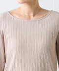 上身頃はランダムリブ素材で、ほどよく体に沿いながらも締め付け感が少なく、すっきりとした印象に。