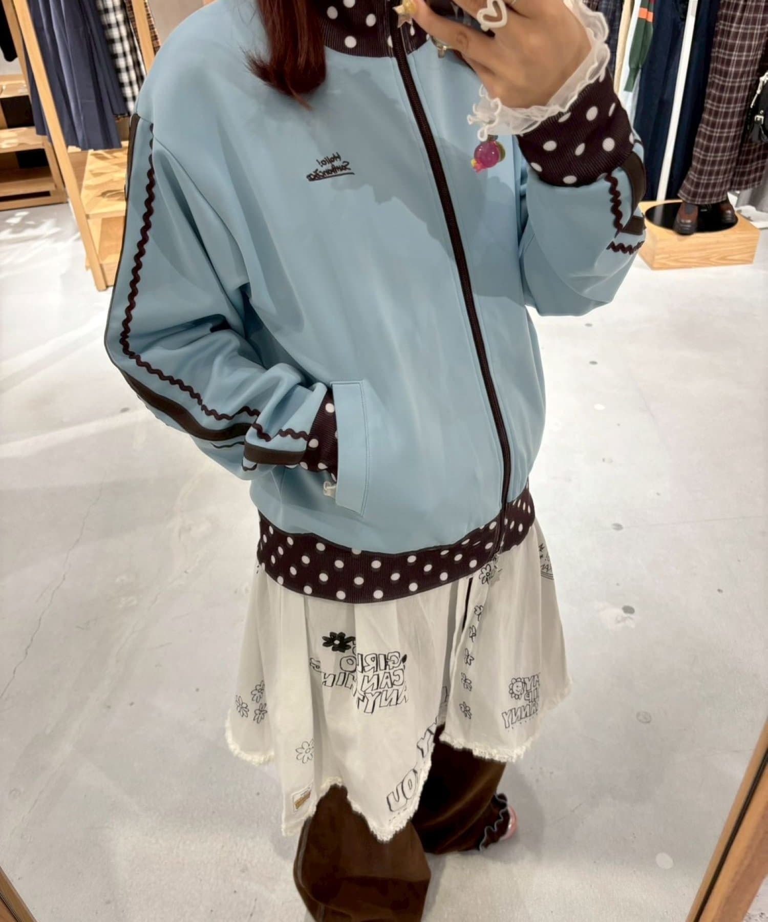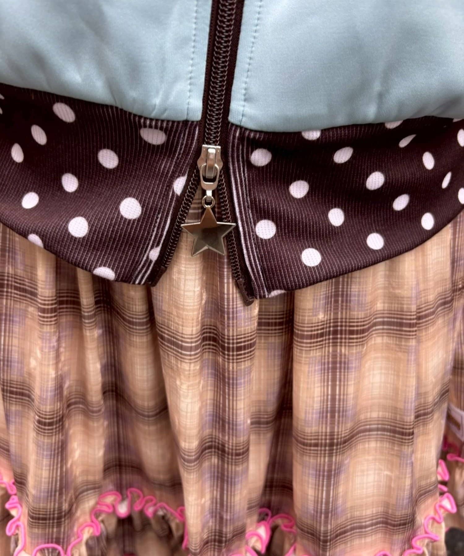 まだまだトレンドのドットで甘め×ファスナー部分が星になっていてカジュアルに!
