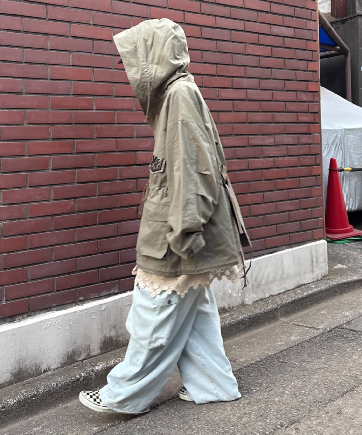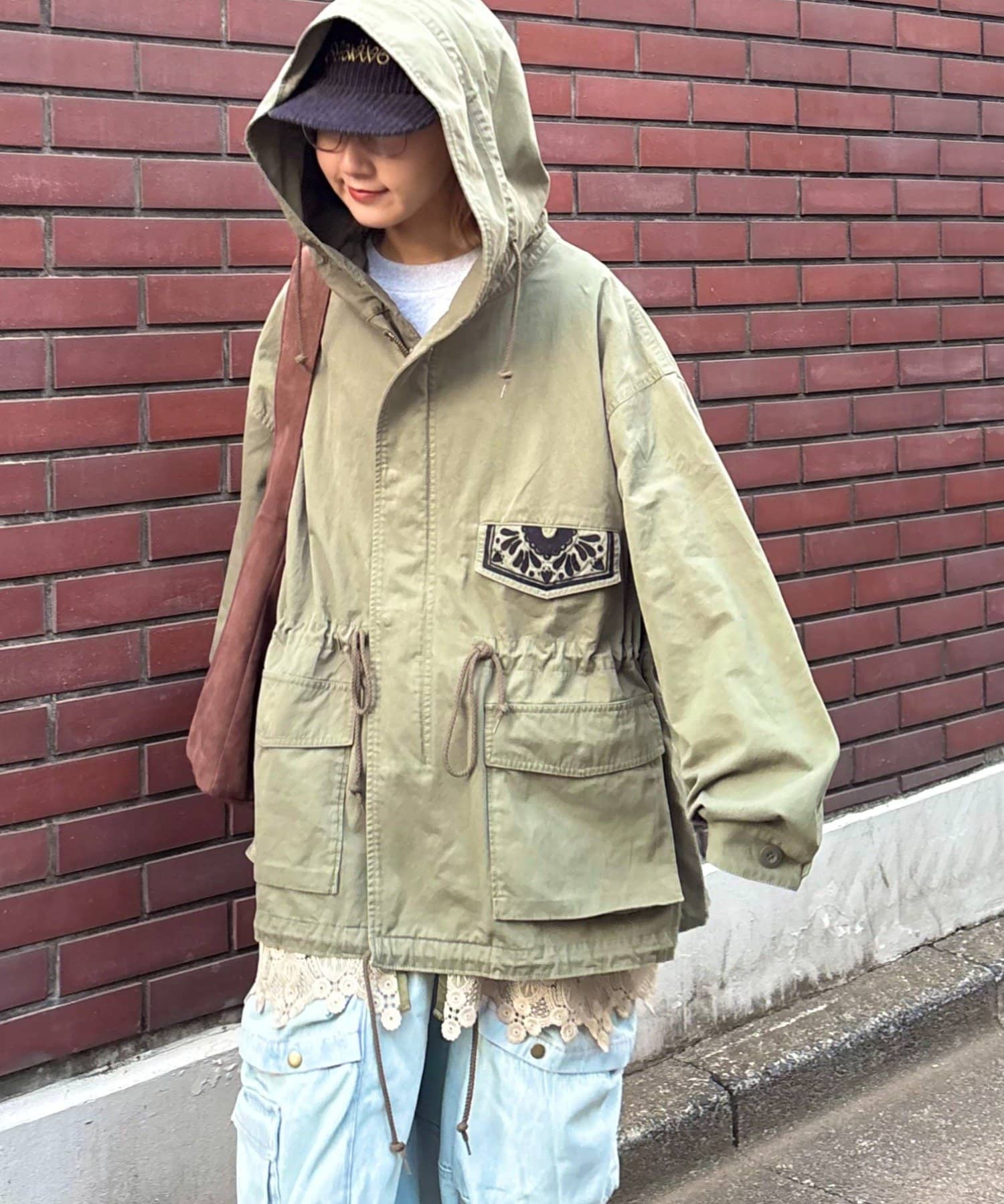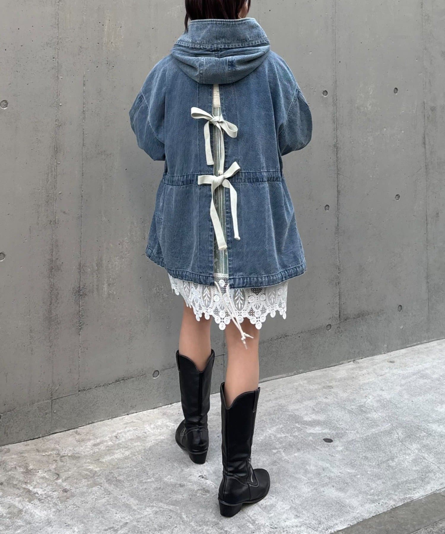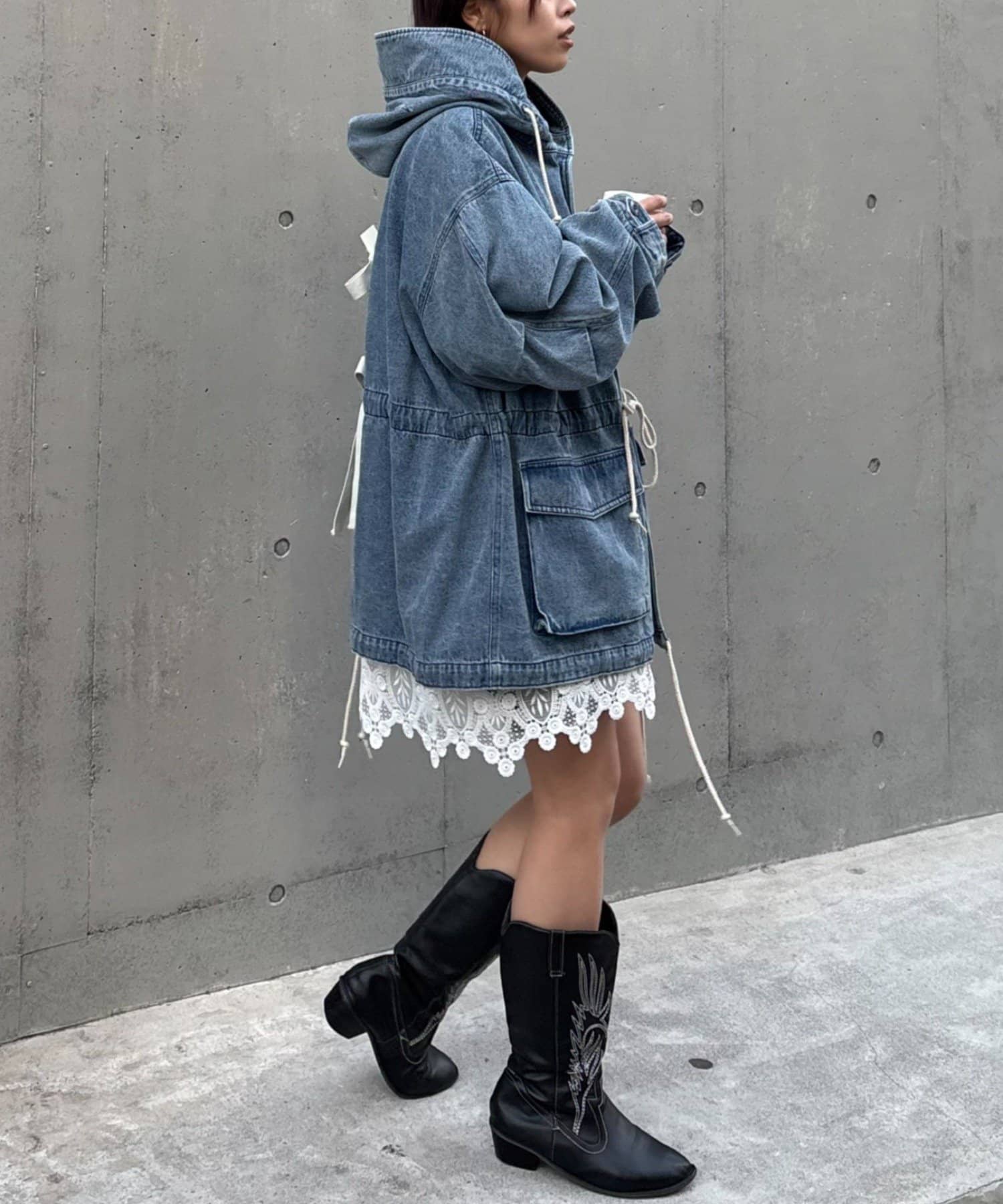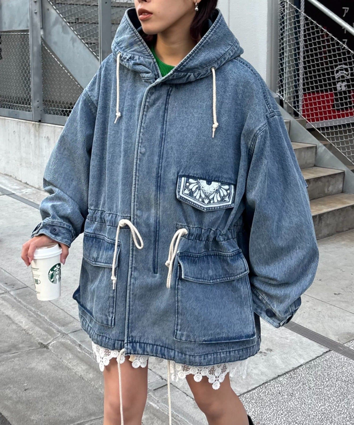 レースの部分使いが特徴的なモッズコート。