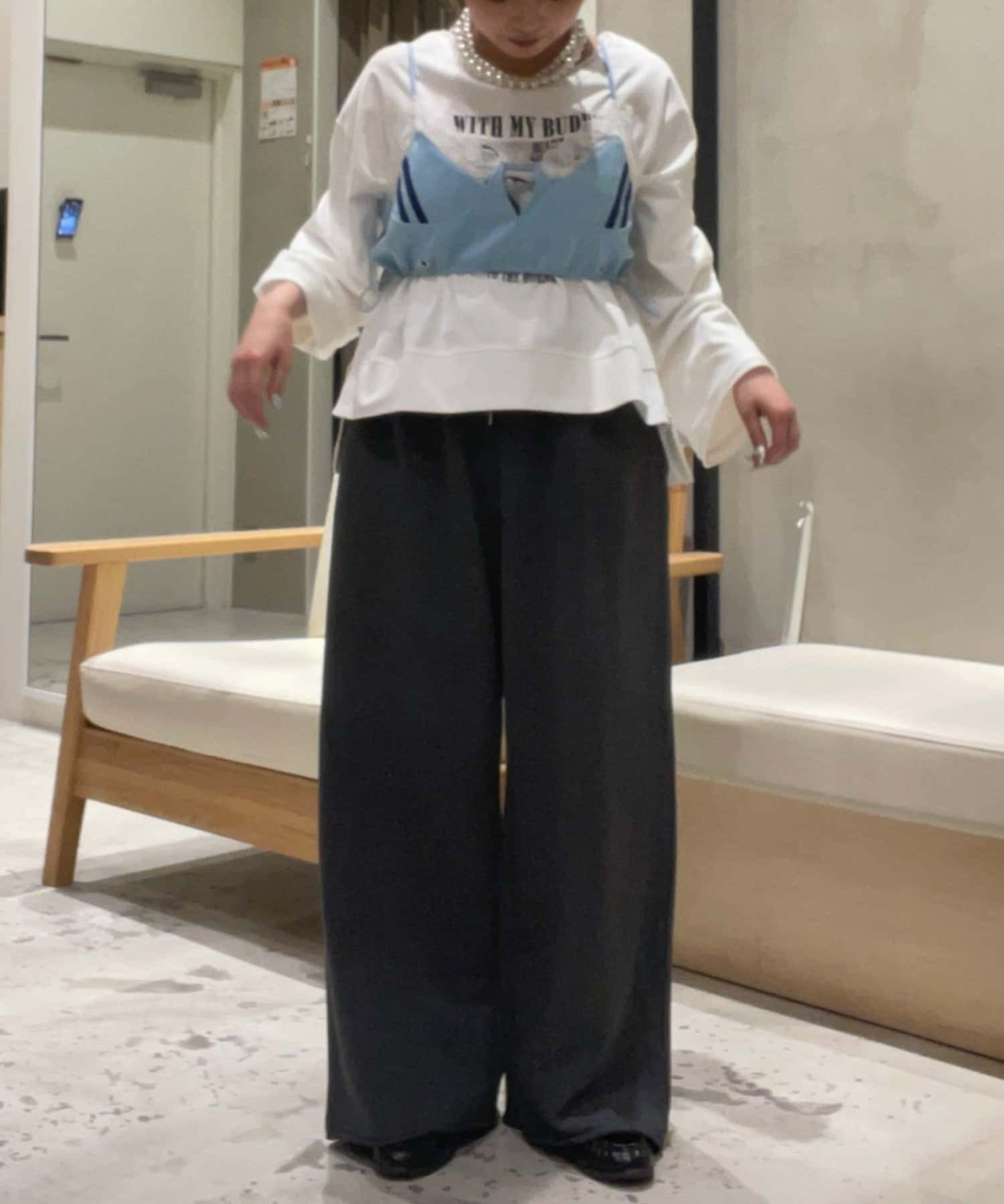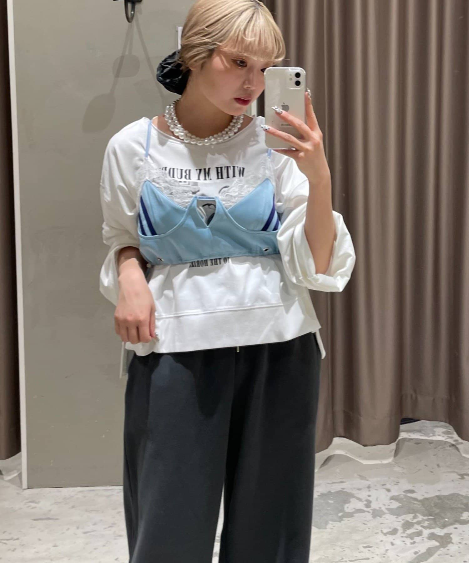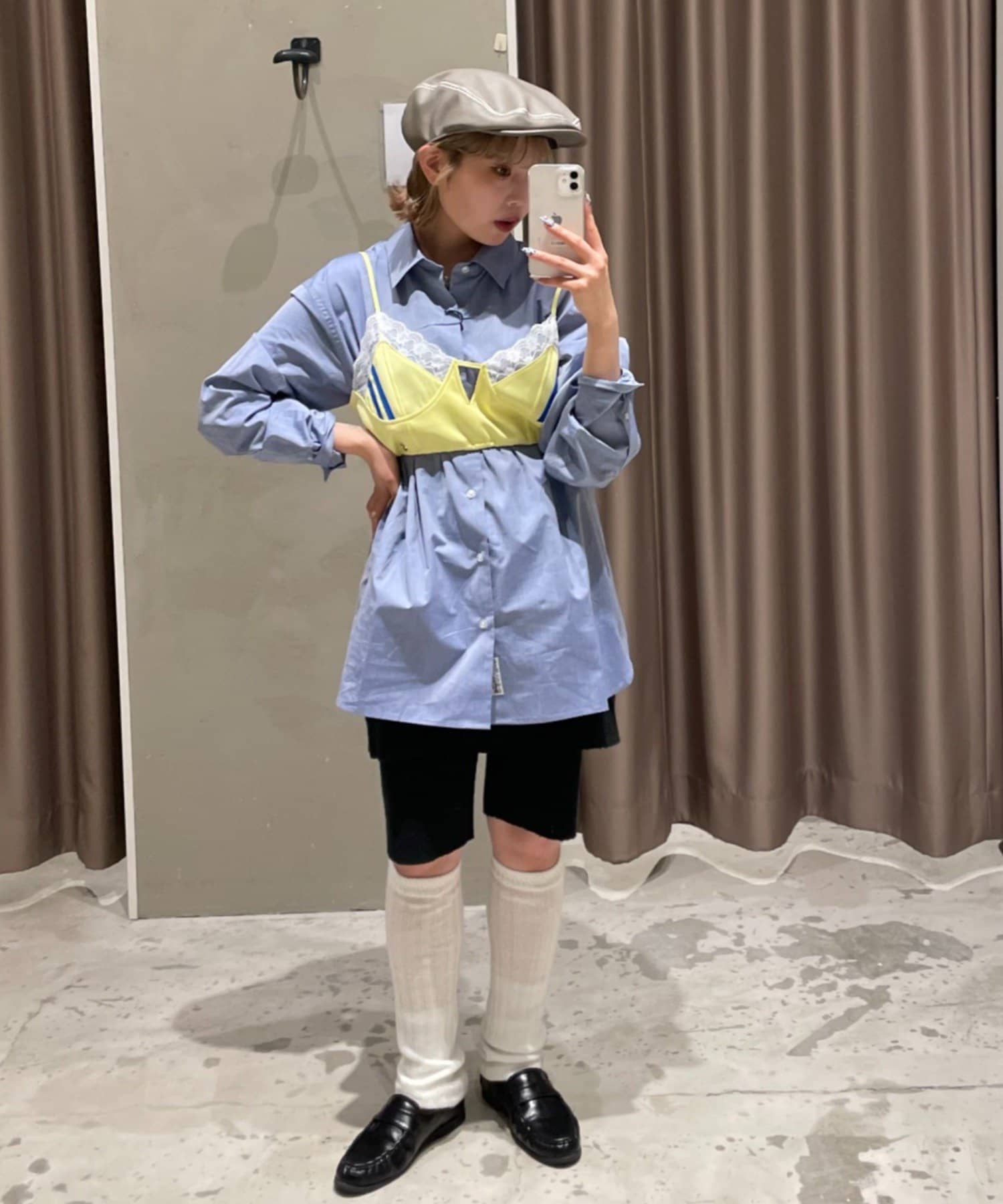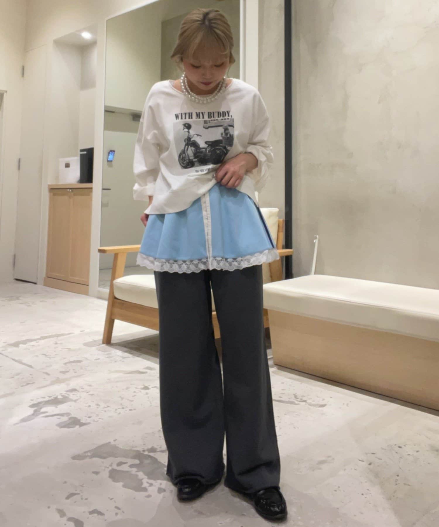 パンツにミニスカレイヤード風にあわせたり、ビスチェ風して付けたり、たすき掛けで一癖ある合わせでも可愛い♡