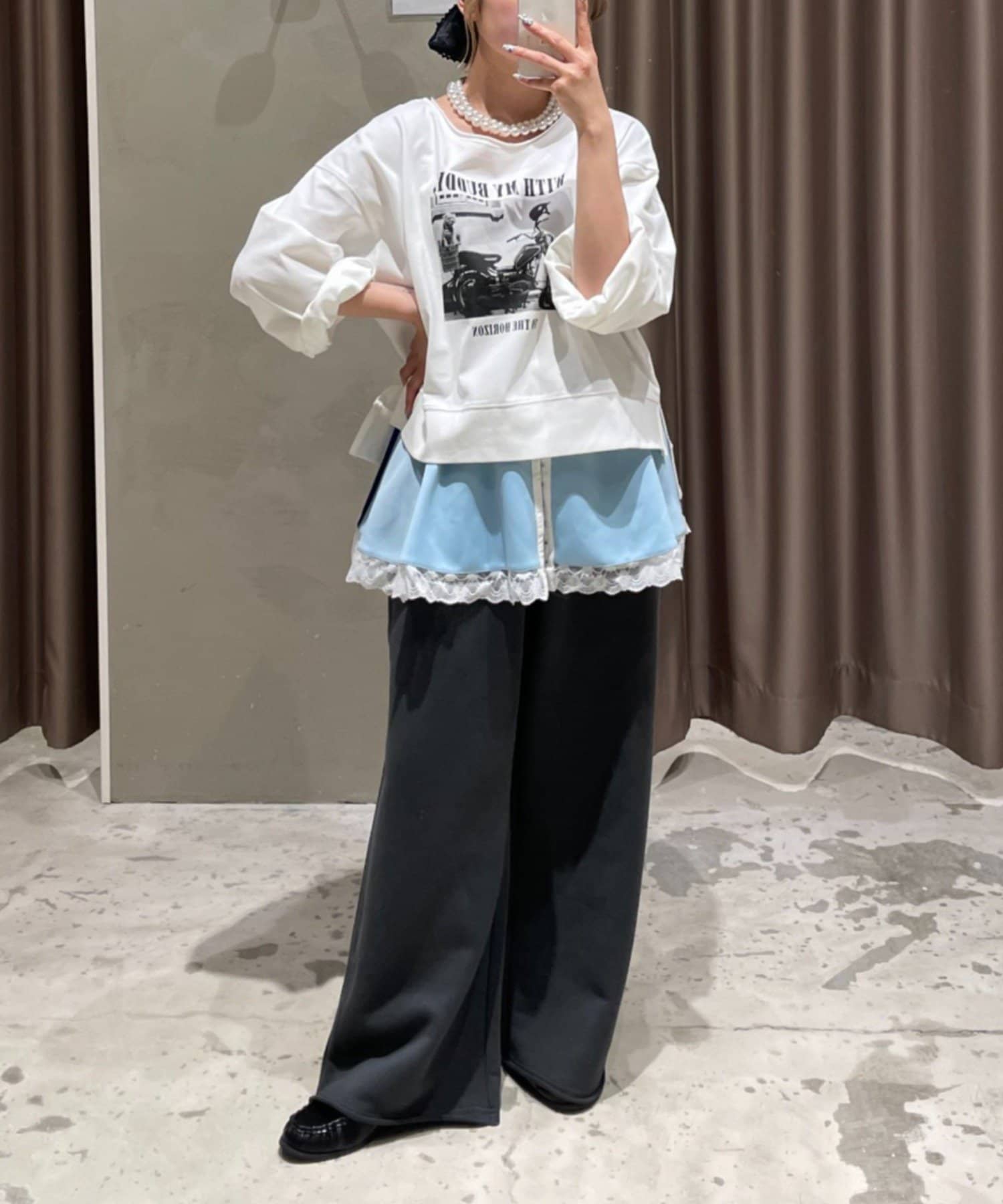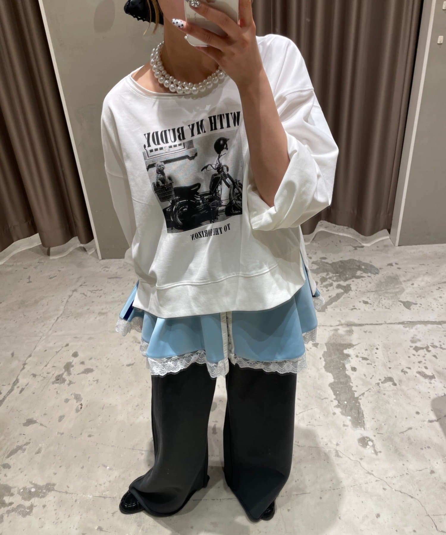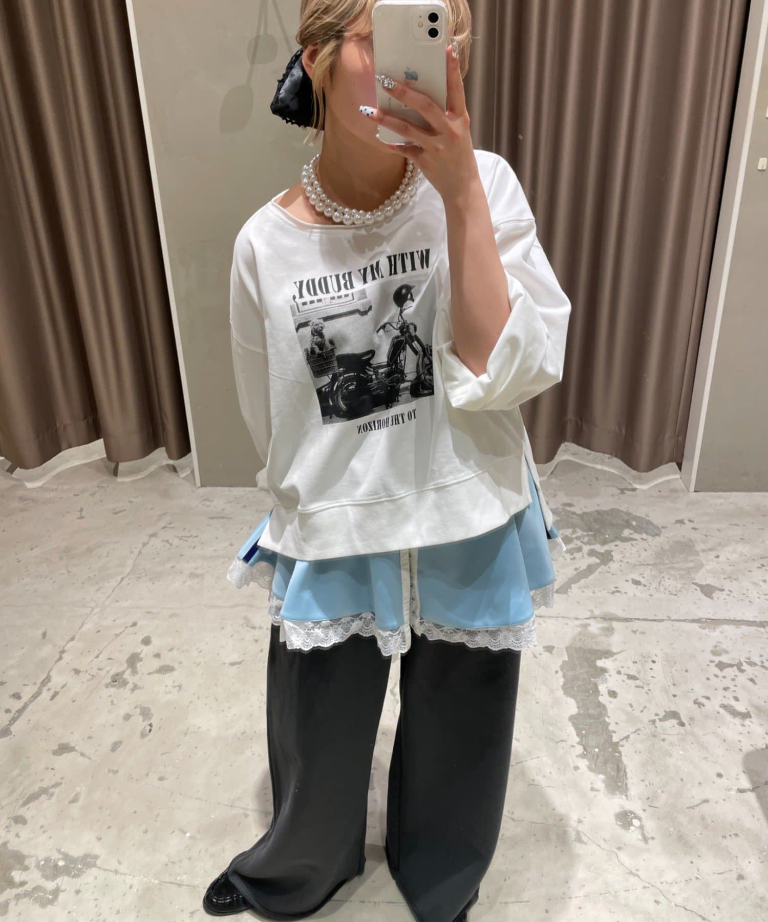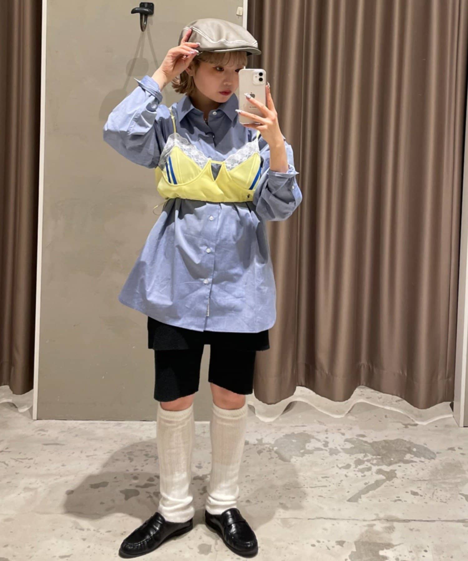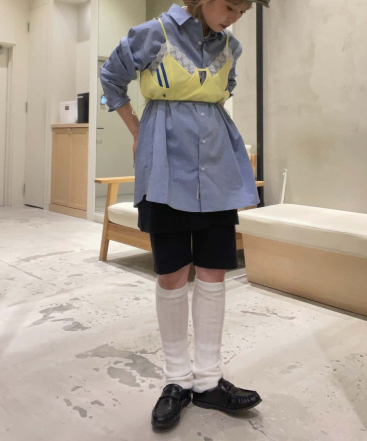 パンツにミニスカレイヤード風にあわせたり、ビスチェ風して付けたり、たすき掛けで一癖ある合わせでも可愛い♡