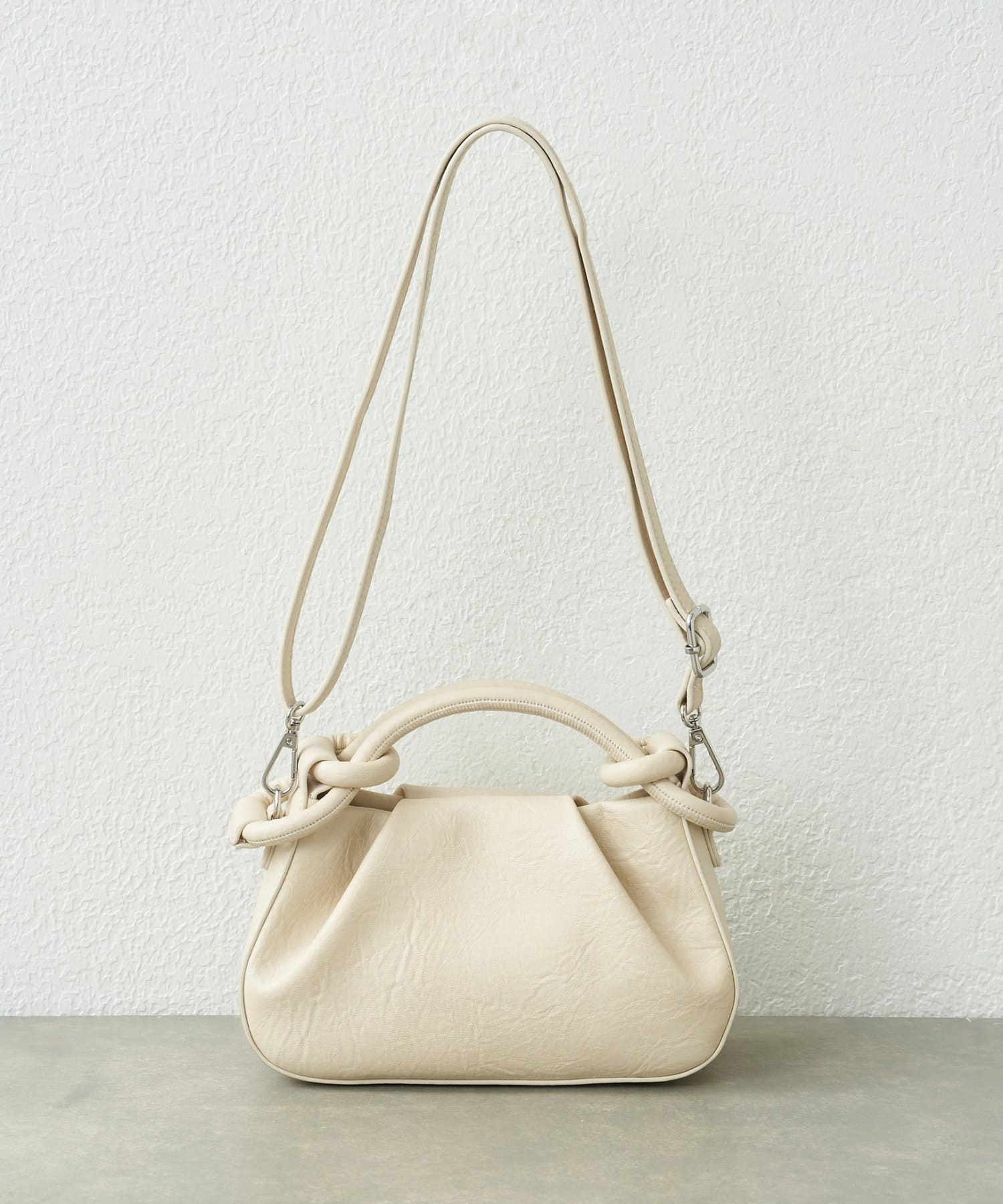 結びハンドル:持つだけでスタイリングのアクセントになる、こだわりの結びデザイン。他にはない個性を演出します。