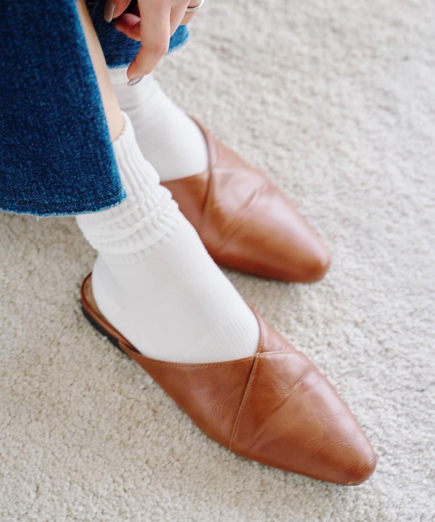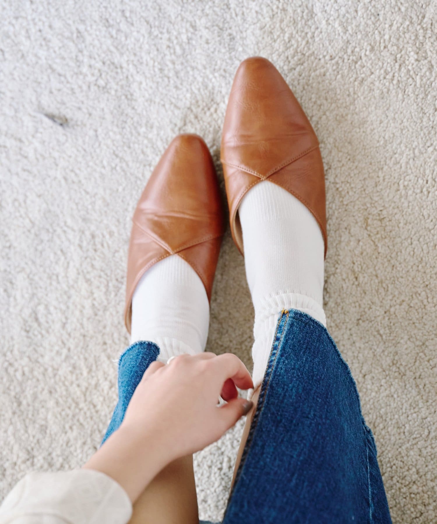 ・すっきりとしたポインテッドトゥ: 足先を美しく見せ、全体をシャープな印象に。