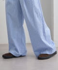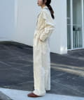 パンツ部分はワイドストレートシルエットで、脚のラインを拾いにくく、自然に体型をカバーします。
