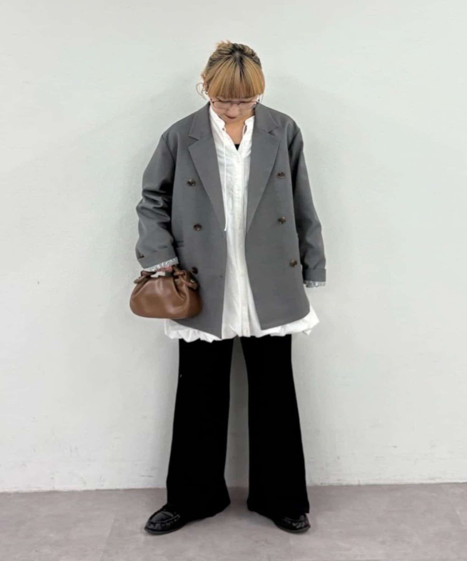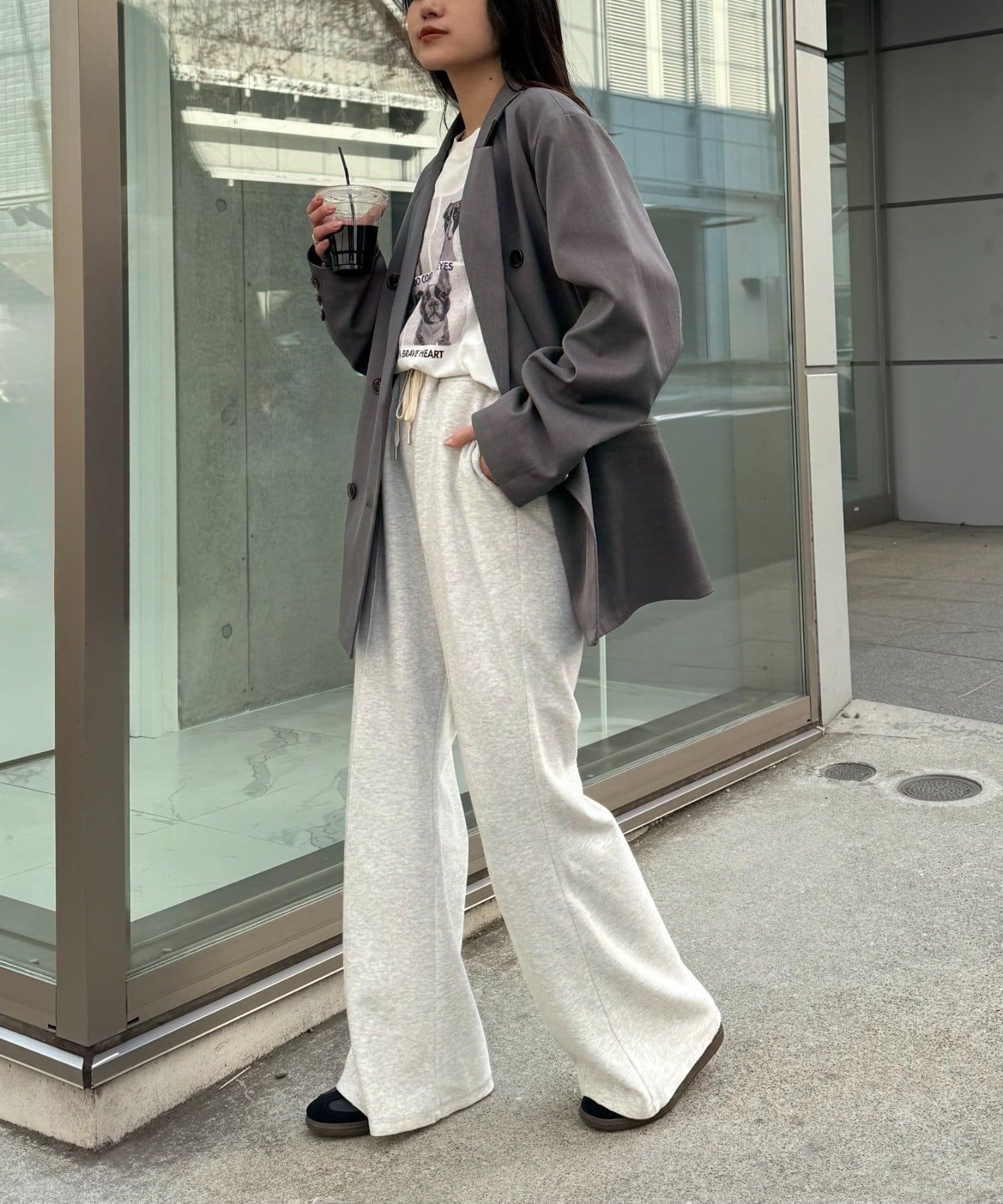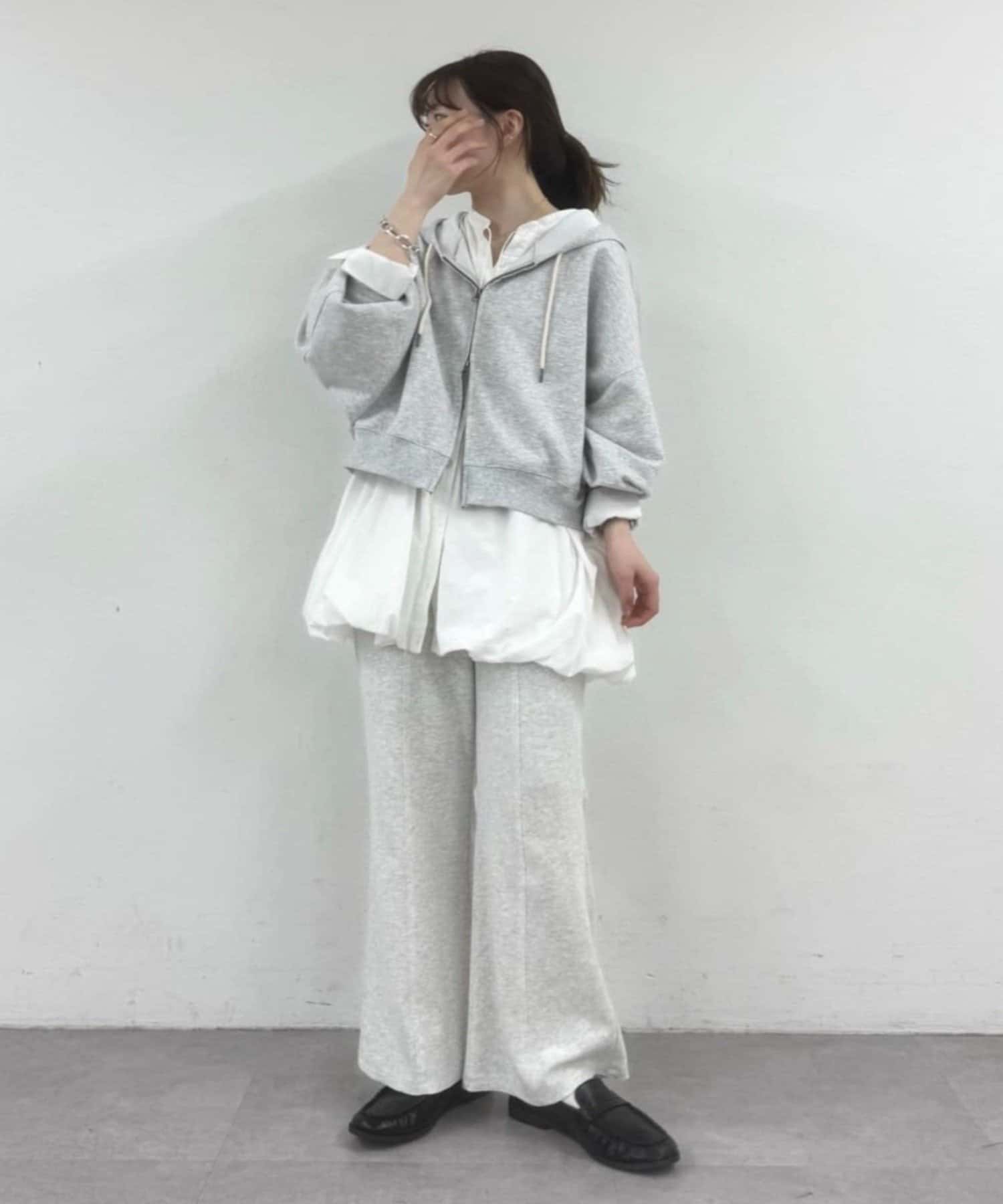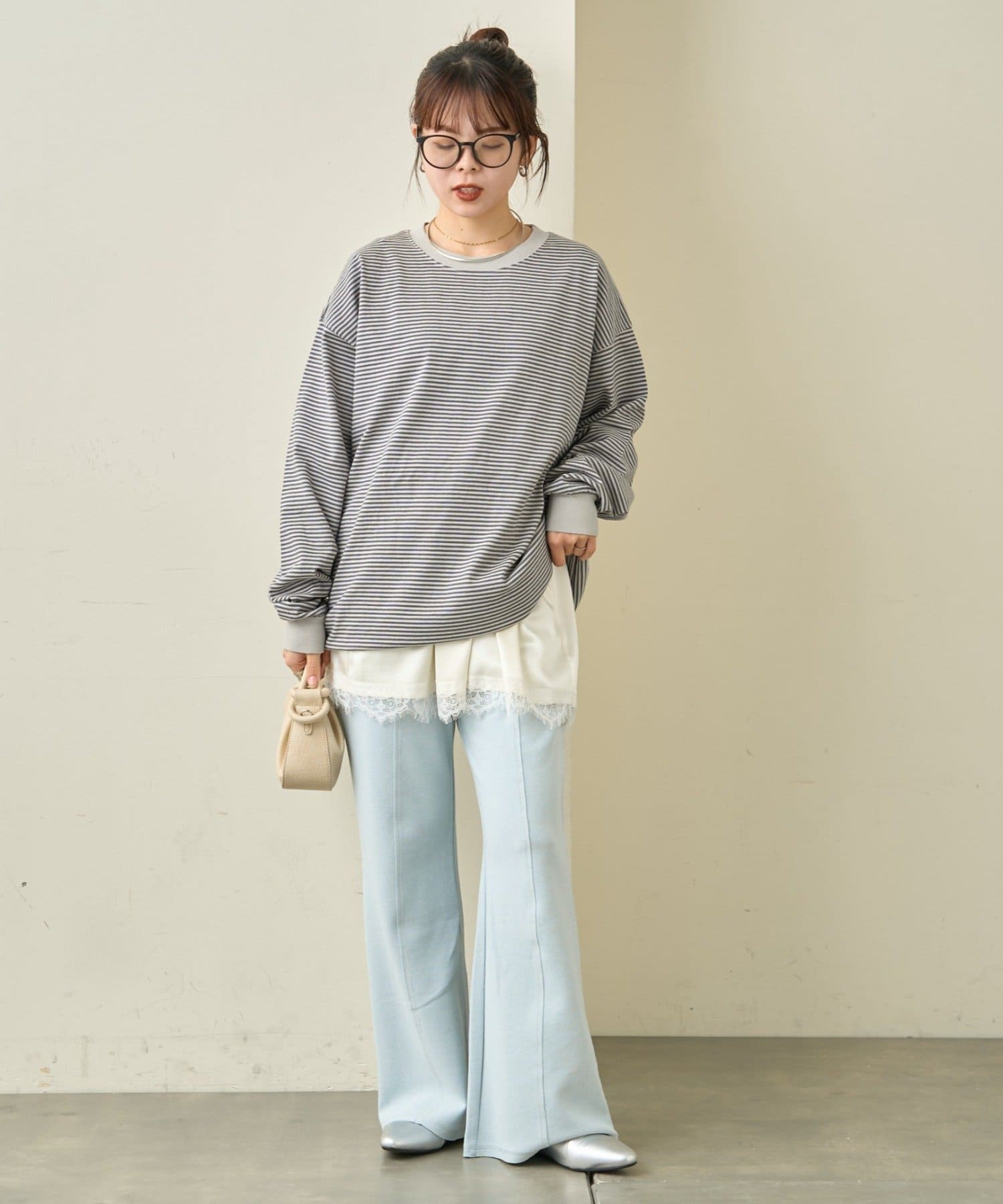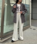 コンパクトなトップスを合わせると、フレアシルエットが引き立ちバランス良く着こなせます。オーバーサイズのスウェットやニットと合わせても、縦ラインのおかげですっきり見えるのがポイントです。足元はスニーカーでラフに、パンプスやブーツを合わせればきれいめな印象にも仕上がります。トップスをインすることで、ウエストまわりがすっきりしスタイルアップ効果が期待できます。