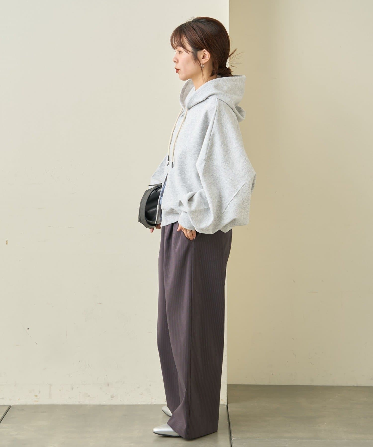 フロントにはタックを入れ、すとんと落ちるストレートなワイドシルエットに。