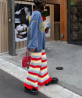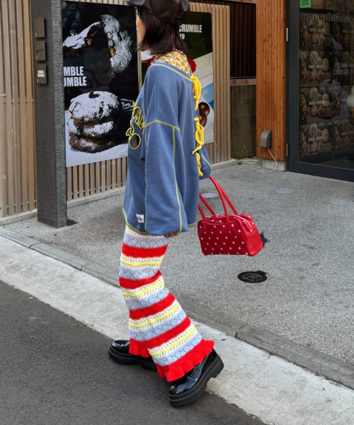 足元は、スニーカーやブーツなど、様々なアイテムと相性抜群。