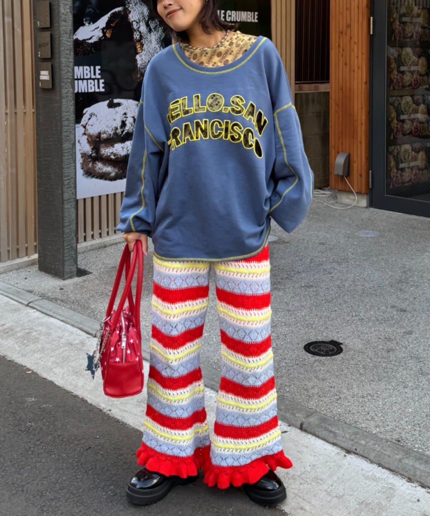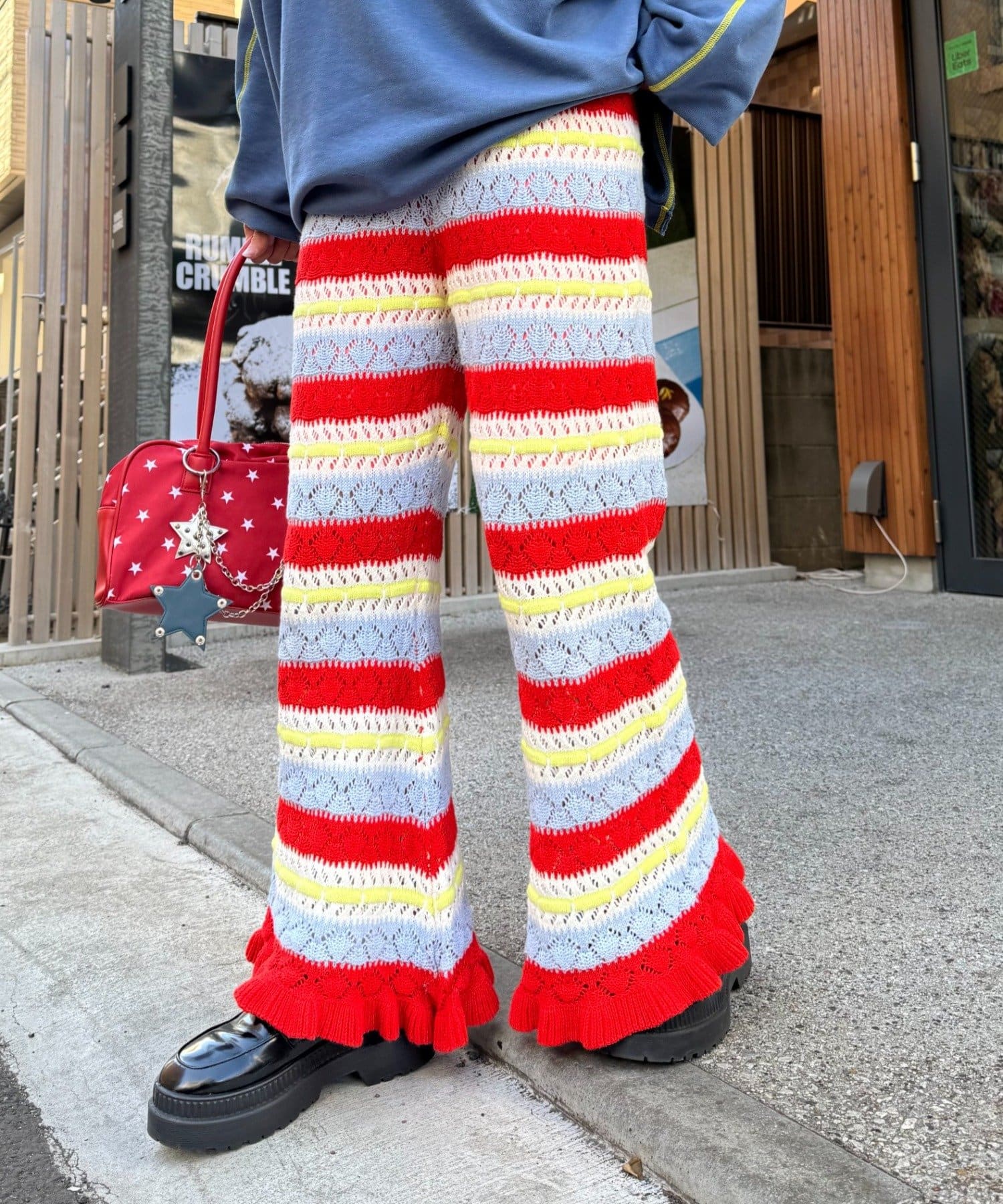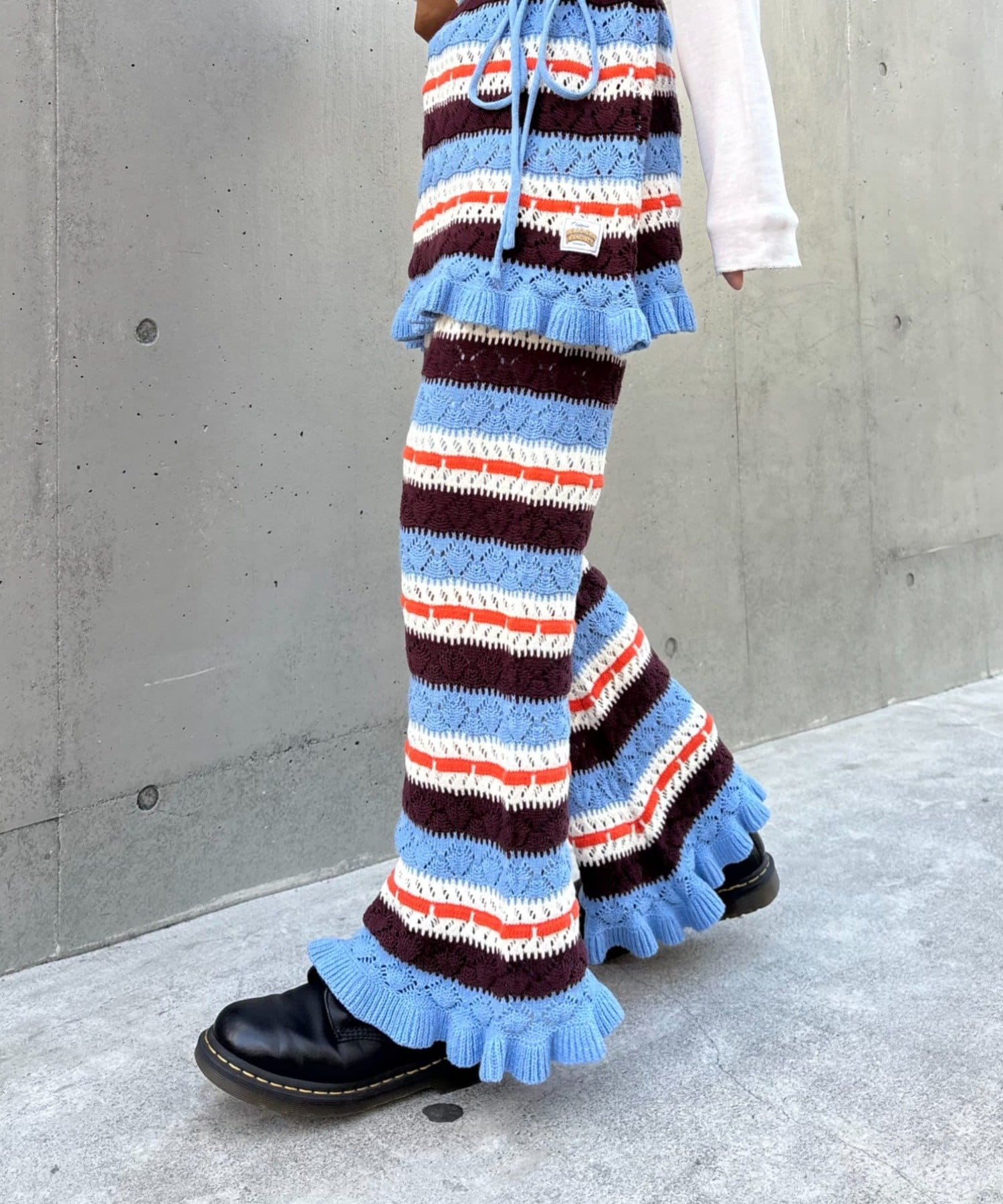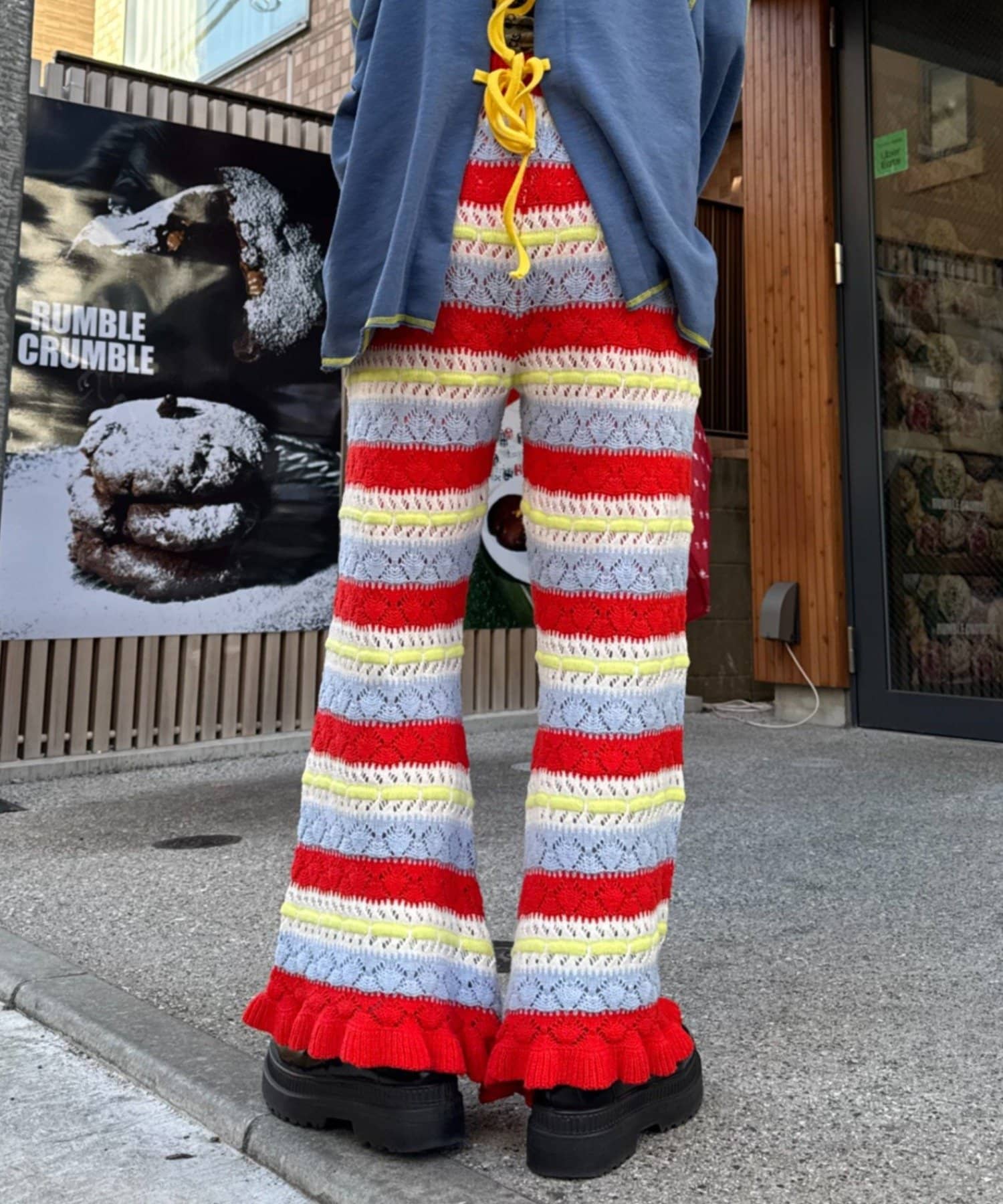 【HELLO.SANFRANCISCO/ハローサンフランシスコ】透かし柄ボーダーニットパンツ