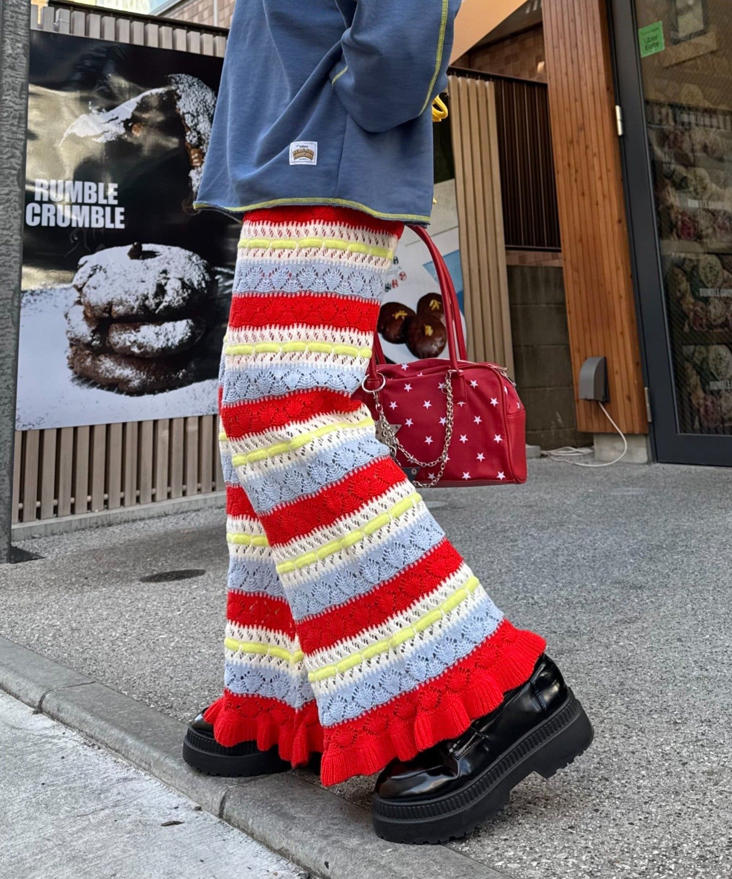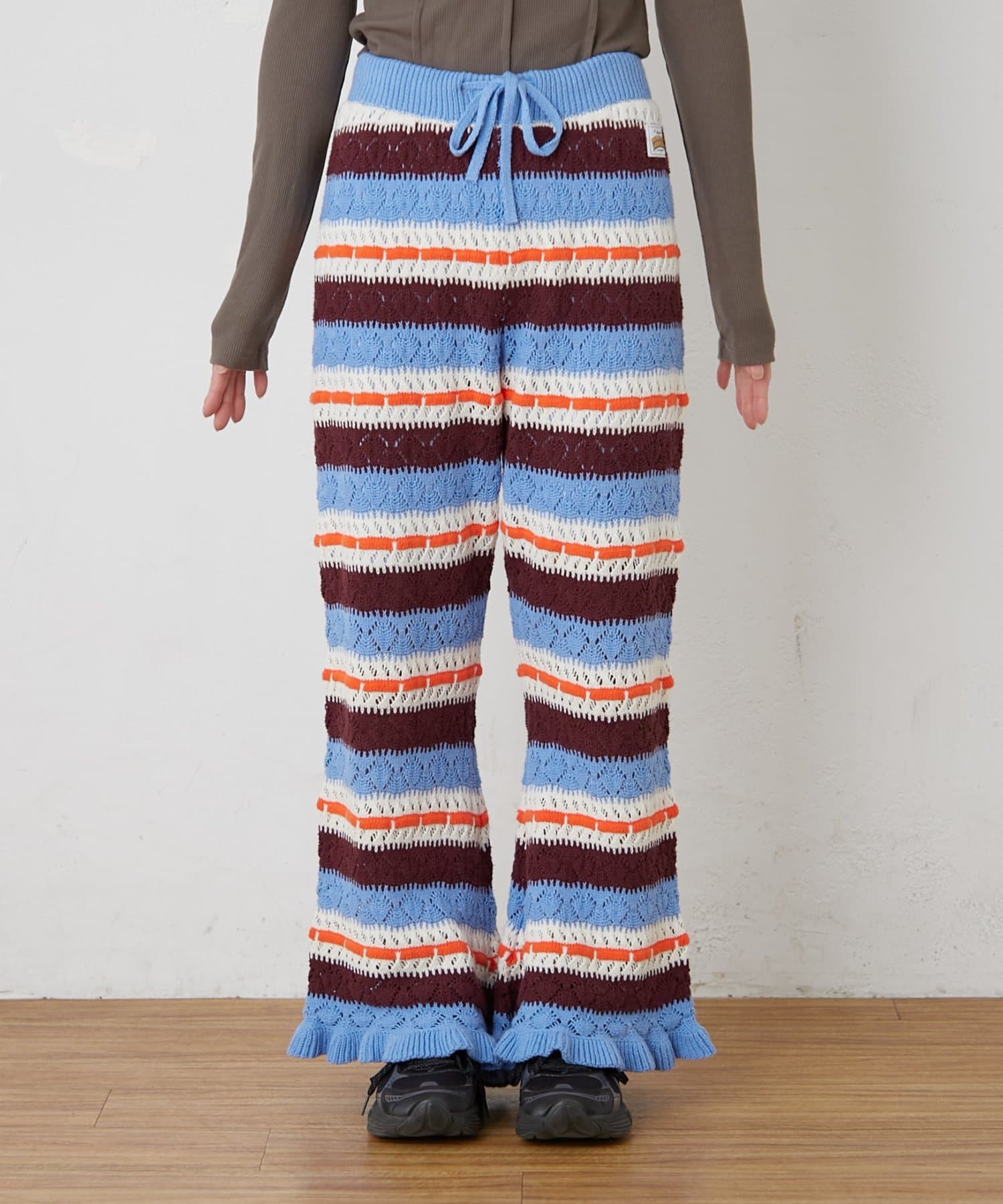 • CIAOPANIC TYPY(チャオパニックティピー) 【HELLO.SANFRANCISCO/ハローサンフランシスコ】透かし柄ボーダーニットパンツ