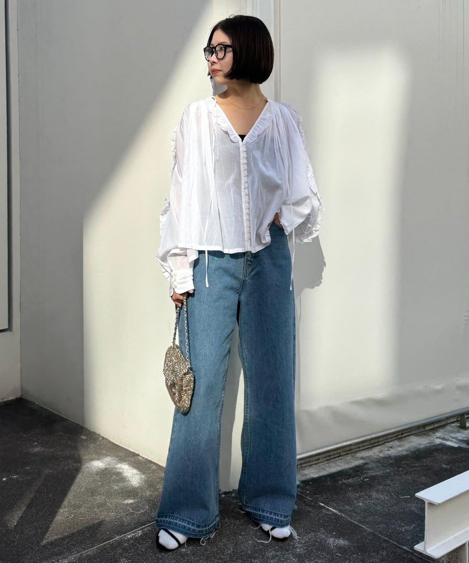 デニムと合わせれば甘さが抑えられ、透け感が映えるWILLOWらしい大人カジュアルな雰囲気に。