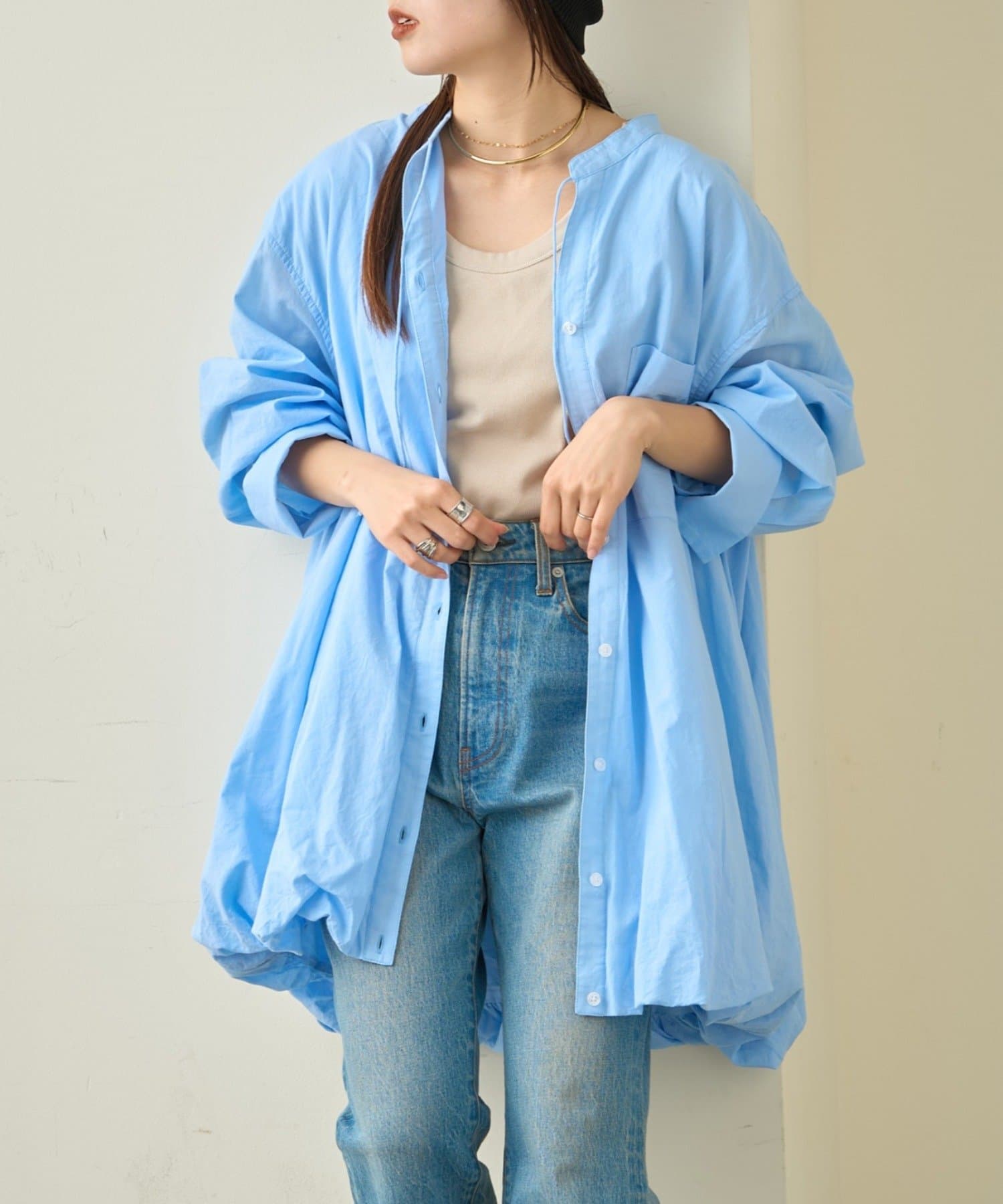 パンツと合わせた王道スタイルはもちろん、ロング丈を活かしてチュニックワンピース風に着こなすのもおすすめ。一枚で着映えし、忙しい朝でもコーデが決まる、ワードローブにあると頼れるアイテムです。