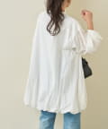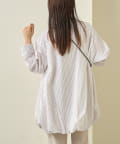 裾のバルーンシルエットが引き立ちバランス良くまとまります。足元はフラットシューズやスニーカーで抜け感を出すと、デイリー使いしやすい印象に。チュニックワンピ風に着る場合は、レギンスやナローパンツをレイヤードするのがおすすめです。紐を軽く結んでフェミニンに、あえて垂らしてラフにと、首元のアレンジで雰囲気を変えられます。