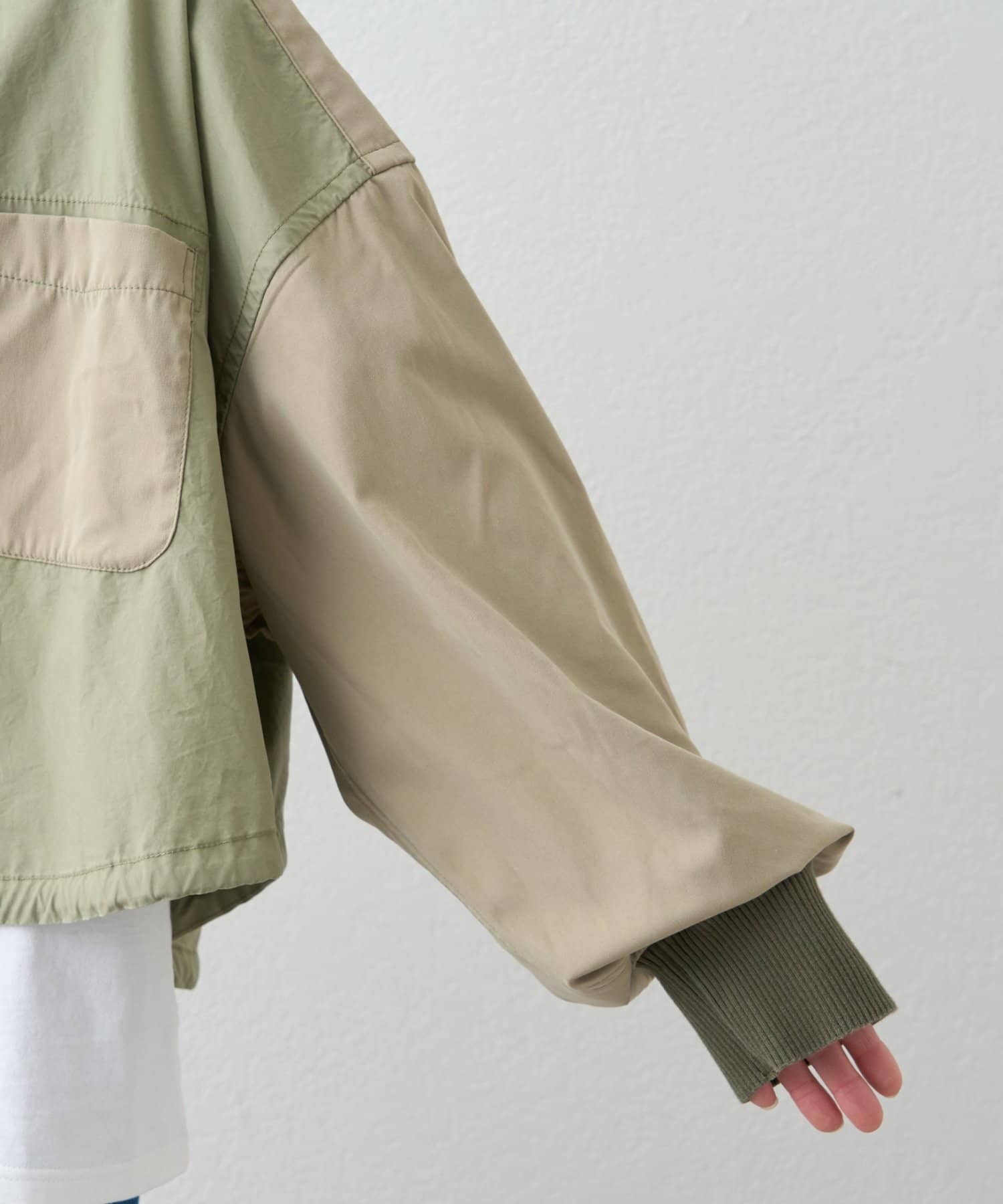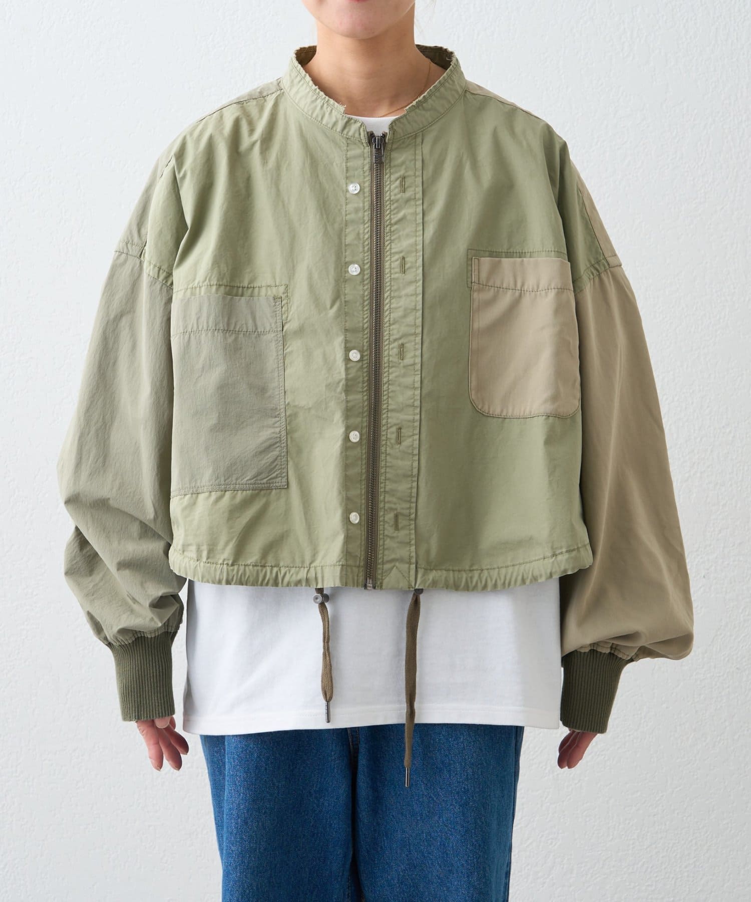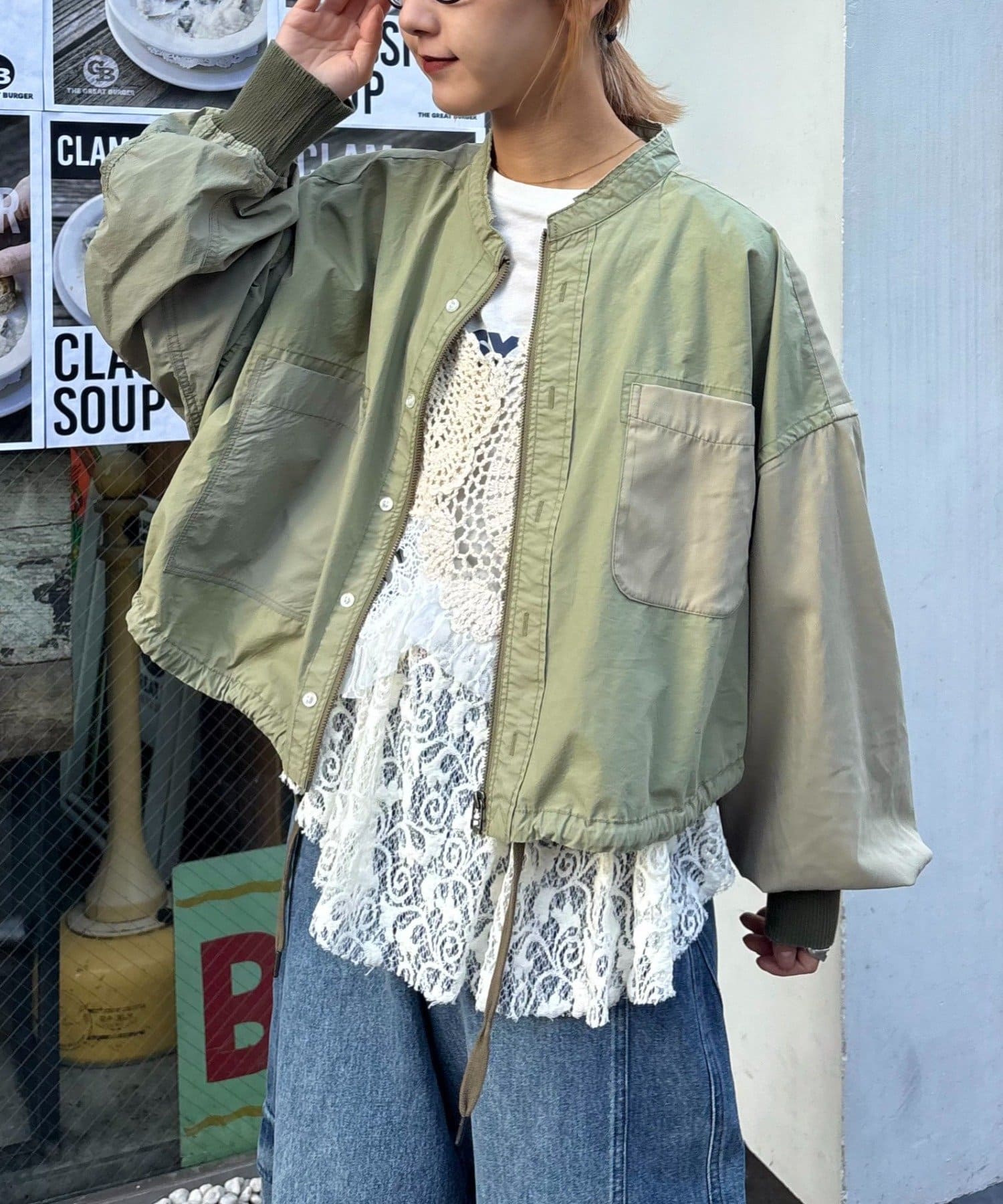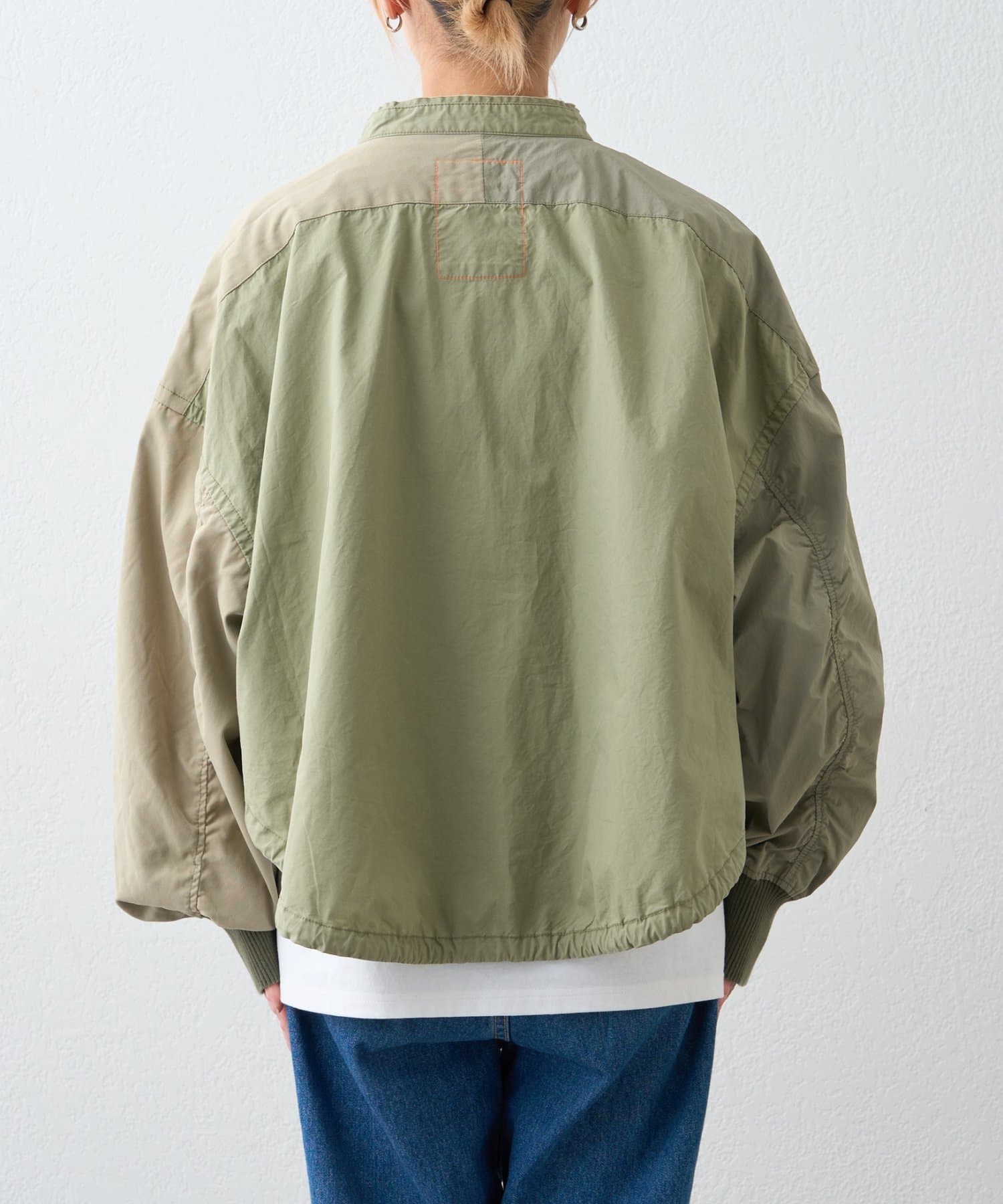 異素材切り替えが目を引く、デザイン性の高いブルゾン。