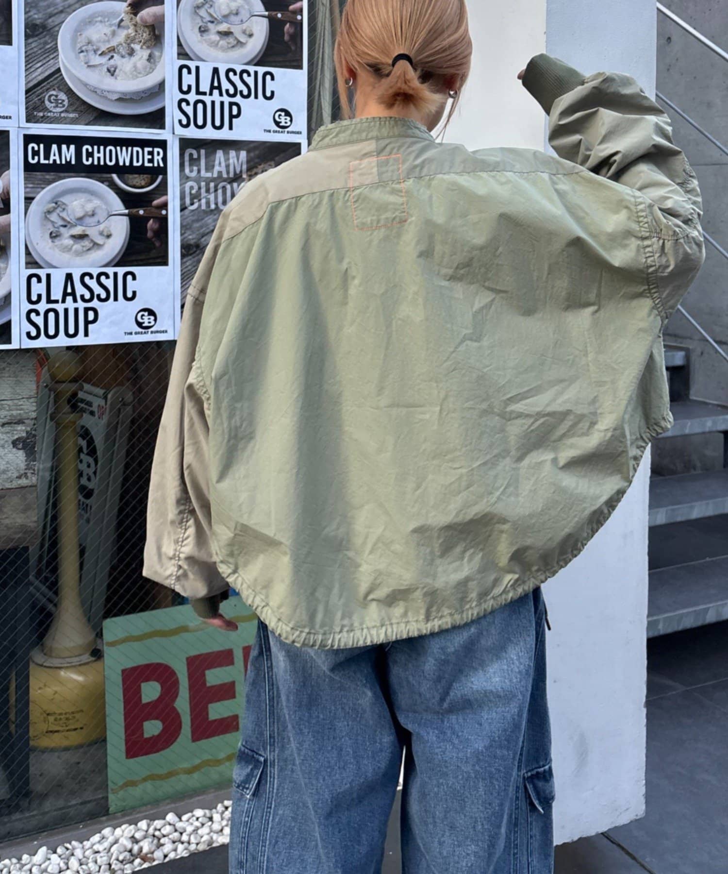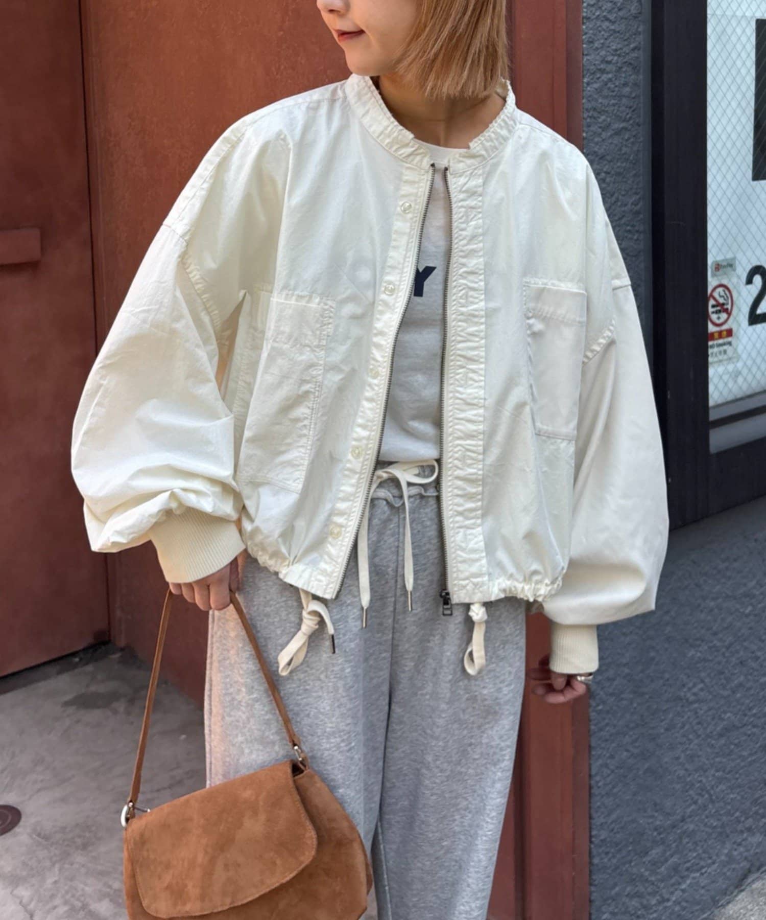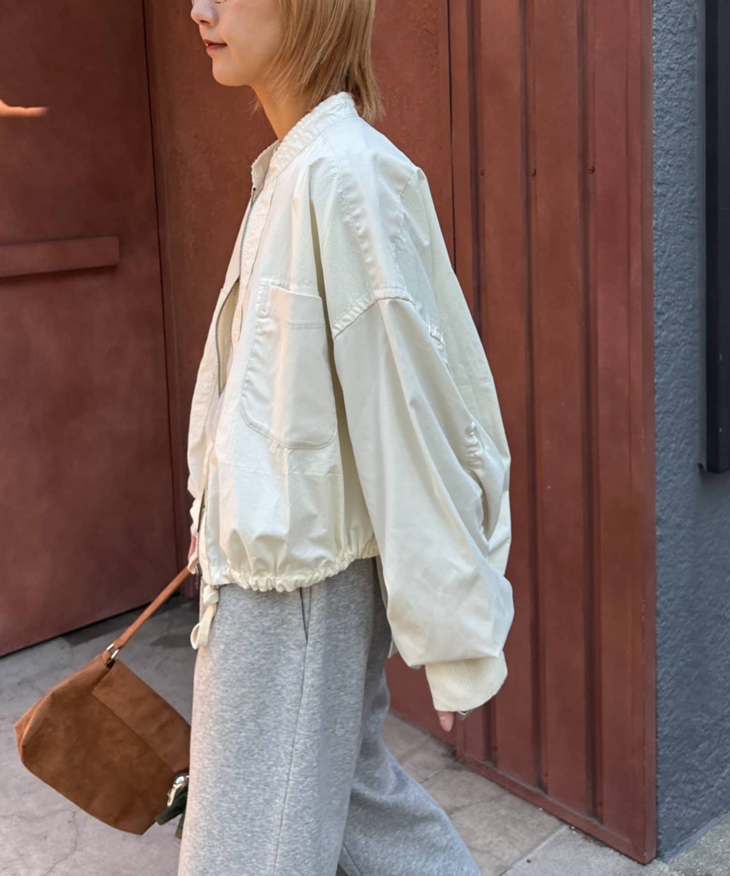 異素材切り替えが目を引く、デザイン性の高いブルゾン。