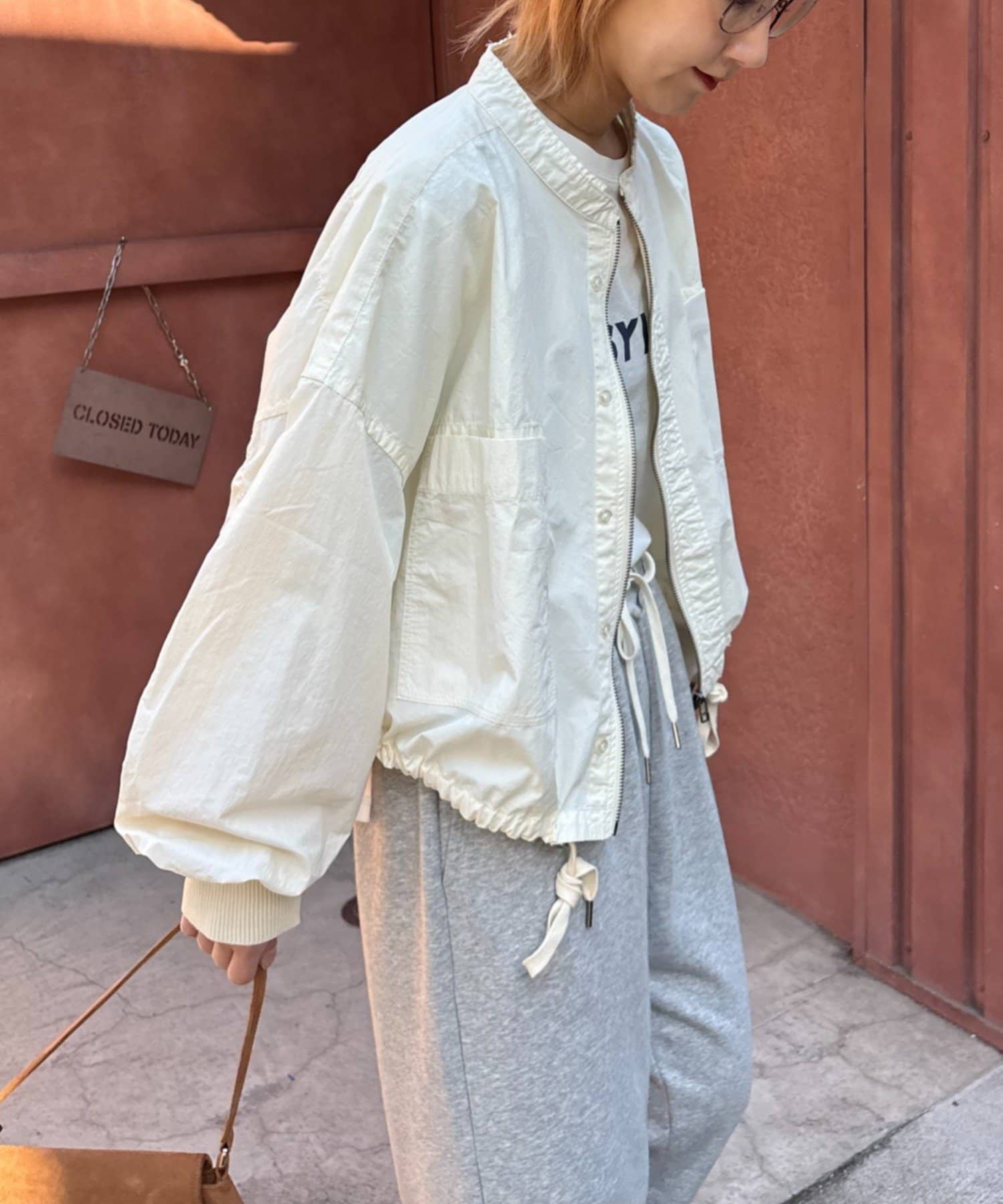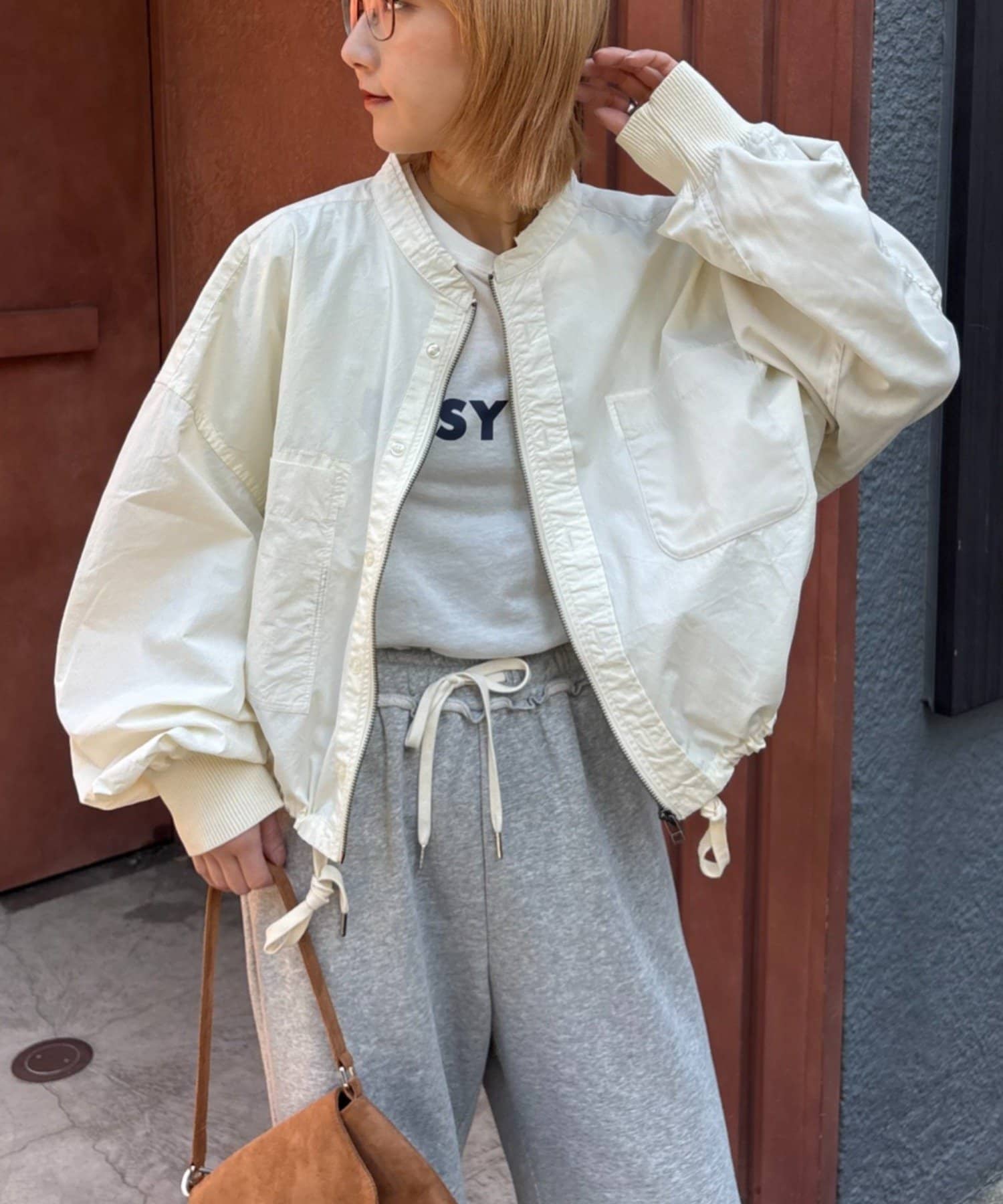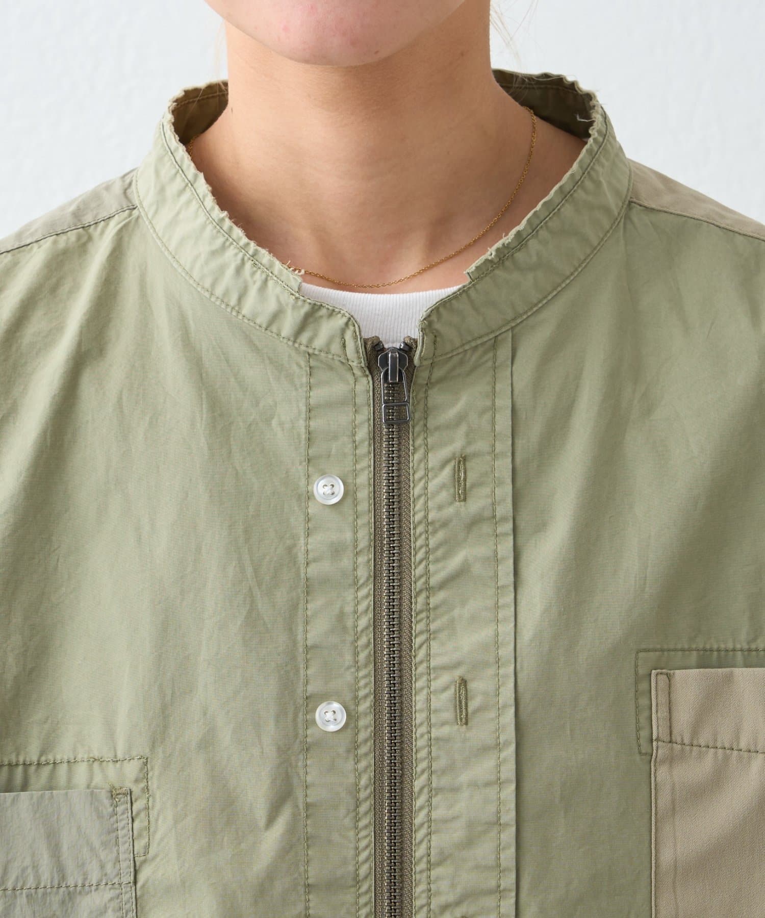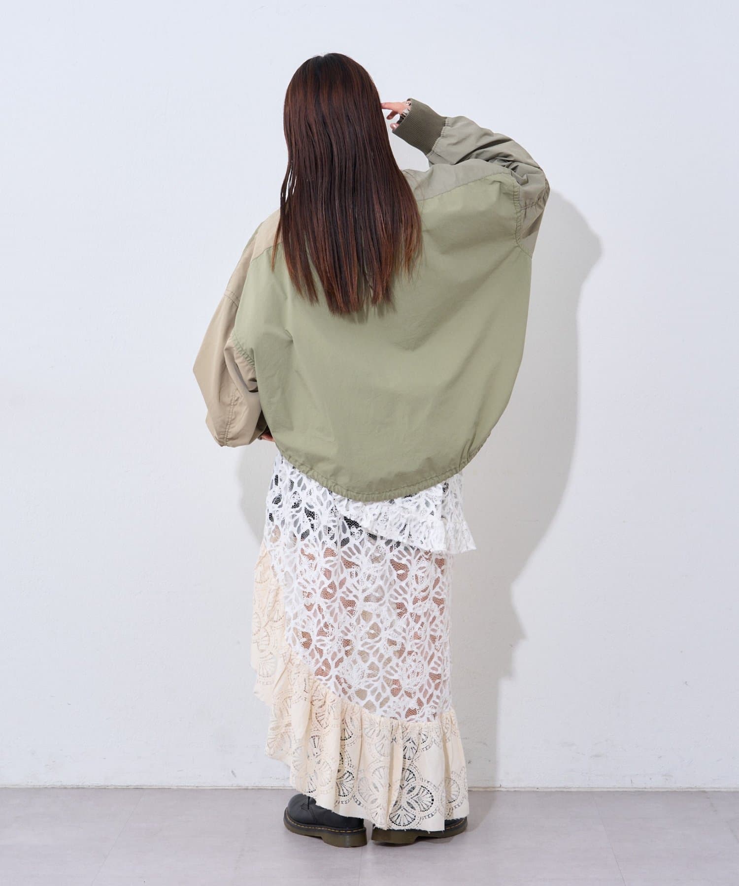 異素材切り替えが目を引く、デザイン性の高いブルゾン。
