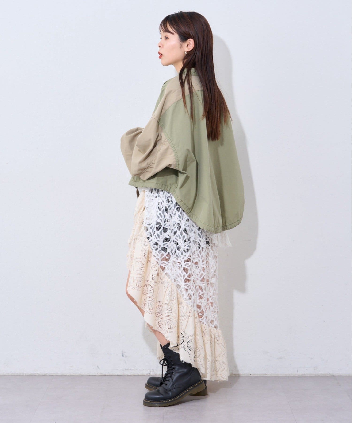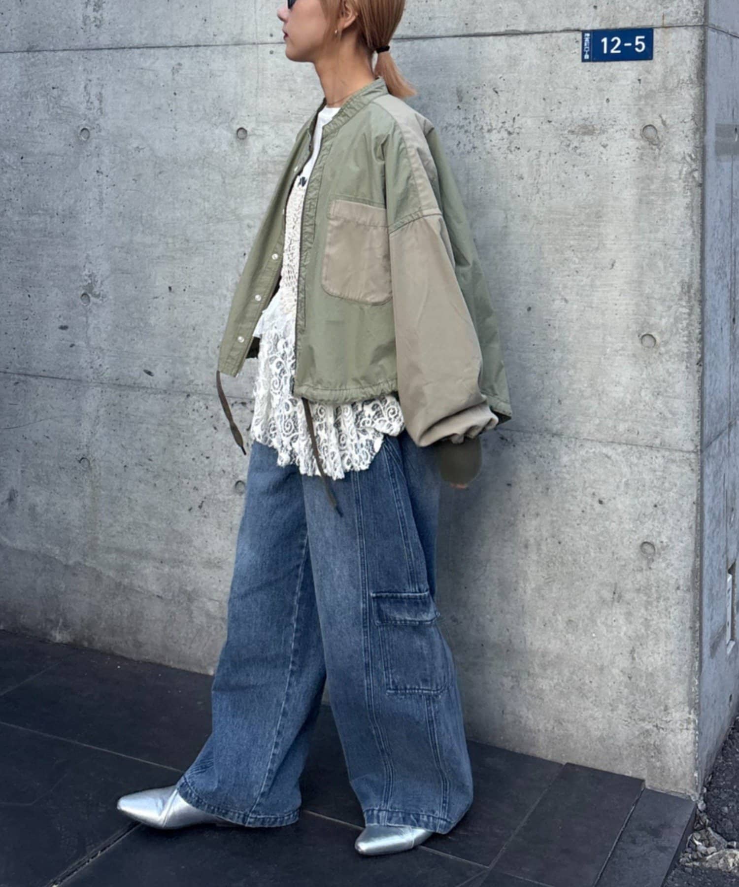 異素材切り替えが目を引く、デザイン性の高い春アウター