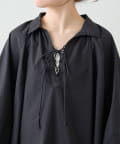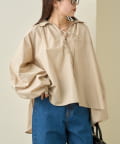 綿100%ならではのやさしい肌触りと、自然な風合いが魅力のデザインブラウス。襟元には細かくギャザーを施し、顔まわりをふんわりと見せてくれる立体感のある仕上がりです。首元はきちんと感のあるレギュラーカラーをベースに、スキッパー仕様で程よく抜けをプラス。レースアップデザインがコーディネートのアクセントになり、シンプルながらも印象に残る一枚です。