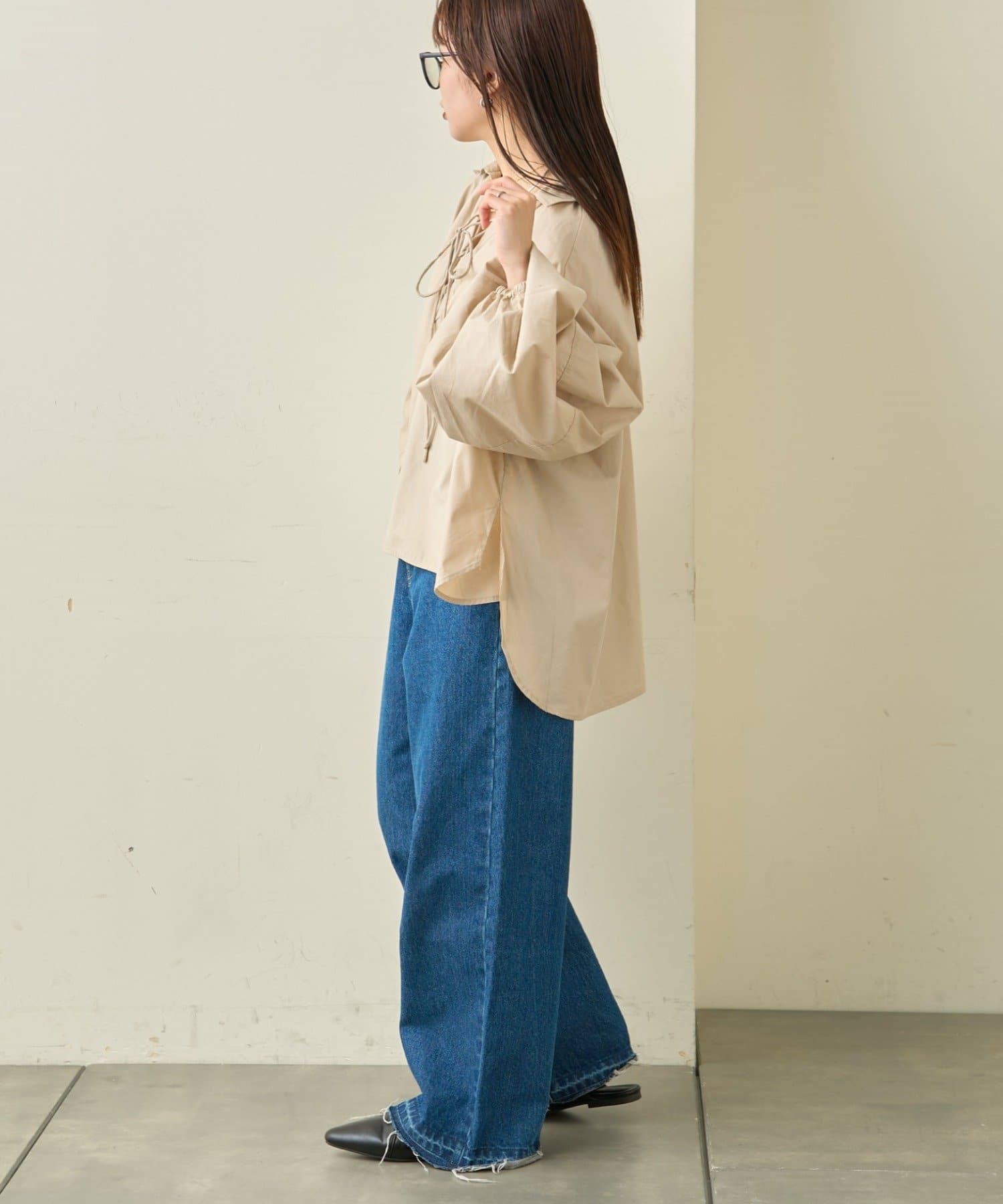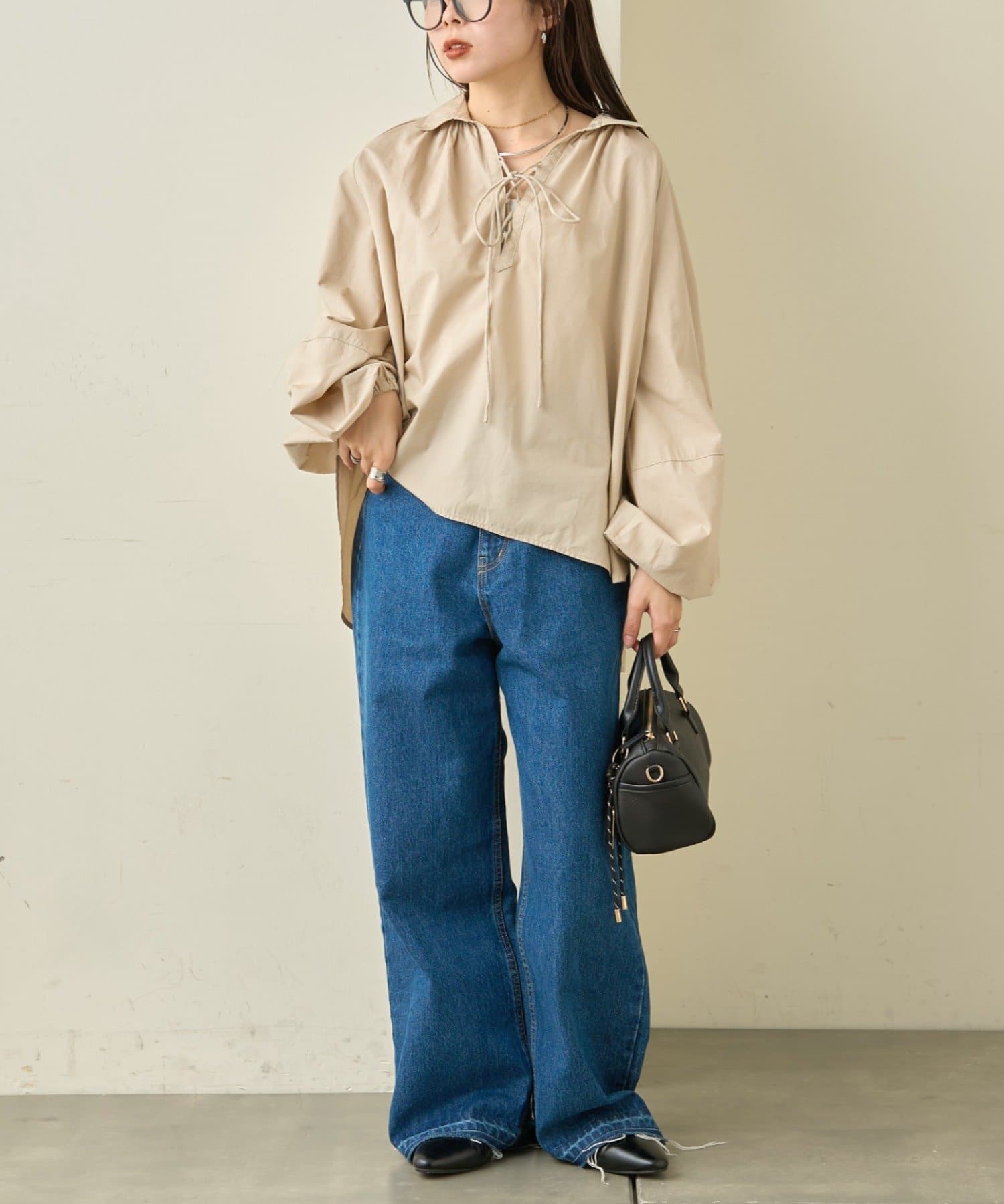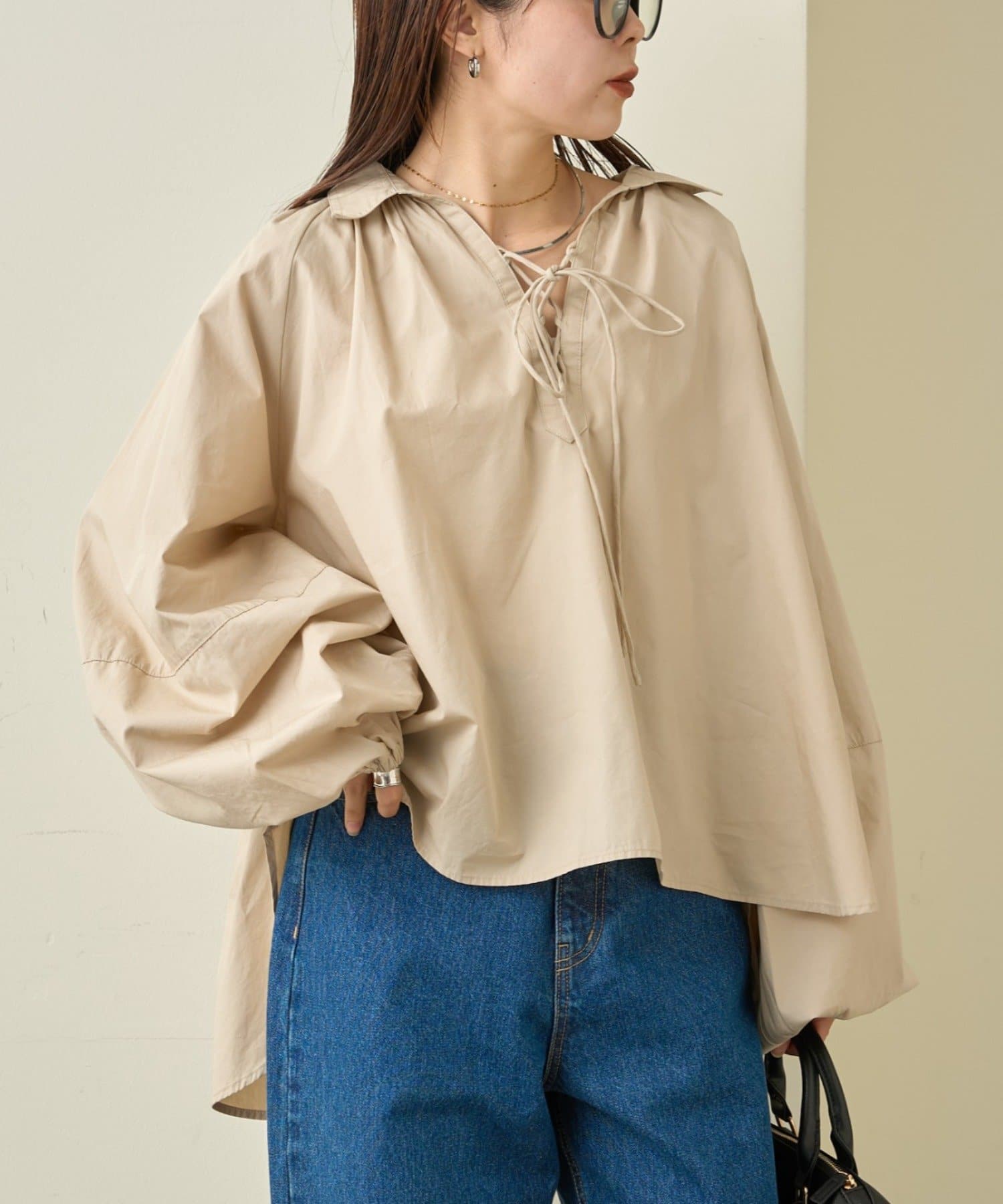 【アップデート/腰回りカバー】レースアップボリュームスリーブブラウス