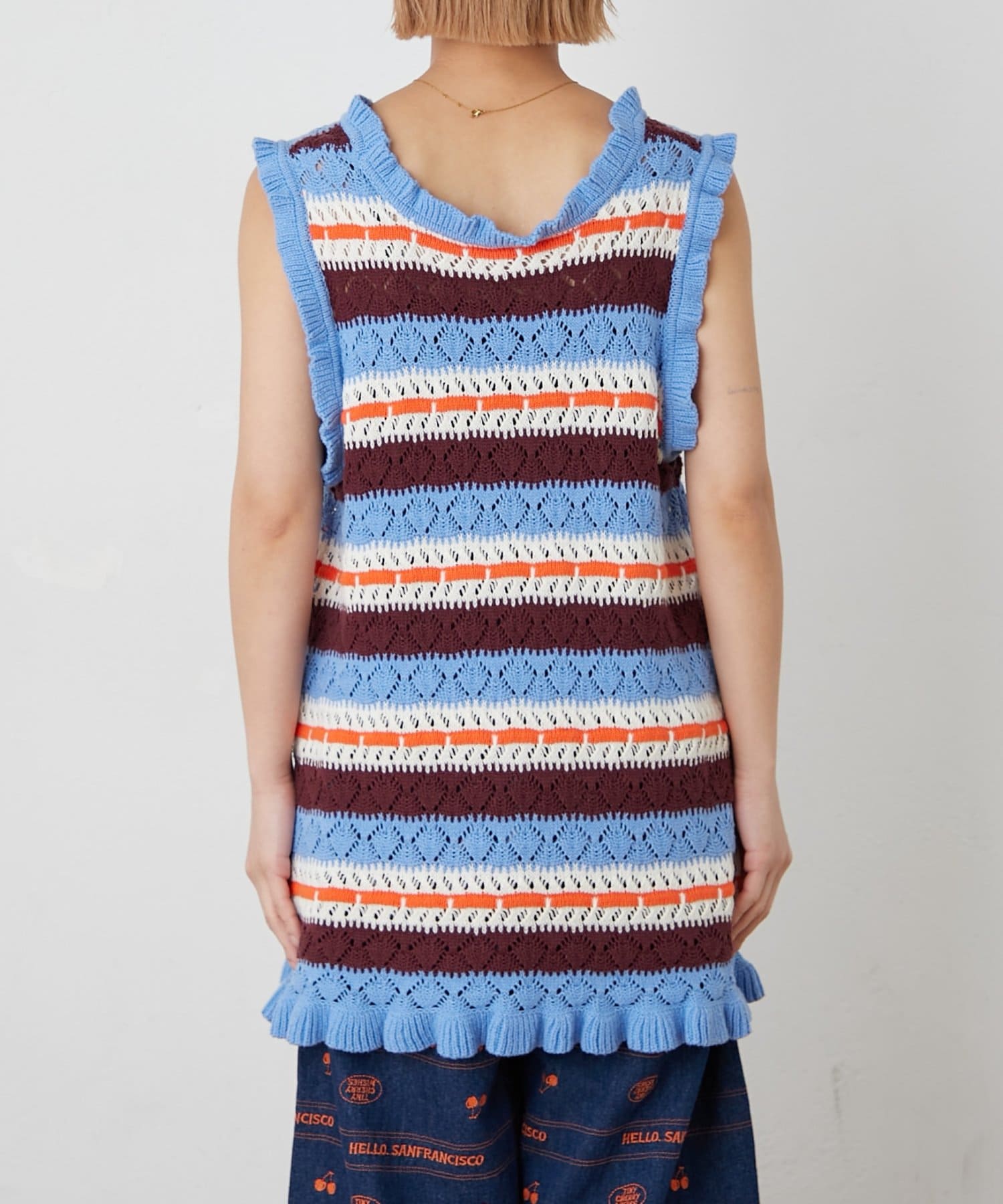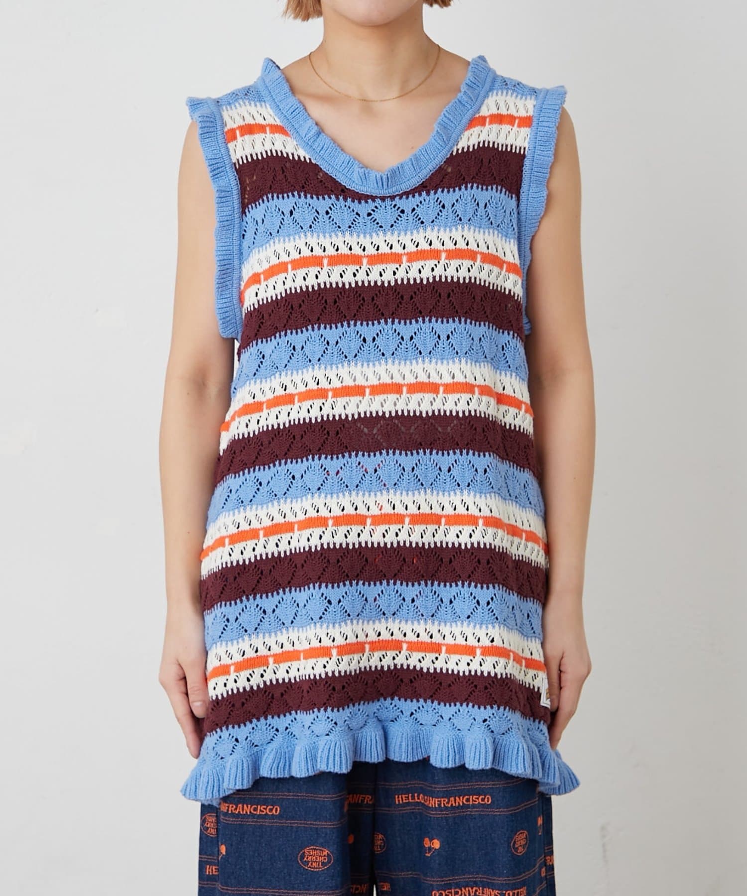 【HELLO.SANFRANCISCO/ハローサンフランシスコ】透かし柄ボーダーニットチュニック
