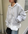 開け具合を調節できるダブルジップは、シャツやロンTをレイヤードで見せるスタイリングも可能!