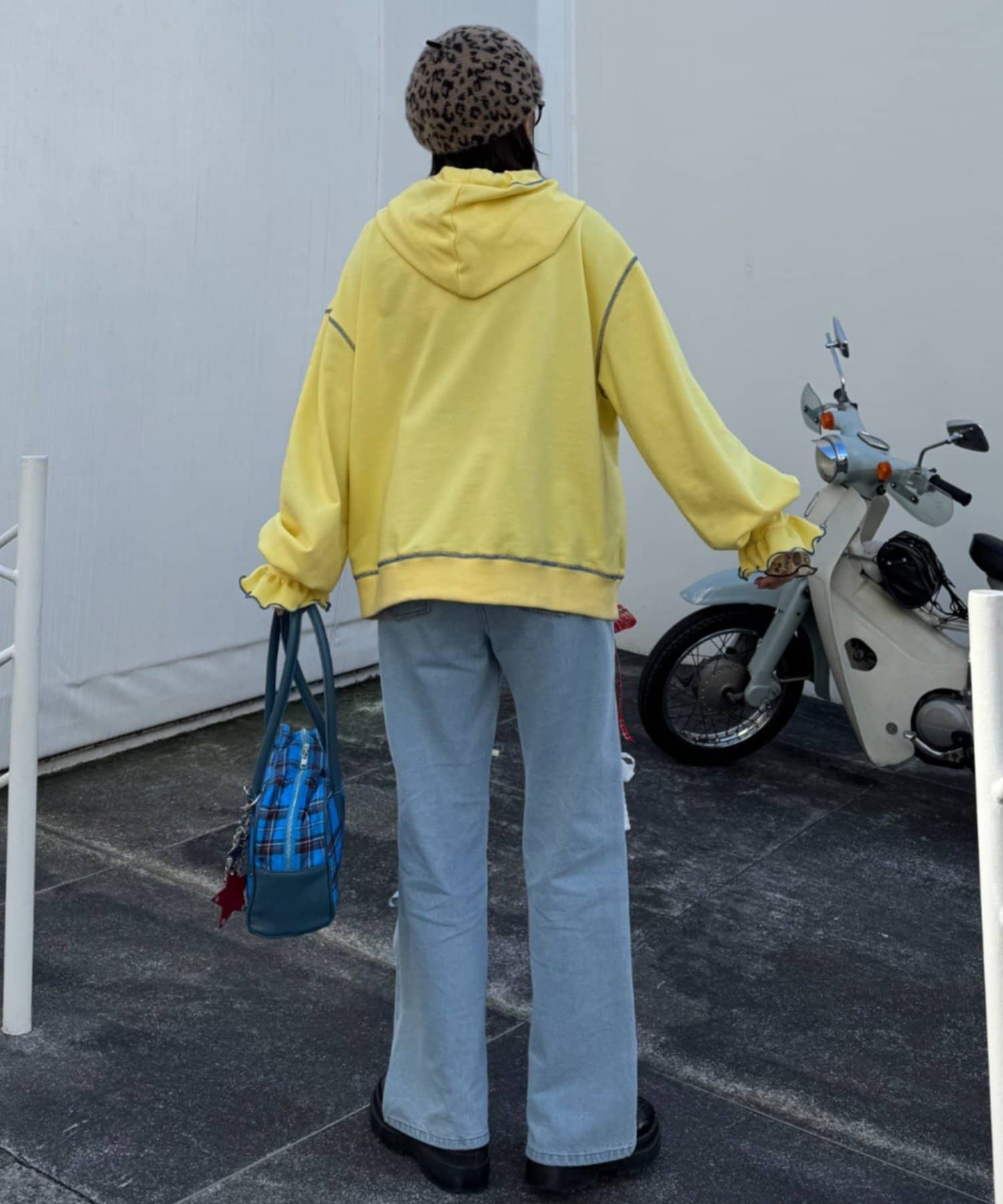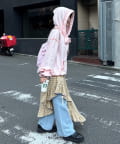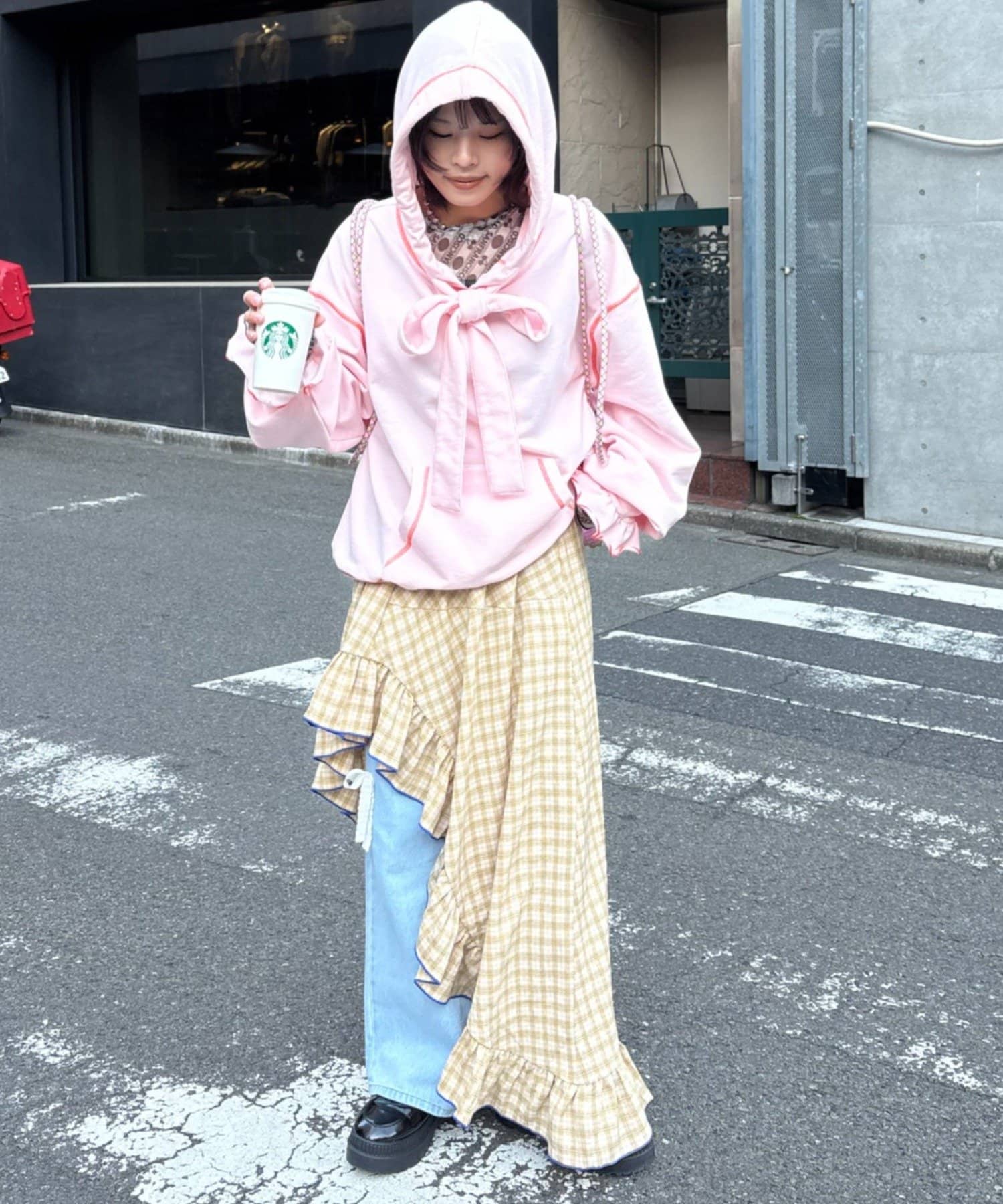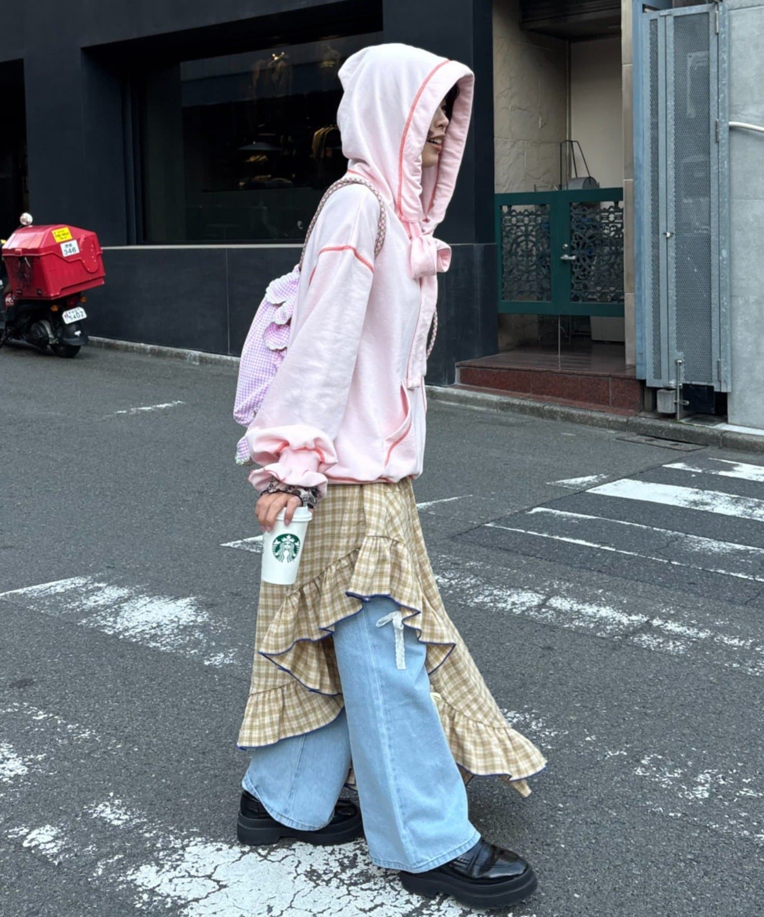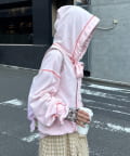 フード付きで、カジュアルながらもガーリーな印象を与えます。