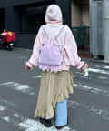 袖口にはフリルがあしらわれており、さりげない可愛らしさをプラス。
